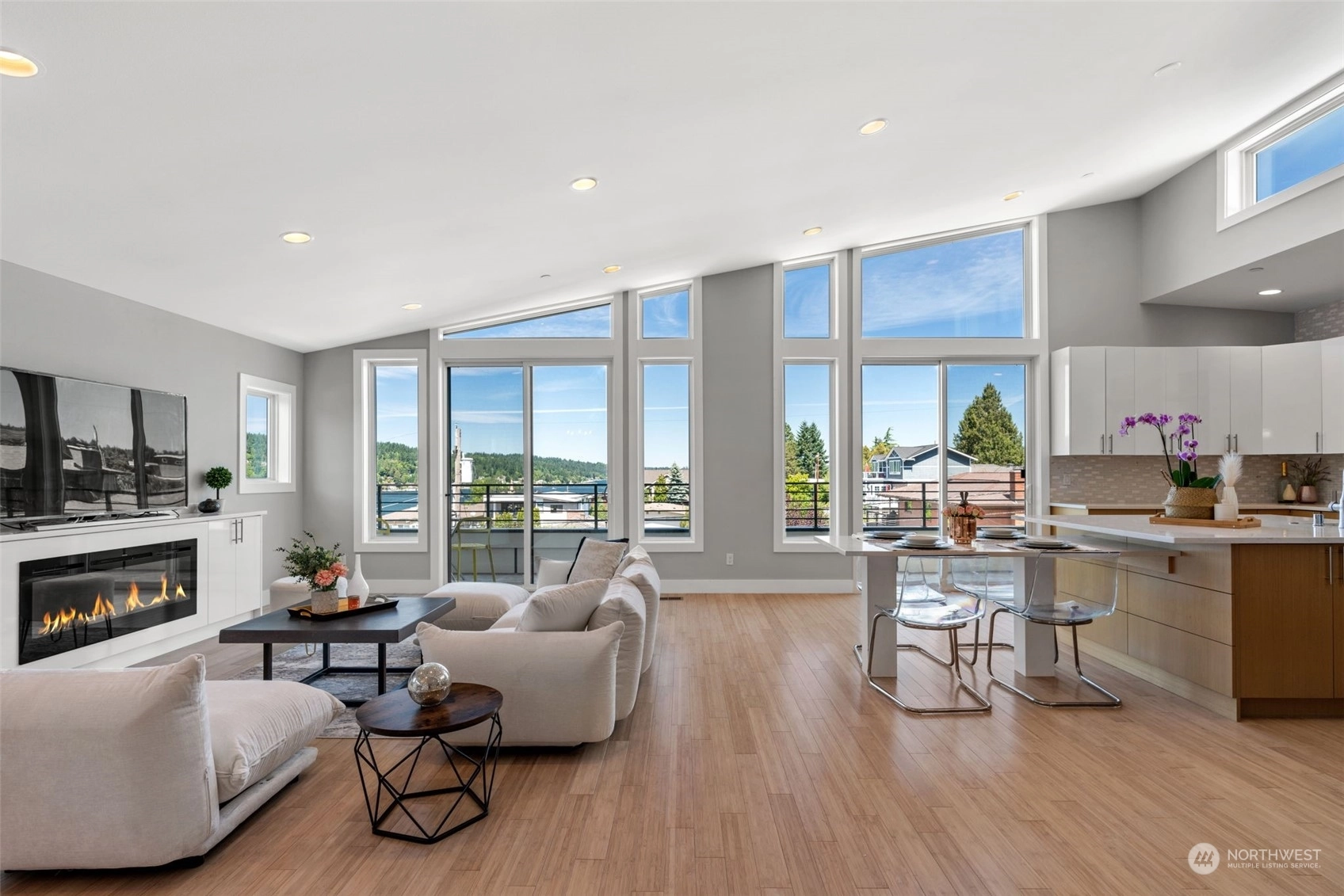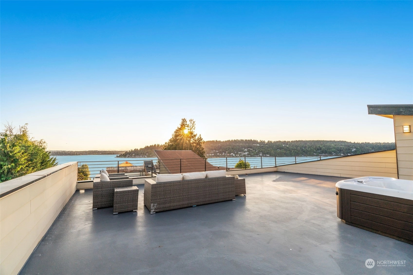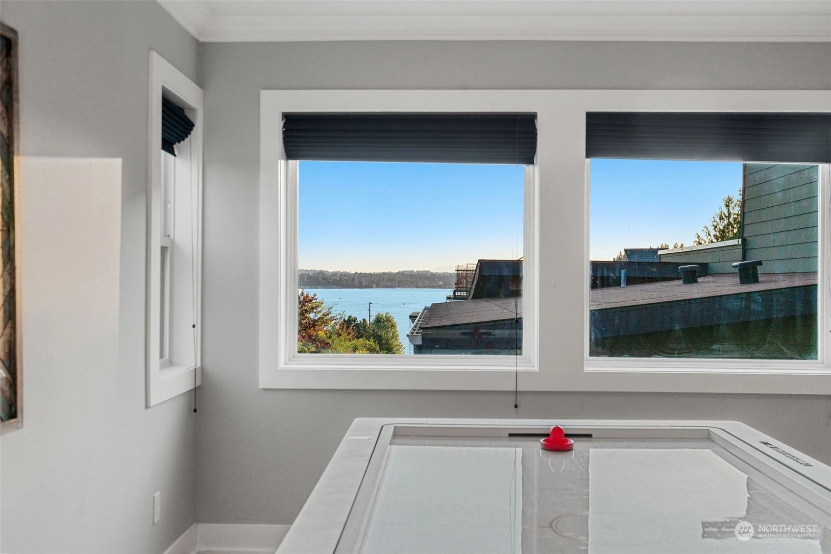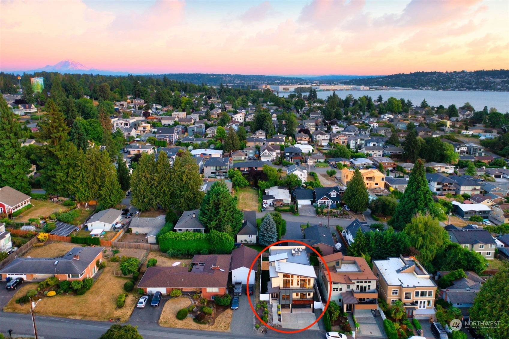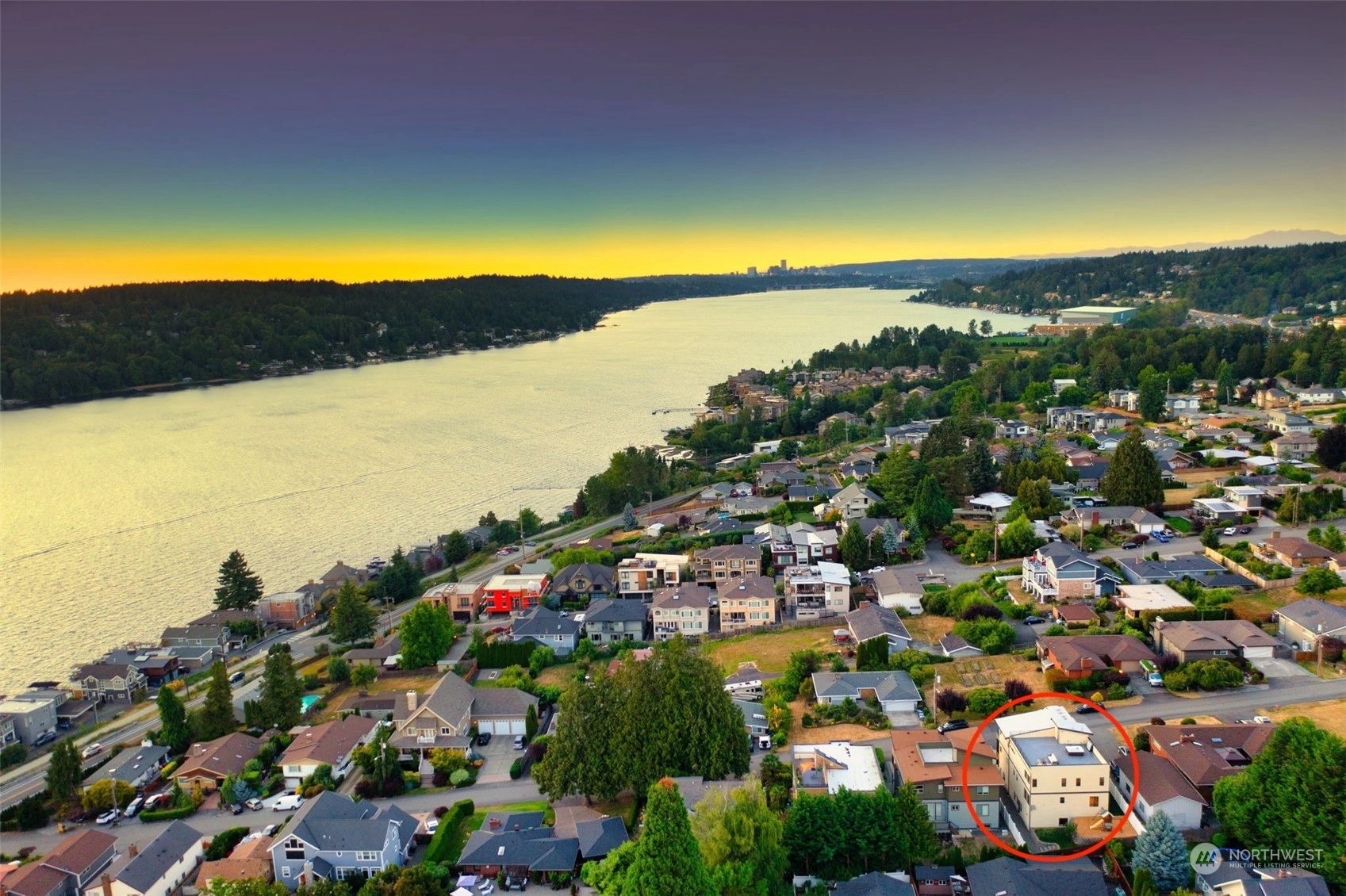 Nestled in the highly sought-after neighborhood of Lower Kennydale, this property offers an expansive panoramic view of Lake Washington and downtown Bellevue from the living area, master bedroom, kitchen, playroom, and the spacious 1120 sqft rooftop deck. With high ceilings, abundance natural light and AC, this house offers comfort at its finest. An additional 1 bed 1 bath unit with a separate entrance creates an opportunity for lucrative extra income. Embrace joyous moments in the yard's delightful playground, and revel in the allure of a meticulously maintained home. Welcome to a realm of luxury and bliss. Quick access to 405, yet won't hear any freeway noise. 1 minute walk to Kennydale beach park.