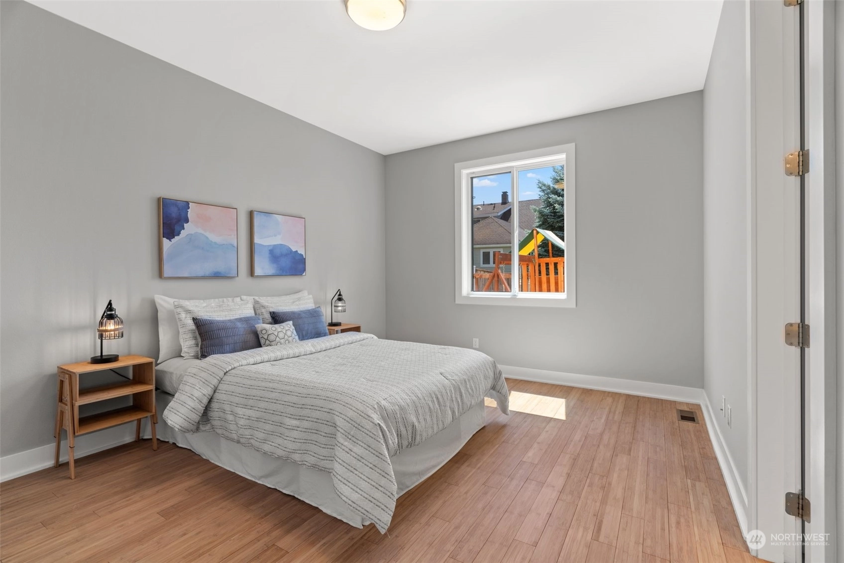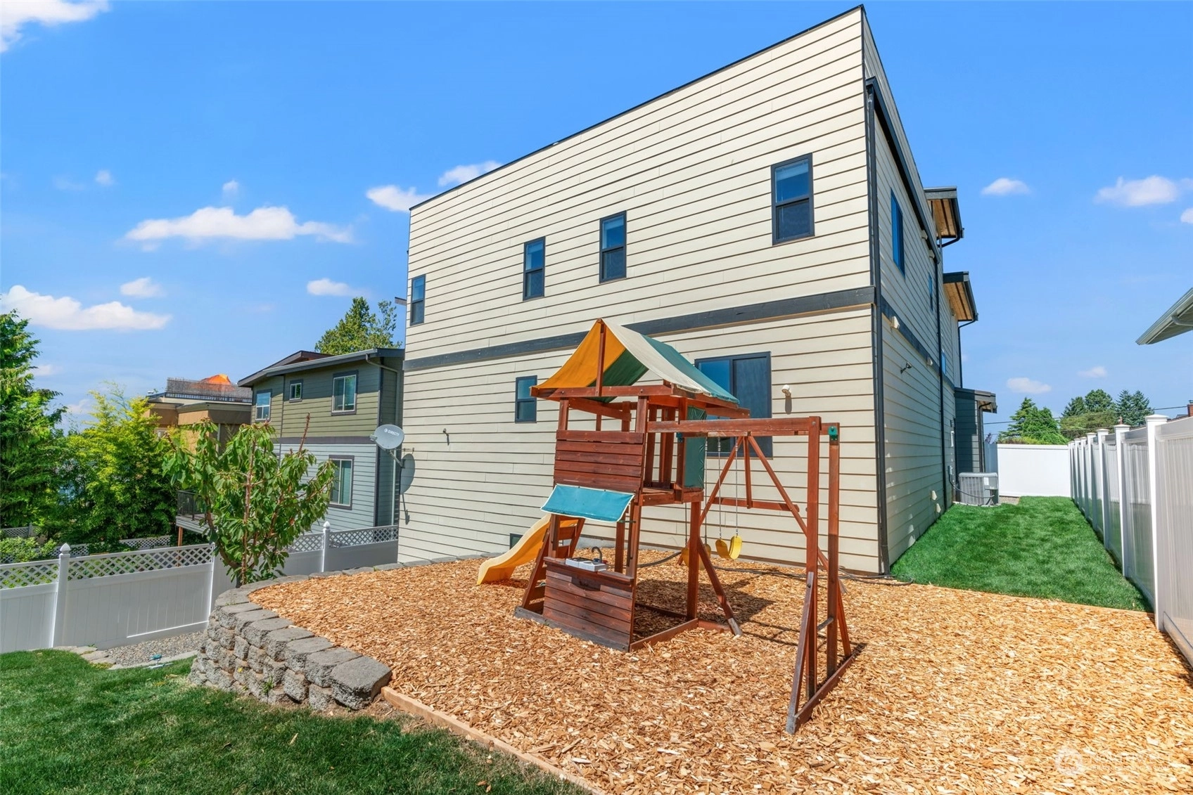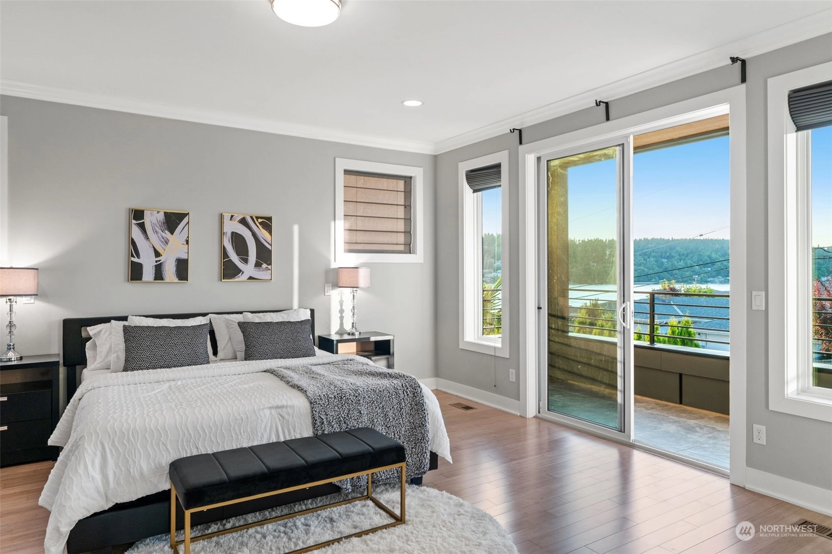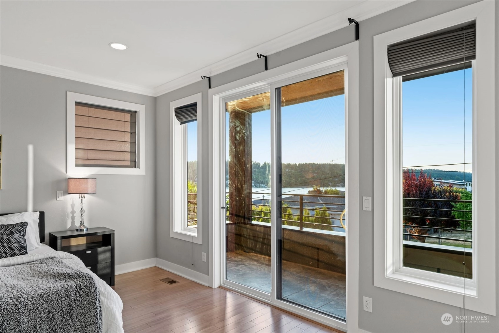 Nestled in the highly sought-after neighborhood of Lower Kennydale, this property offers an expansive panoramic view of Lake Washington and downtown Bellevue from the living area, master bedroom, kitchen, playroom, and the spacious 1120 sqft rooftop deck. With high ceilings, abundance natural light and AC, this house offers comfort at its finest. An additional 1 bed 1 bath unit with a separate entrance creates an opportunity for lucrative extra income. Embrace joyous moments in the yard's delightful playground, and revel in the allure of a meticulously maintained home. Welcome to a realm of luxury and bliss. Quick access to 405, yet won't hear any freeway noise. 1 minute walk to Kennydale beach park.