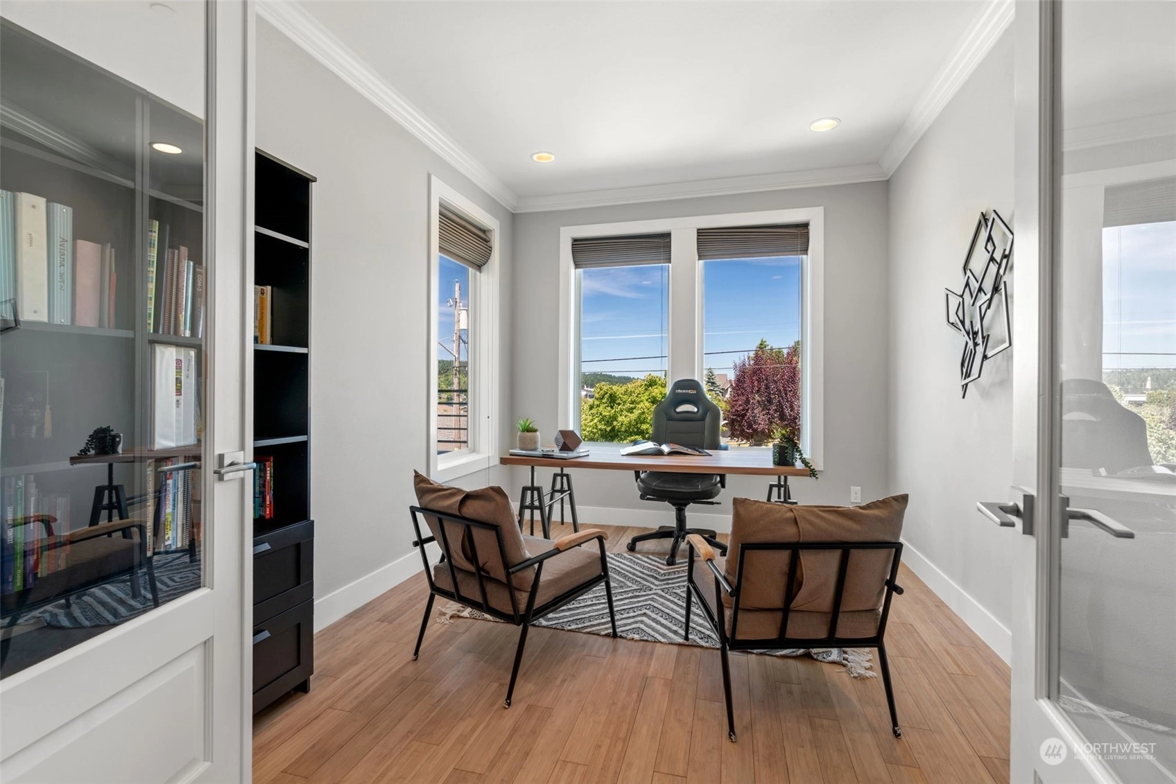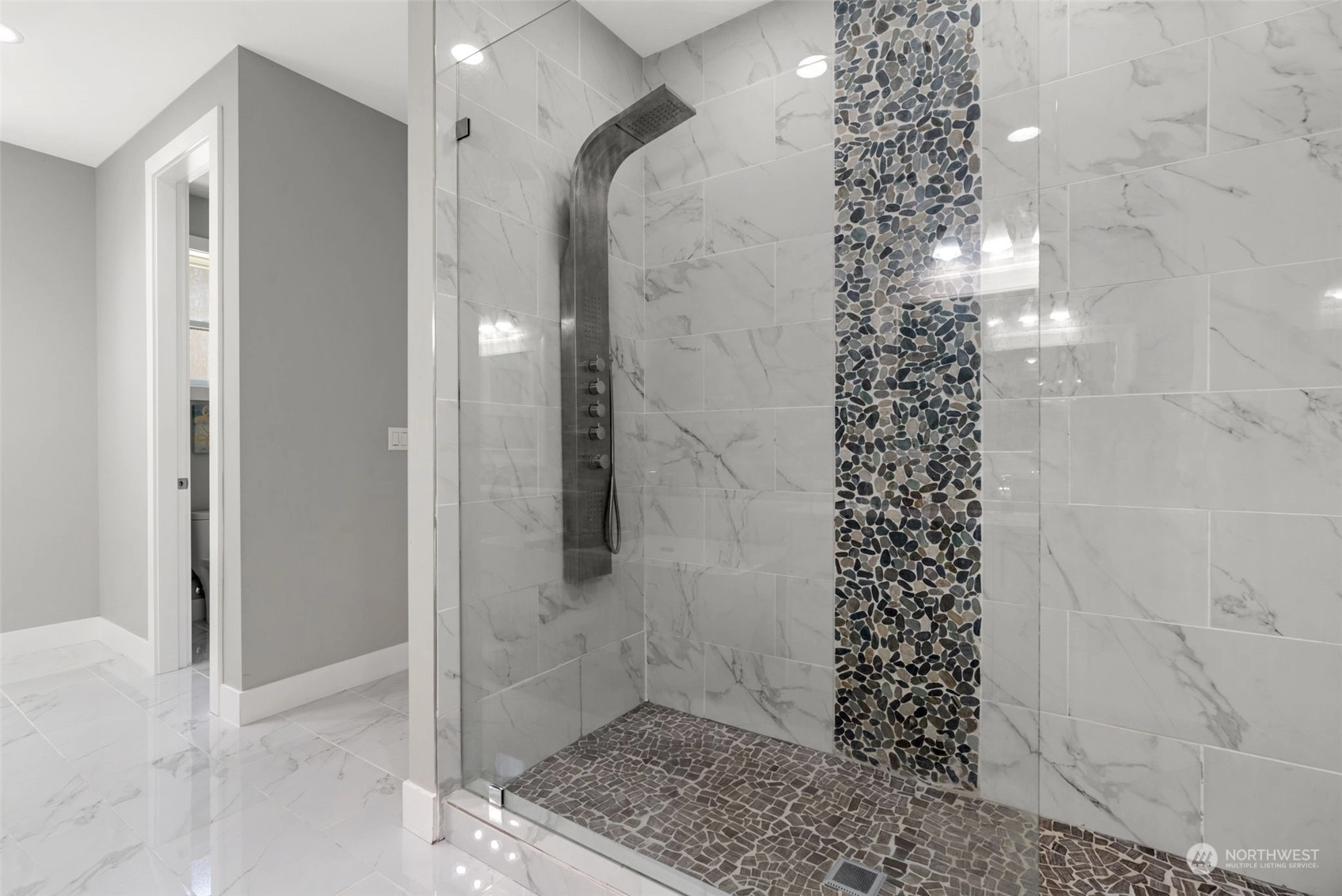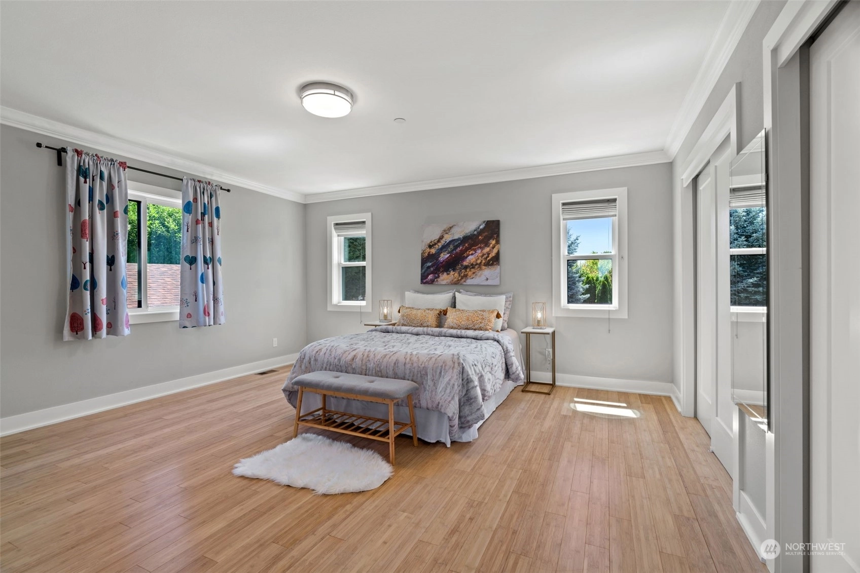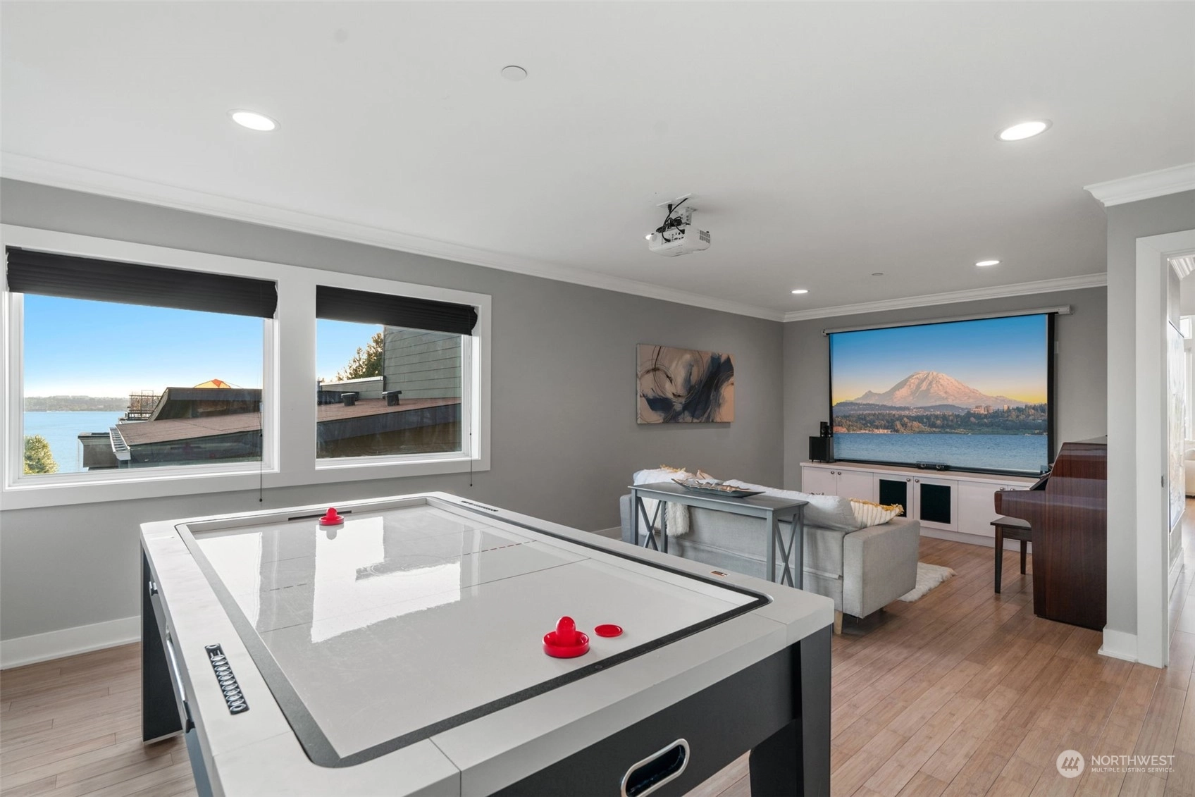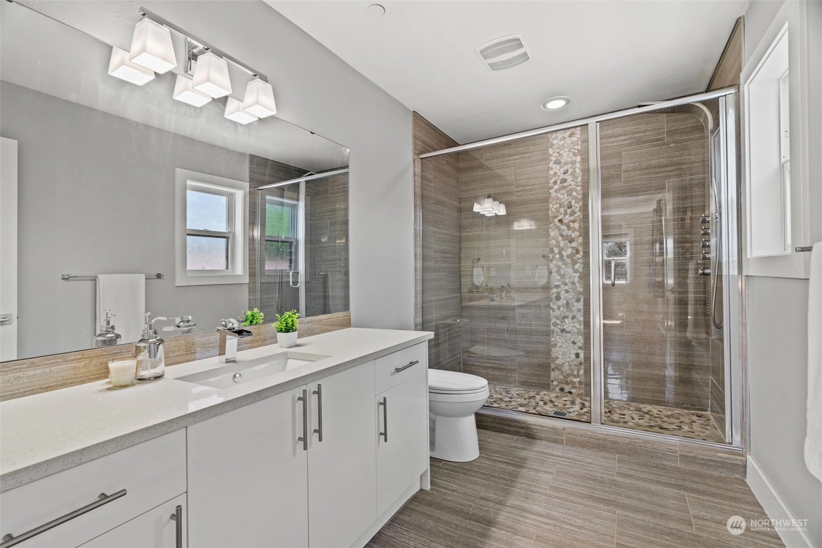 Nestled in the highly sought-after neighborhood of Lower Kennydale, this property offers an expansive panoramic view of Lake Washington and downtown Bellevue from the living area, master bedroom, kitchen, playroom, and the spacious 1120 sqft rooftop deck. With high ceilings, abundance natural light and AC, this house offers comfort at its finest. An additional 1 bed 1 bath unit with a separate entrance creates an opportunity for lucrative extra income. Embrace joyous moments in the yard's delightful playground, and revel in the allure of a meticulously maintained home. Welcome to a realm of luxury and bliss. Quick access to 405, yet won't hear any freeway noise. 1 minute walk to Kennydale beach park.
