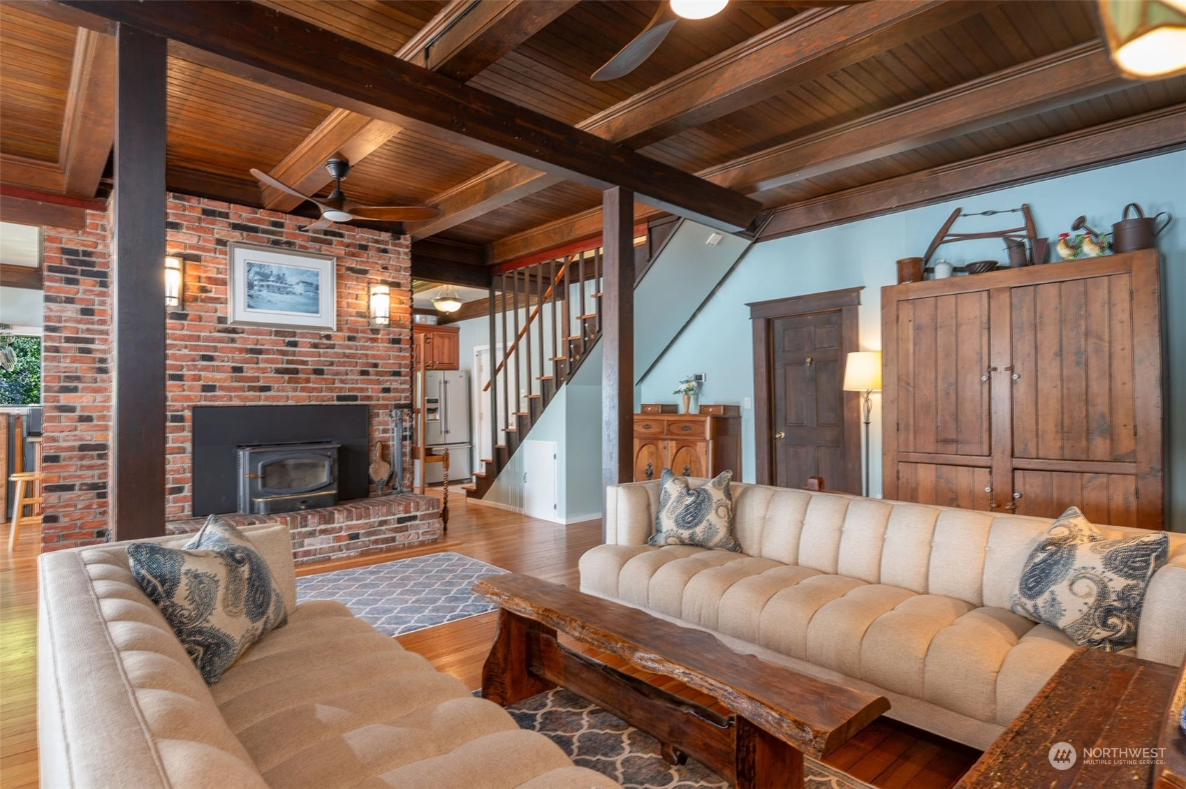 Outer Quartermaster waterfront haven! This 1907 home has been lovingly renovated throughout w/ 4 bedrooms & 2 bathrooms. The open main level has high box beam ceilings, fir floors & a cozy hearth w/ insert in living room & is open to generously sized kitchen w/ new appliances. Through the waterfront doors, enjoy never-ending harbor views from covered porch or private view balcony. Easy beach access via bulkhead & stairs to the waters edge. Enjoy boating, paddleboarding, kayaking, fishing, crabbing, and by night, the Tacoma city lights. New HVAC, roof & paint inside & out. The newly rebuilt 2-car garage has a loft; perfect for office/shop. Basement has been renovated into a working art studio. Courtyard garden, RV space. Vashon Paradise!