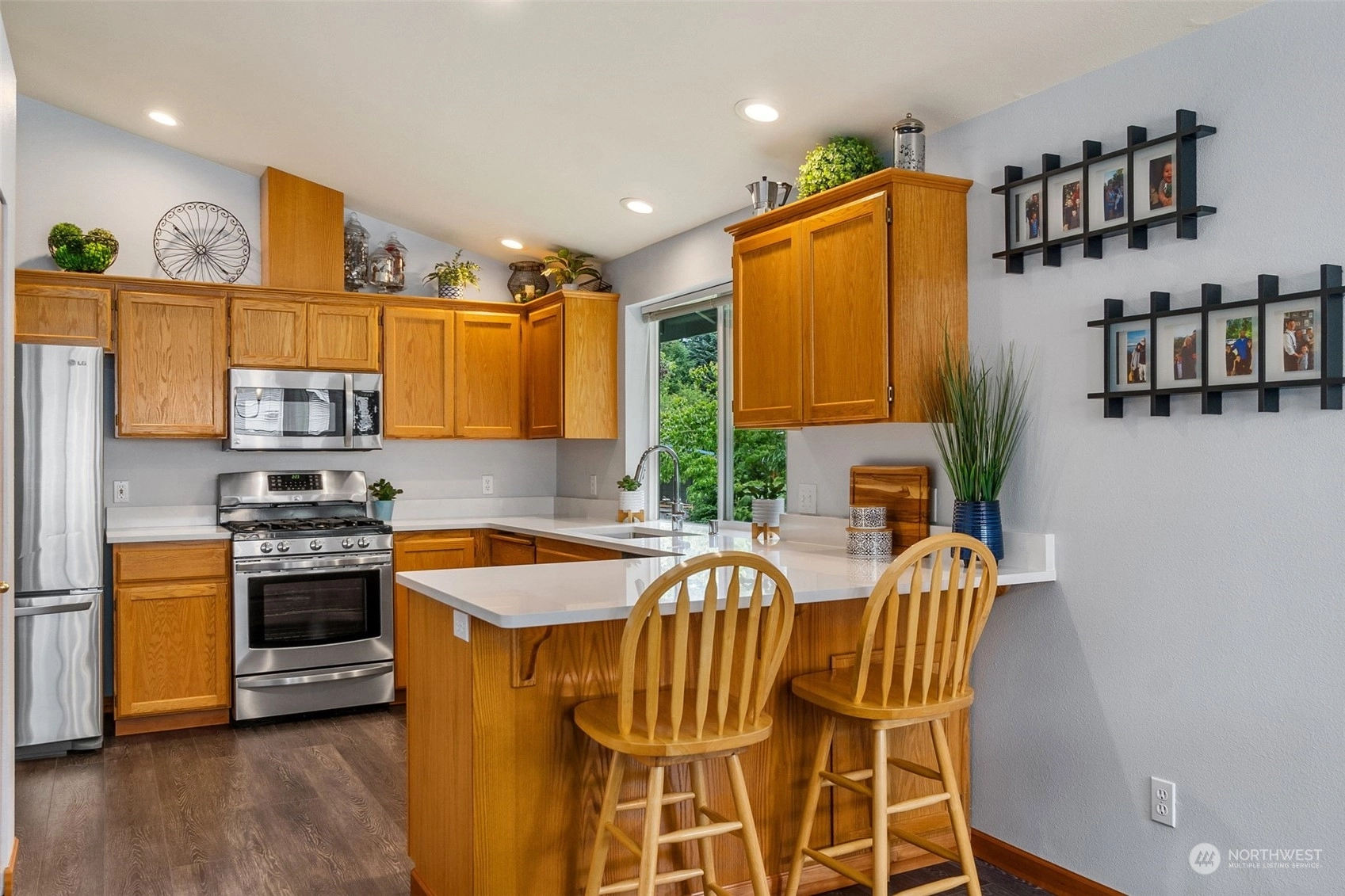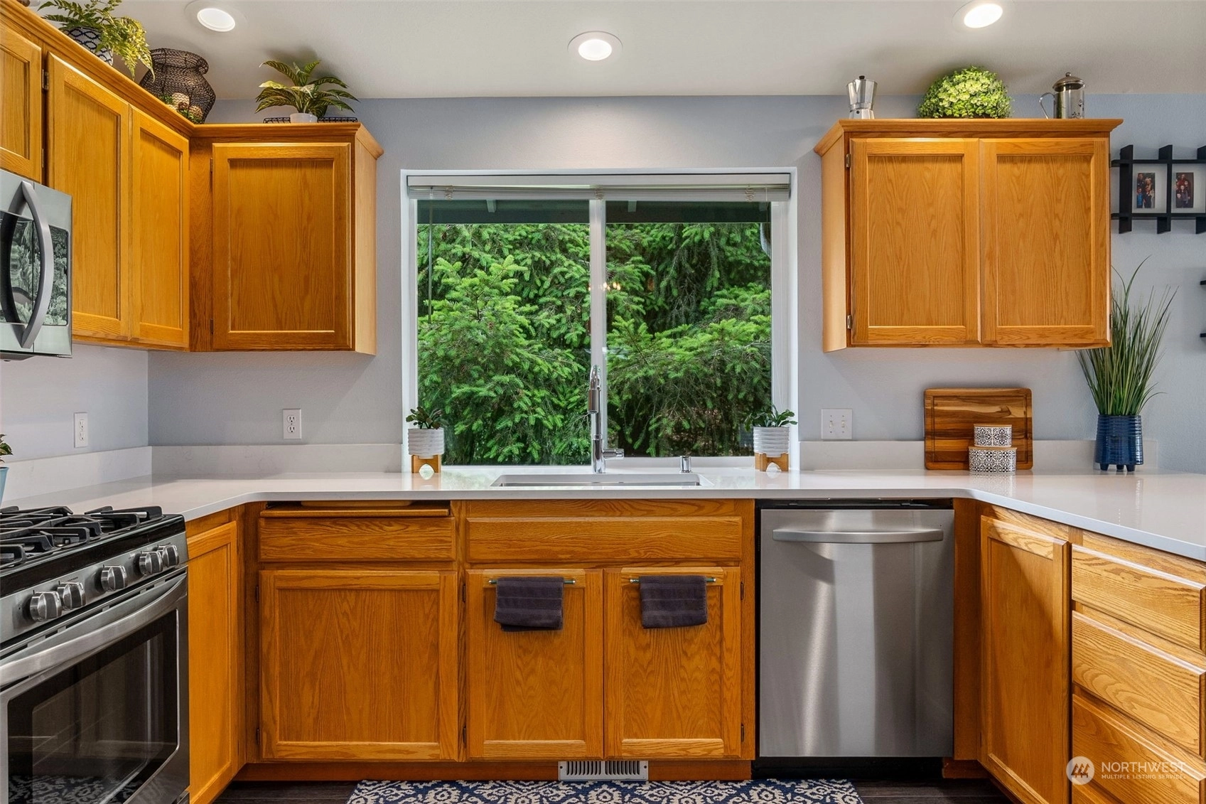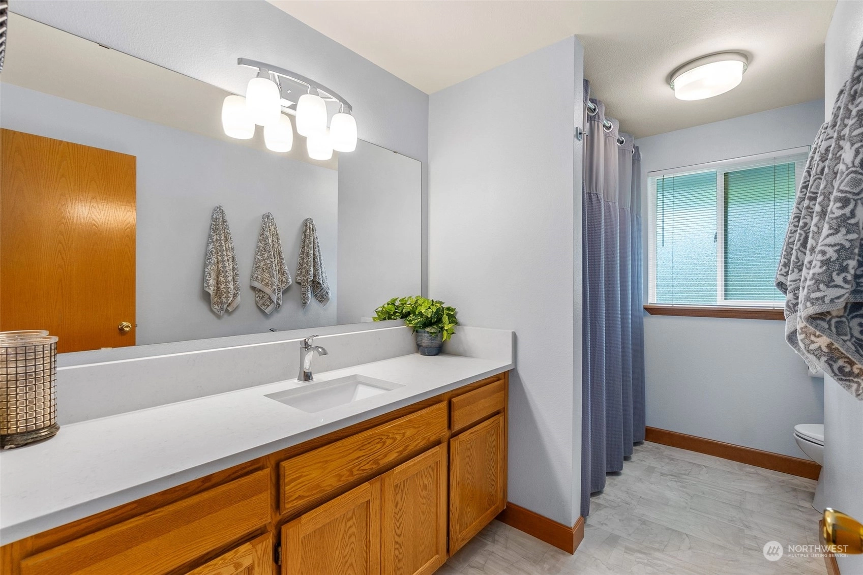 This peaceful 1,670 sq/ft, 3 BD, 2 BA, one-story home is centrally located only a few, short minutes to freeways, West Olympia & Tumwater! The care for this home is incomparable and includes sophisticated updates throughout, including newer roof, interior and exterior paint, luxury vinyl plank flooring, quartz countertops, stainless steel appliances, fireplace with Italian marble surround, updated lighting and much more! The stately primary suite boasts dual closets and a private bathroom possessing dual sinks with quartz countertops and a cultured marble surround in the shower! Take in the tranquil back yard on the exquisite covered deck! This home is a must see!