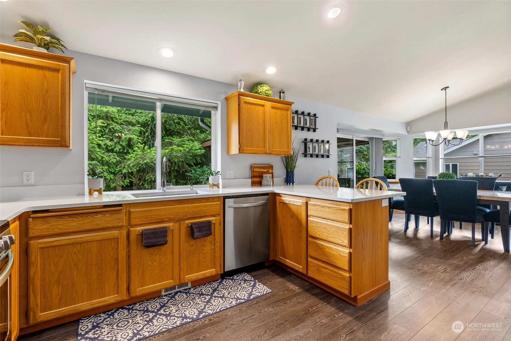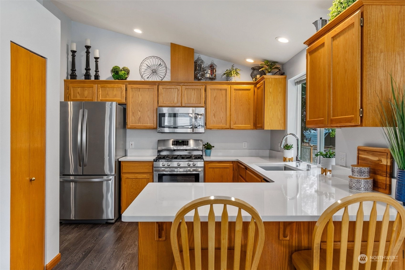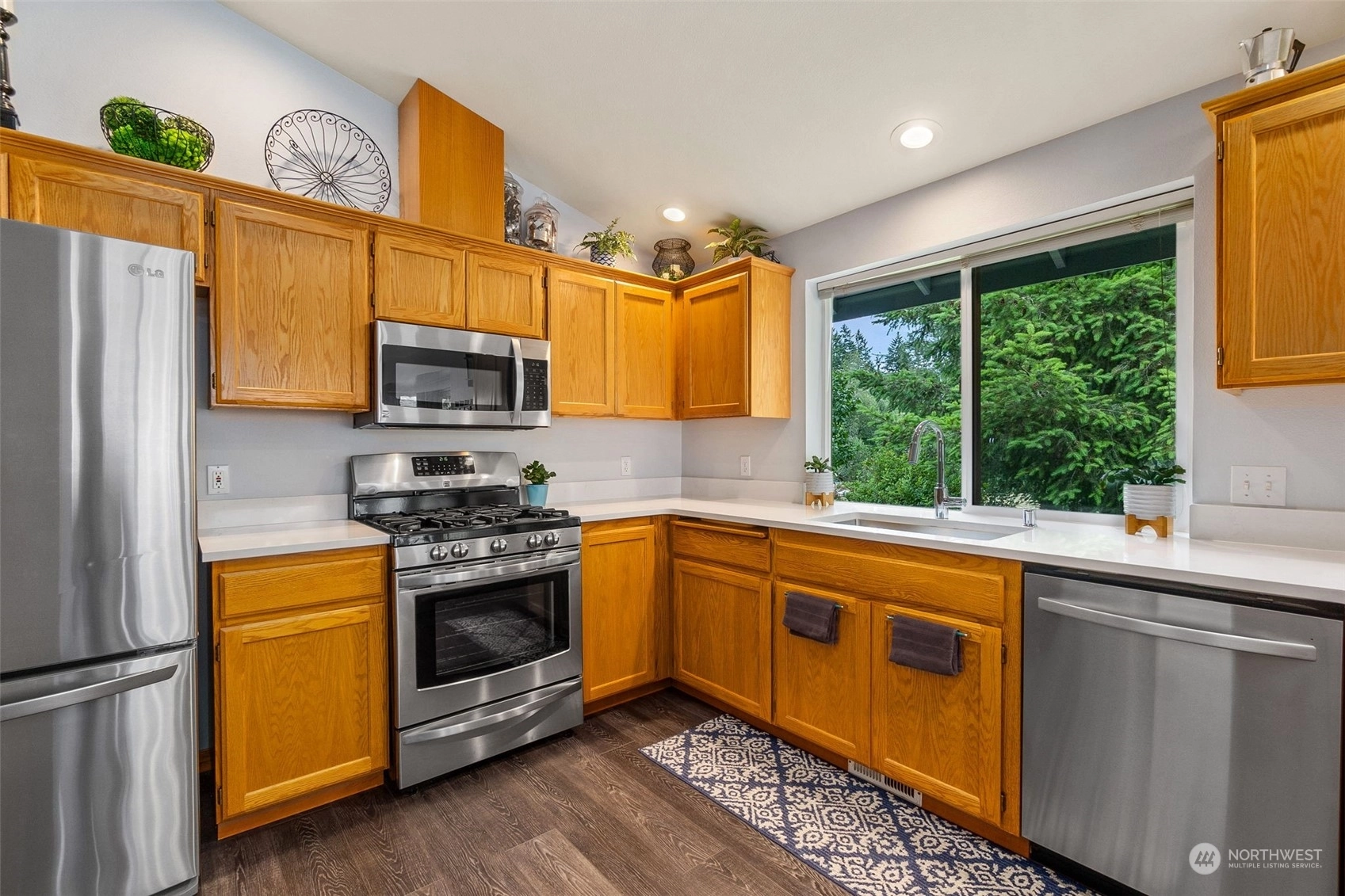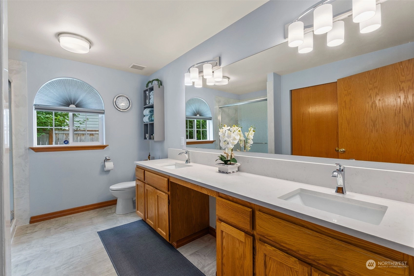 This peaceful 1,670 sq/ft, 3 BD, 2 BA, one-story home is centrally located only a few, short minutes to freeways, West Olympia & Tumwater! The care for this home is incomparable and includes sophisticated updates throughout, including newer roof, interior and exterior paint, luxury vinyl plank flooring, quartz countertops, stainless steel appliances, fireplace with Italian marble surround, updated lighting and much more! The stately primary suite boasts dual closets and a private bathroom possessing dual sinks with quartz countertops and a cultured marble surround in the shower! Take in the tranquil back yard on the exquisite covered deck! This home is a must see!