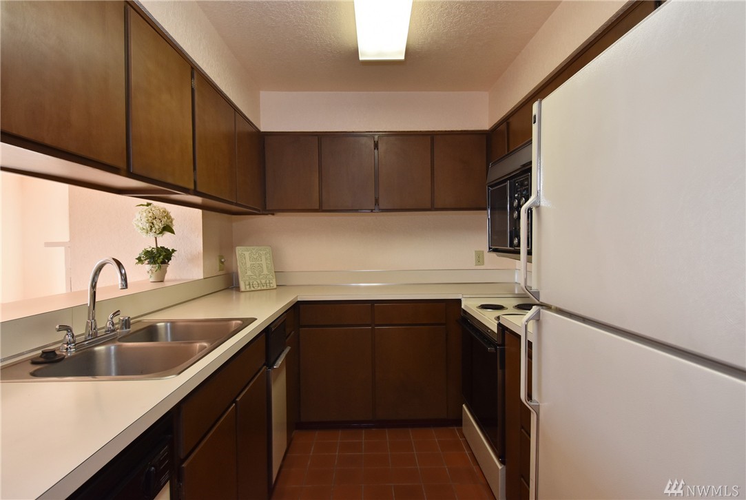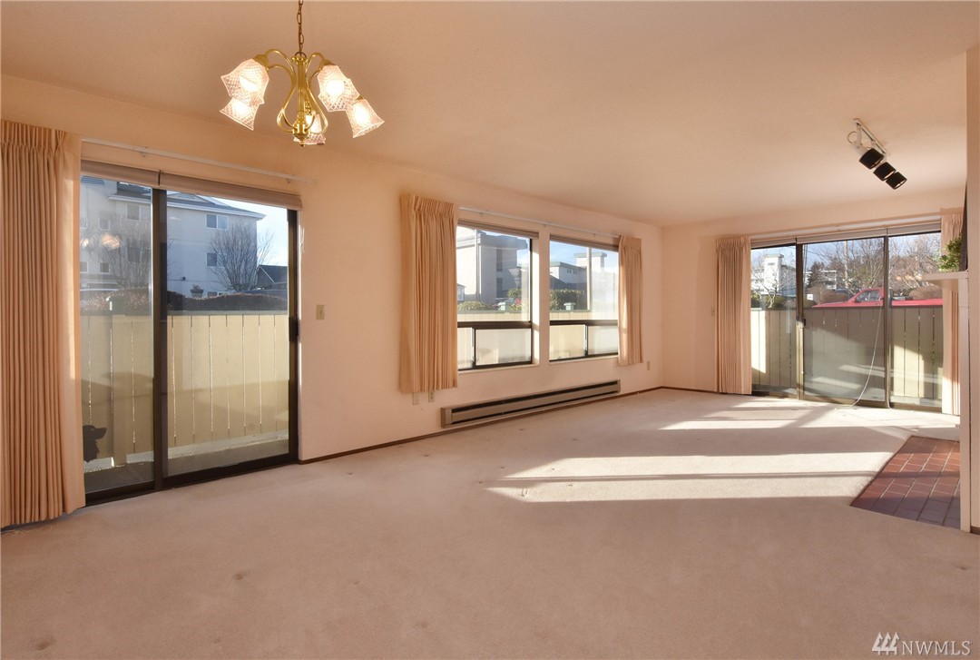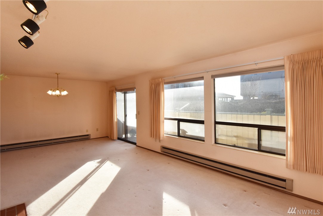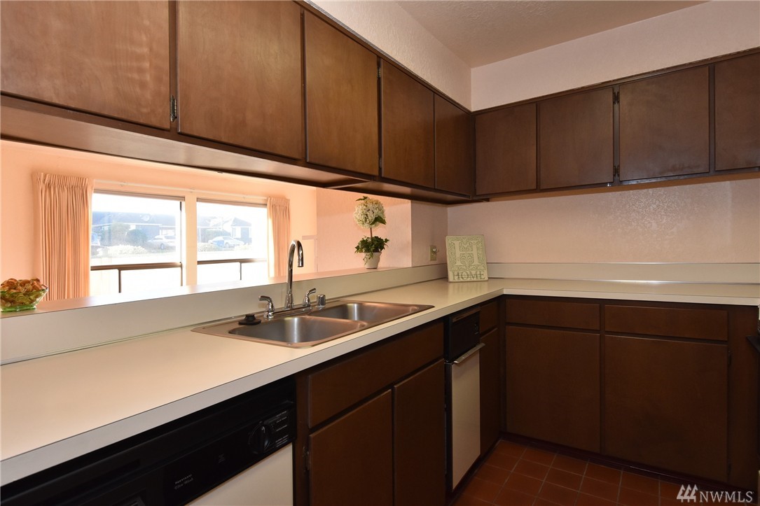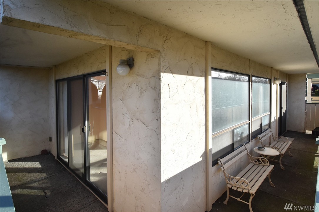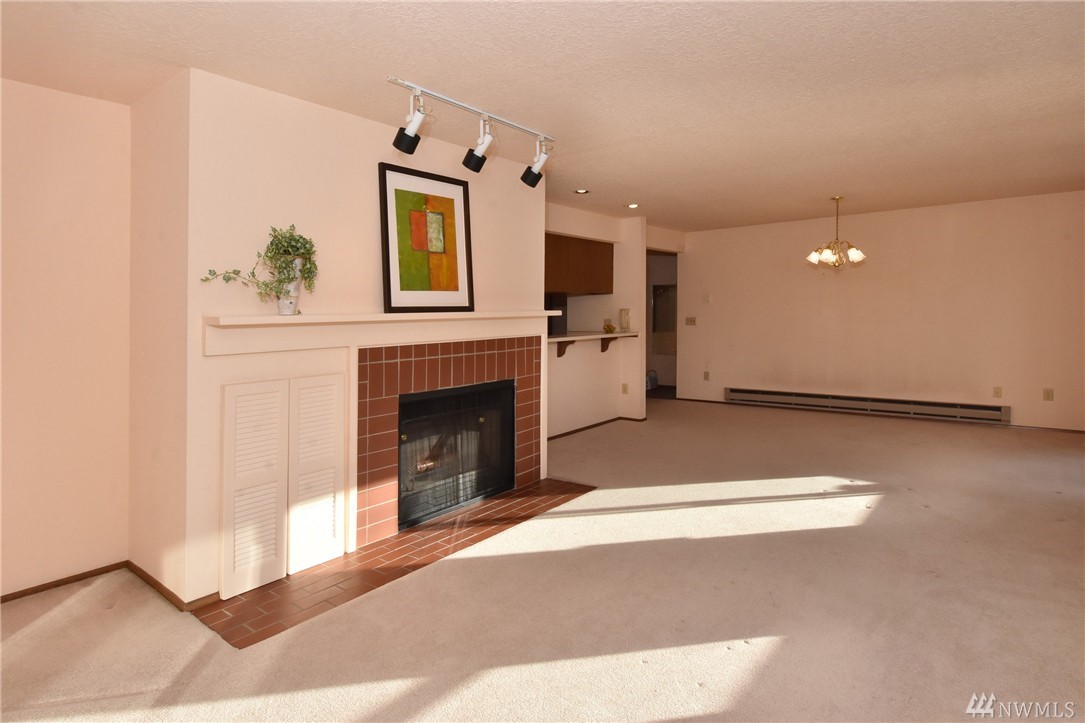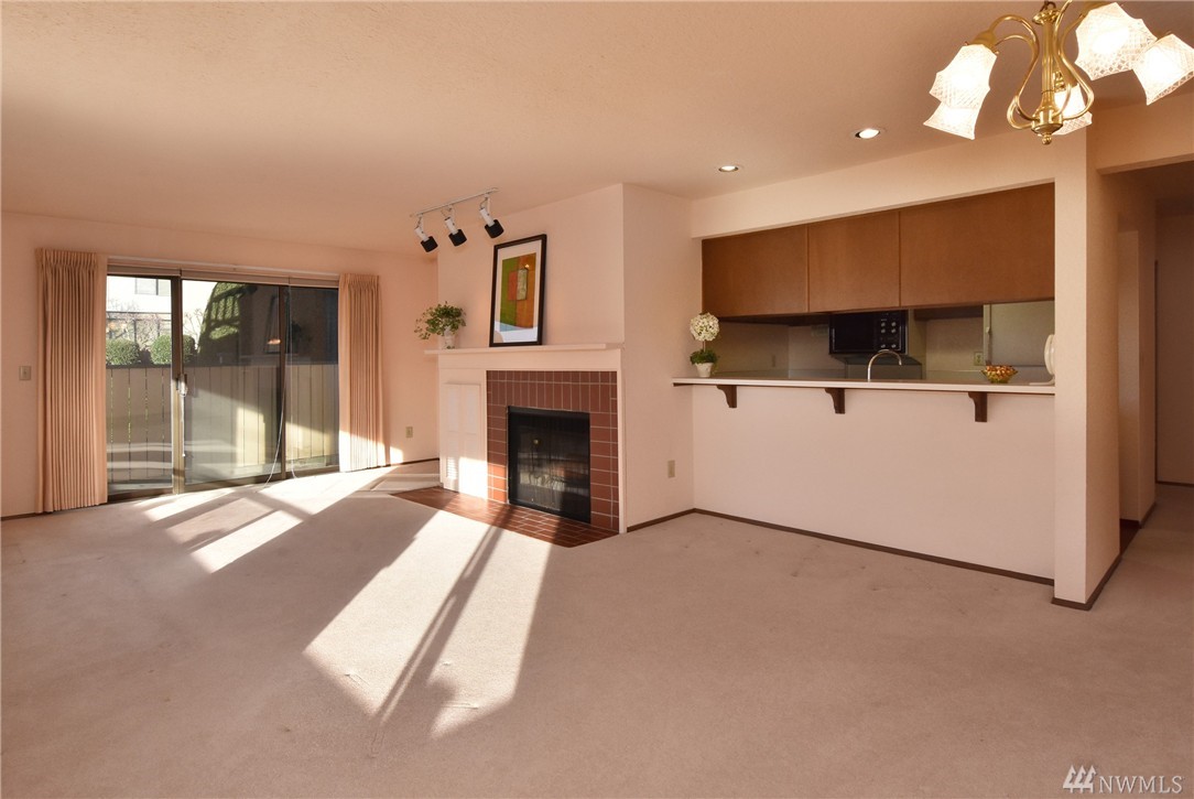 Charming and conveniently located two bedroom condo in the heart of Des Moines, just steps to the marina, shops and restaurants! Large master with walk-in closet and full bath, nice sized second bedroom, and a three-quarter bath. Dining room with sliding door out to the west facing patio, a large living room with wood burning fireplace. This ground level unit offers easy access from the gated parking lot, with one covered and one uncovered space, and a storage closet. An affordable beach condo!