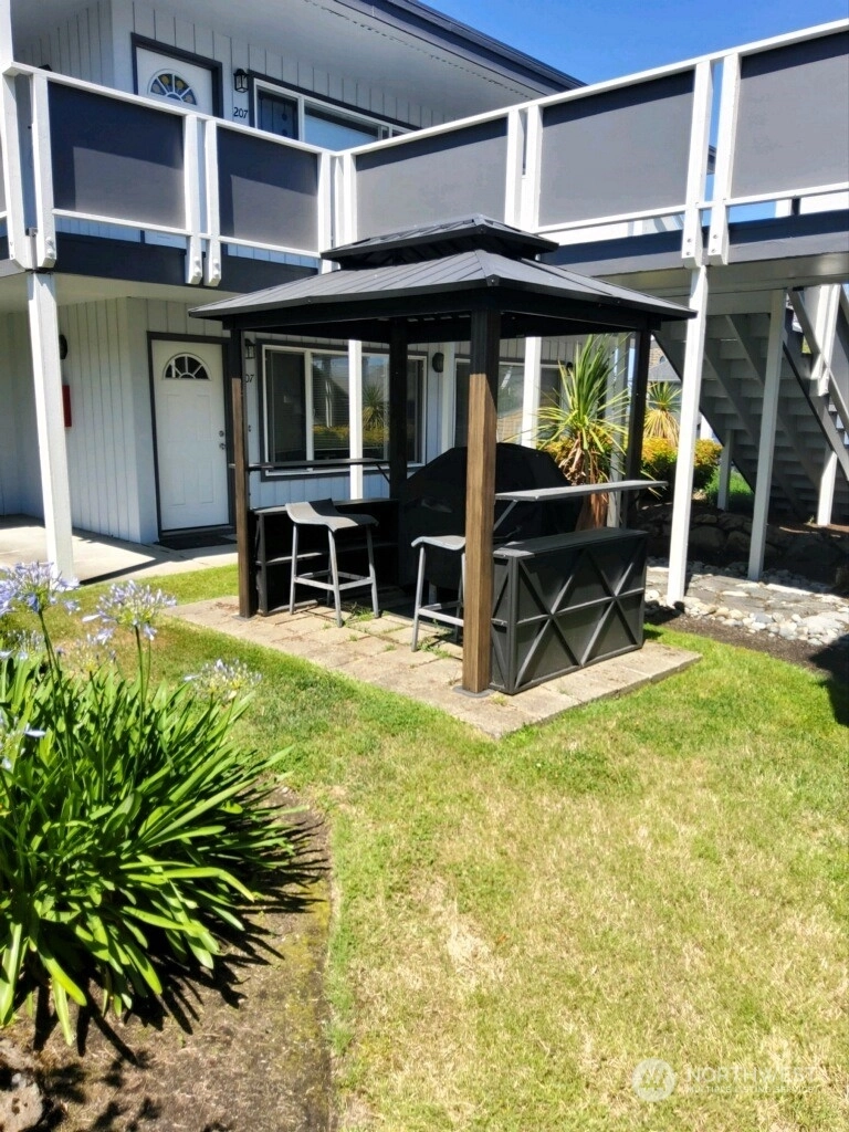 NORTH END TACOMA CONDO! This pristine ground floor end unit offers an open concept living space with beautiful hardwood floors, complemented by elegant white millwork. The kitchen is a breath of fresh air, boasting cherry cabinets, granite countertops, a stylish tile backsplash, and stainless-steel range and microwave. The bedrooms are spacious, including a master bedroom with two closets. Ample storage is available with a laundry closet and an additional linen closet in the hallway. Residents can enjoy the convenience of a courtyard gas BBQ. The area exudes vibrancy with numerous pubs, restaurants, and entertainment options. Furthermore, the Ruston waterfront adds to the charm and allure of this fantastic location!