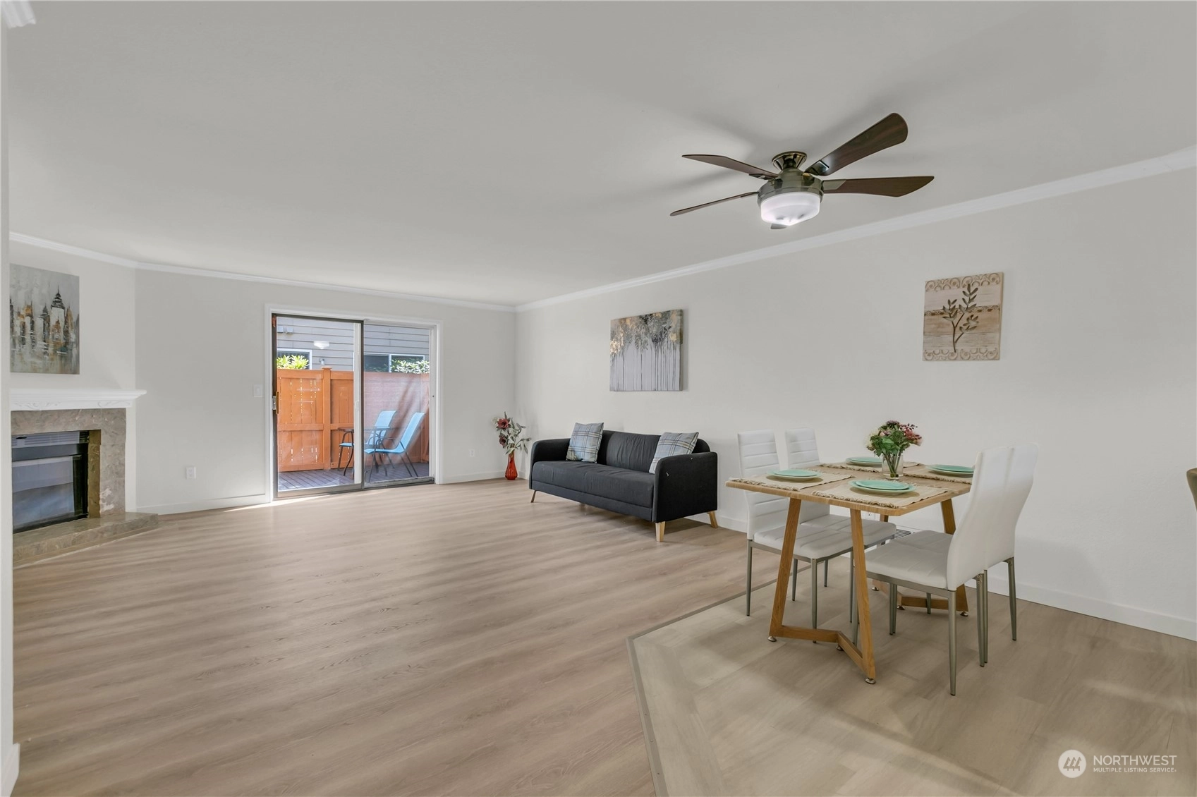 Beautiful Edmonds 2 story townhome style home with 2 primary suites is ready for you to move in. This home has new doors and new paint, new flooring throughout. The 2 primary suites on the second floor, both with full bath and plenty of closet space. Enjoy the wood-burning fireplace in the cold winter nights in the living room or have a cup a tea in your private fully fenced yard in sunny days. No rental cap! 2 cats or dogs are allowed. One car attached garage plus an assigned parking space with lot of guest parking. Easy access to 99, I-5, local amenities, bus to Alderwood Mall and future Light Rail Station.
