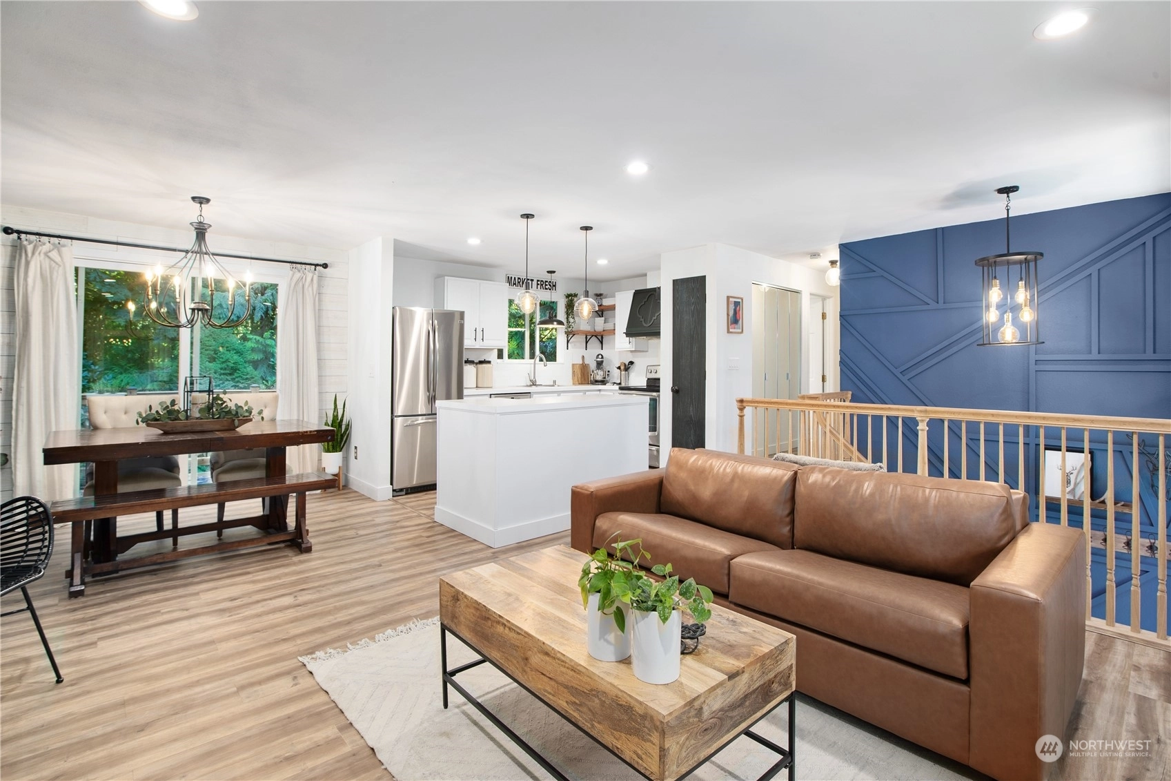 Life is better at the lake! Enjoy the private beaches & amenities in coveted Lake Marcel. Updated 3 bed, 2 bath home on large 1/3 acre lot. Open kitchen/living/dining upstairs w/slider to peaceful back deck. Designer touches throughout, including feature walls, newer luxury vinyl plank floors & upgraded lighting & pendants throughout. Master bed w/lots of storage + 2 additional bedrooms upstairs. Downstairs offers large bonus room w/slider out to paver patio. Laundry room on lower level w/washer & dryer included. Newer heat pump with A/C for hot summer days! New composition roof in 2020! Walk to Beach 1 for swimming, fishing & playground. Mins to downtown Duvall & easy commute to Redmond/Eastside.