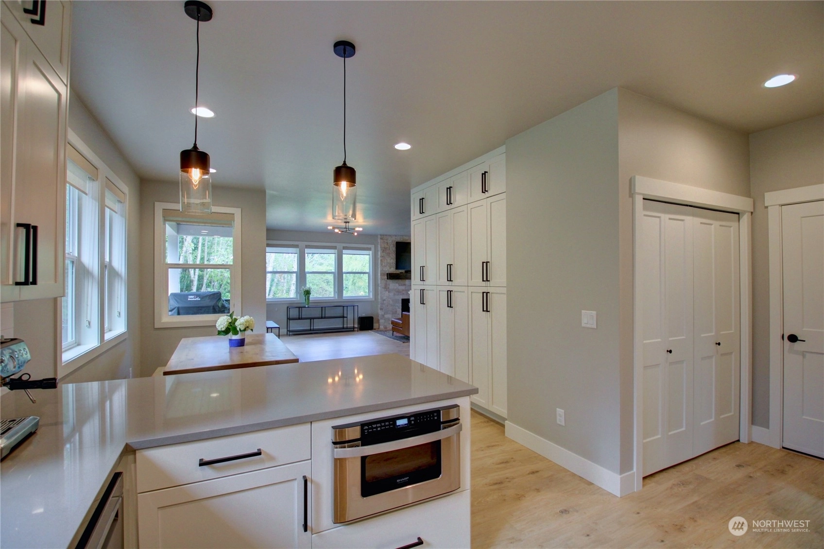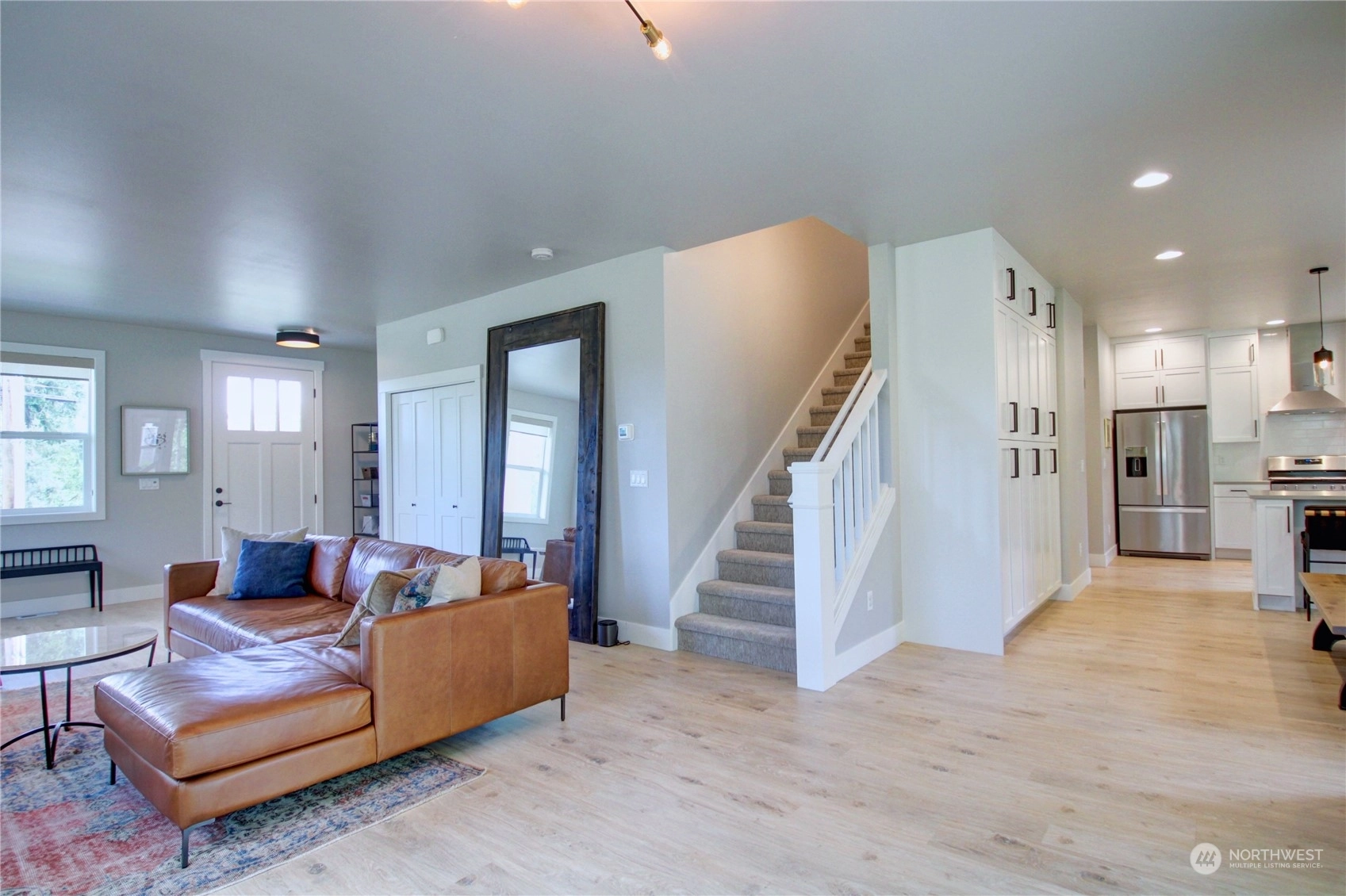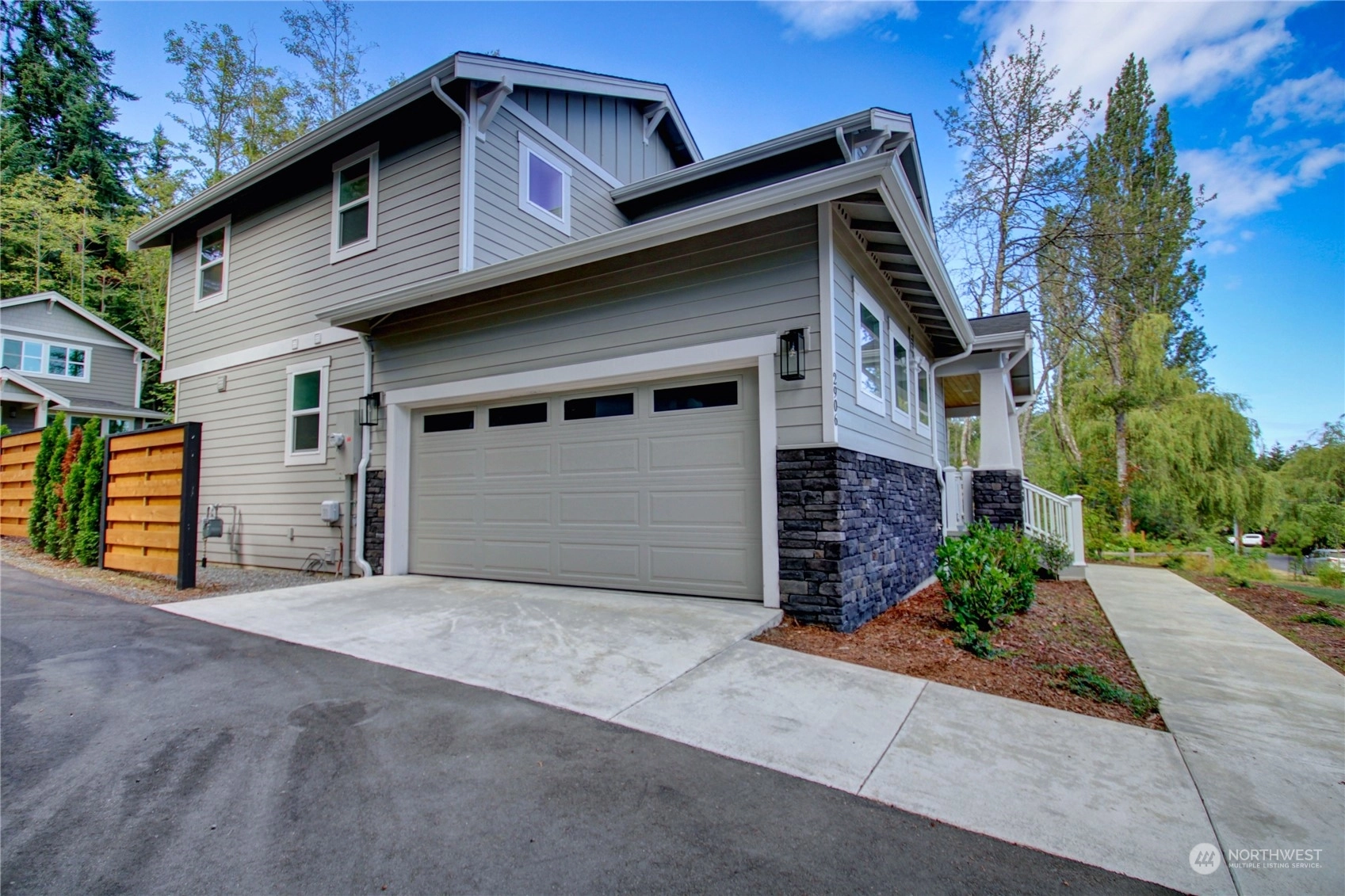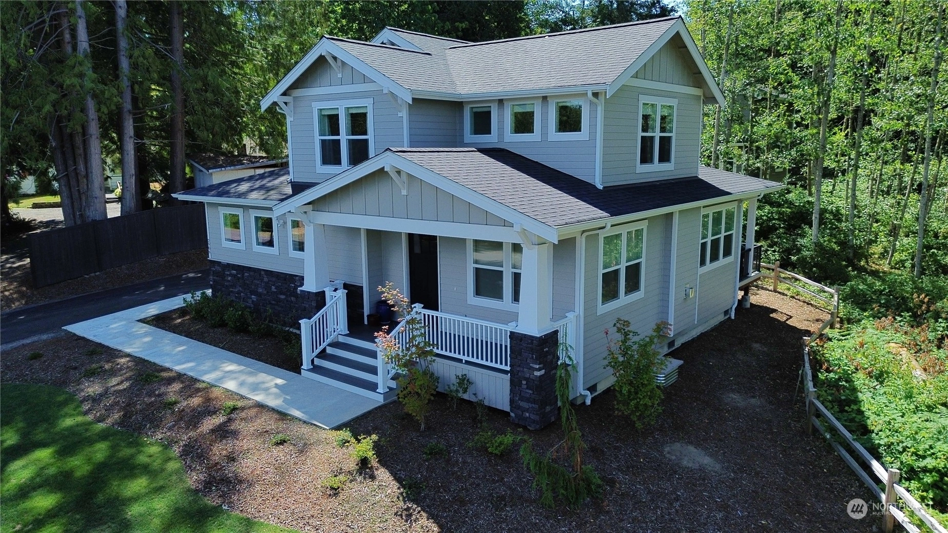 Presenting an exquisite PNW contemporary home, meticulously designed with impeccable finishes. This newer residence showcases thoughtful craftsmanship & an unparalleled living experience. The main level welcomes you with an open-concept kitchen, boasting quartz countertops, flowing into a captivating great room with a cozy gas fireplace & an inviting dining area. On the upper level, discover a spacious primary bedroom with a luxurious en-suite, alongside 2 additional large bedrooms & a full bathroom. Nestled in a serene setting, this home offers tranquility while remaining conveniently close to all amenities-just a short walk to Fairhaven, the interurban trail, and Lake Padden. Upgrades include, closet systems, Generator & window coverings.