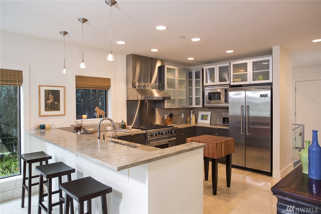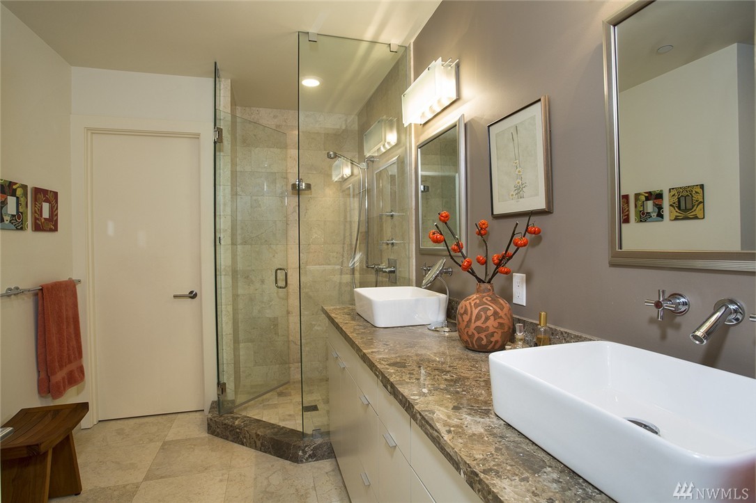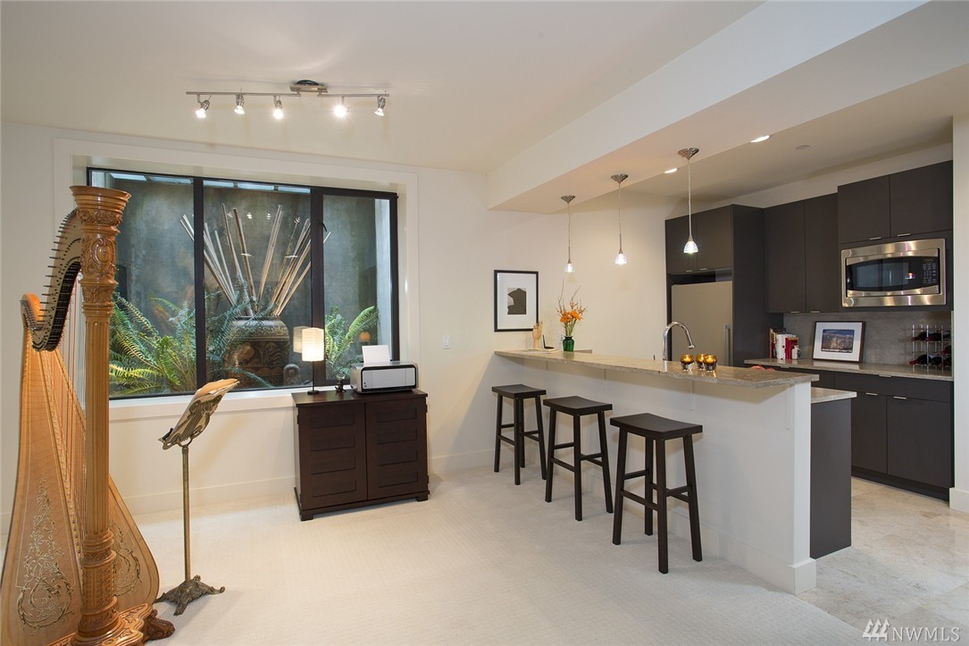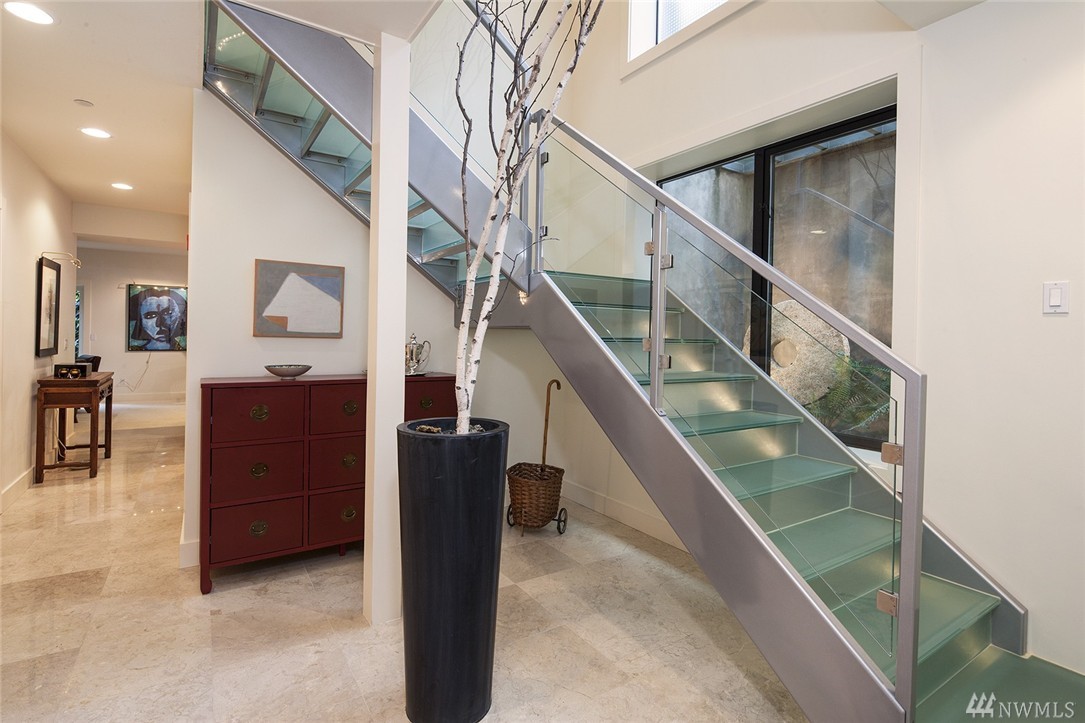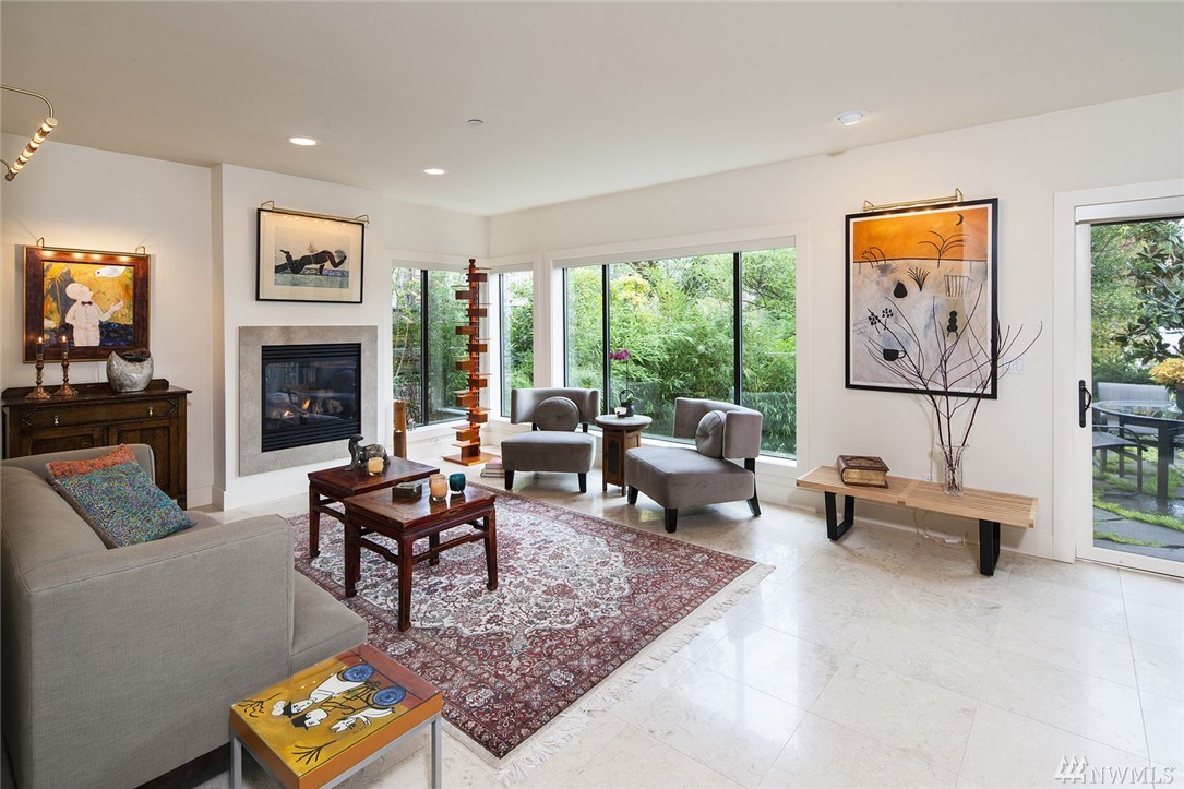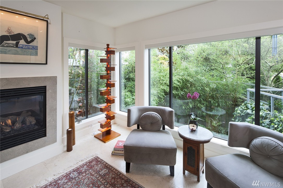 Stunning 2-level, 2,063-sq-ft condo in luxury 3-unit 2008 building. Dramatic glass staircase and magical 2-story grotto provide unique character. Main living area with marble floors, fireplace and access to stone terrace; adjoining kitchen with stainless steel Viking appliances; 2 bedrooms; 2.25 baths. Lower level family room with fireplace, kitchenette and access to grotto sitting area. Abundant storage; full AC; 2 parking spaces. Ideal for carefree turn-key living in desirable location.