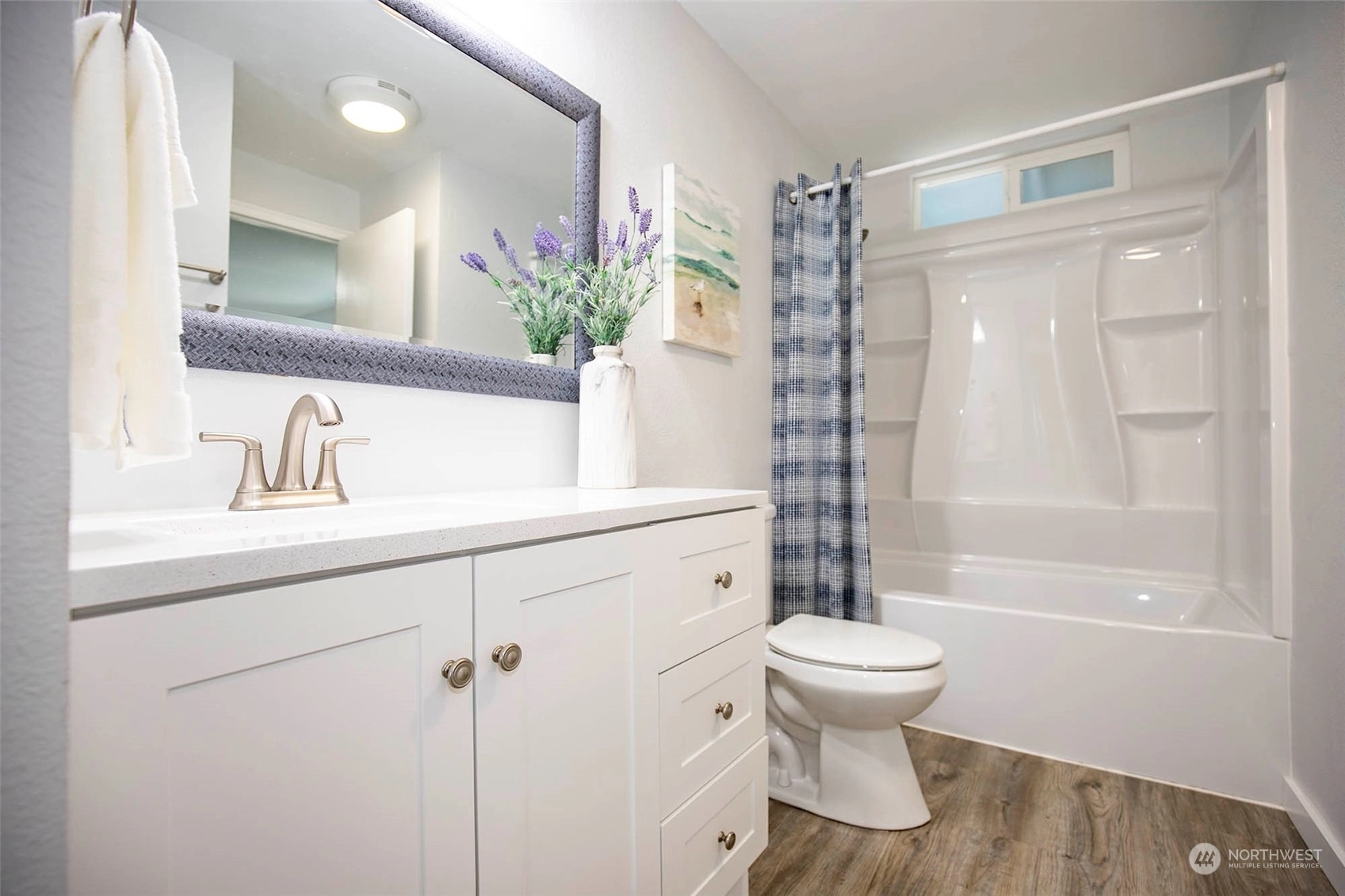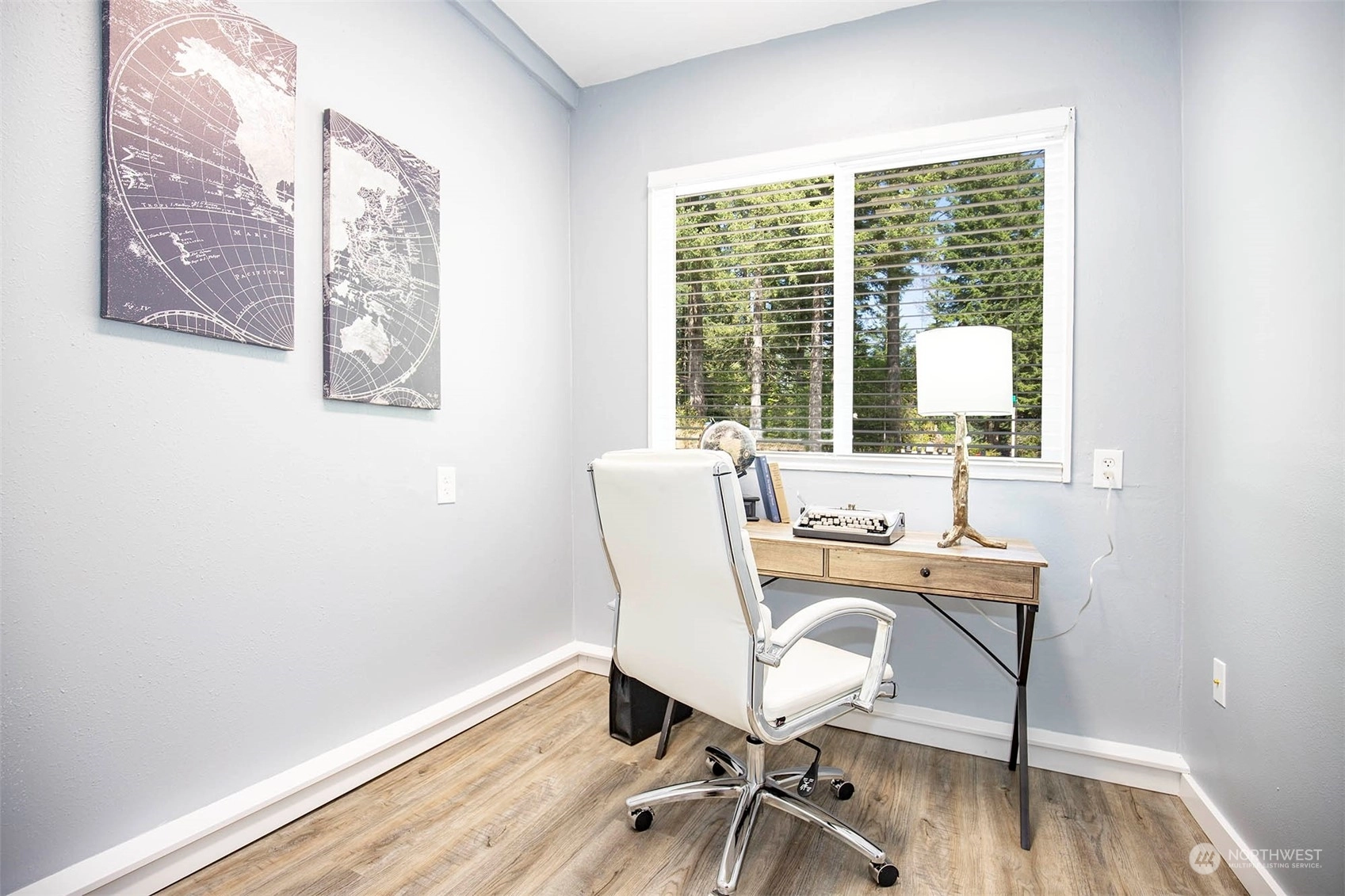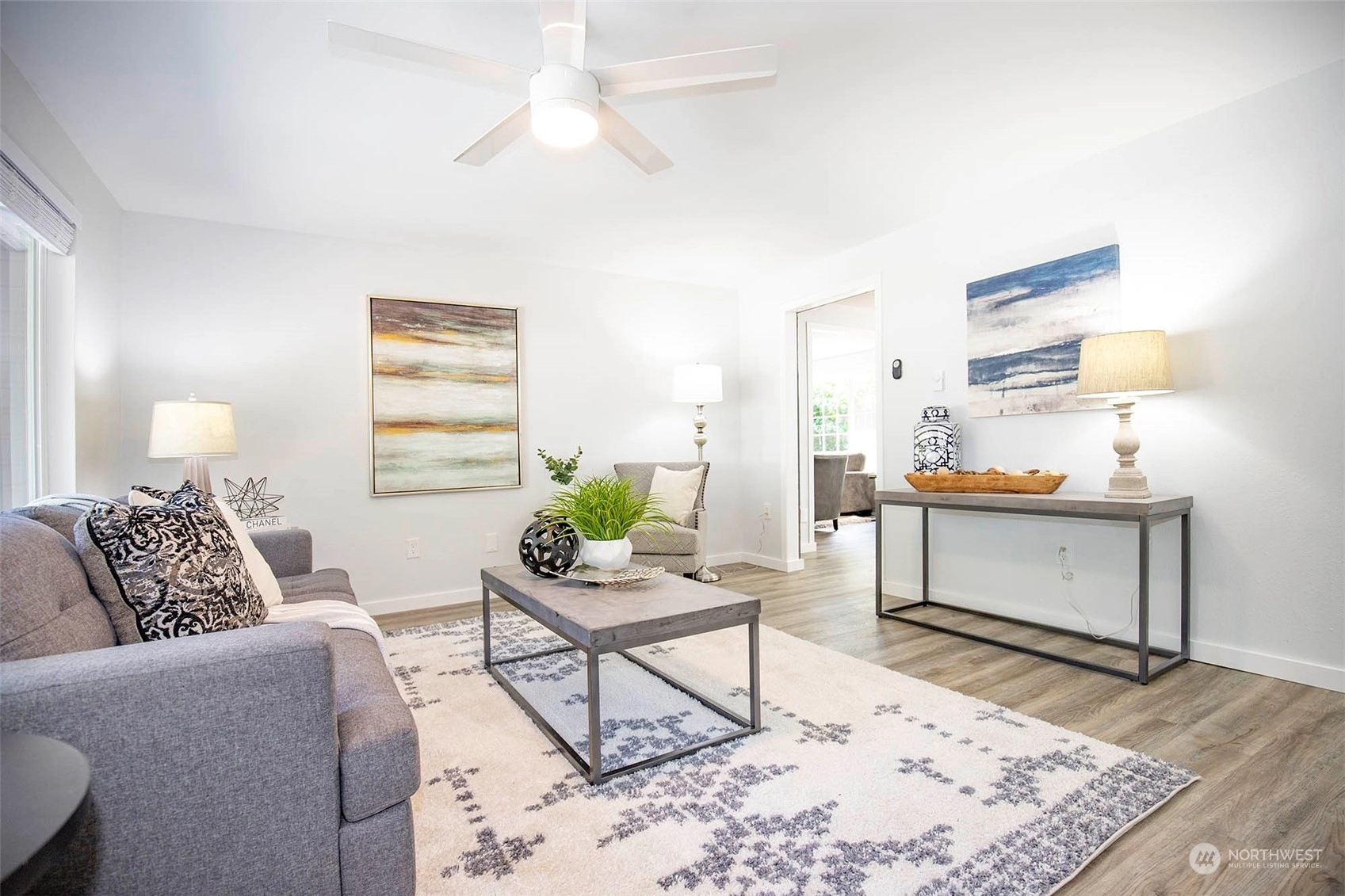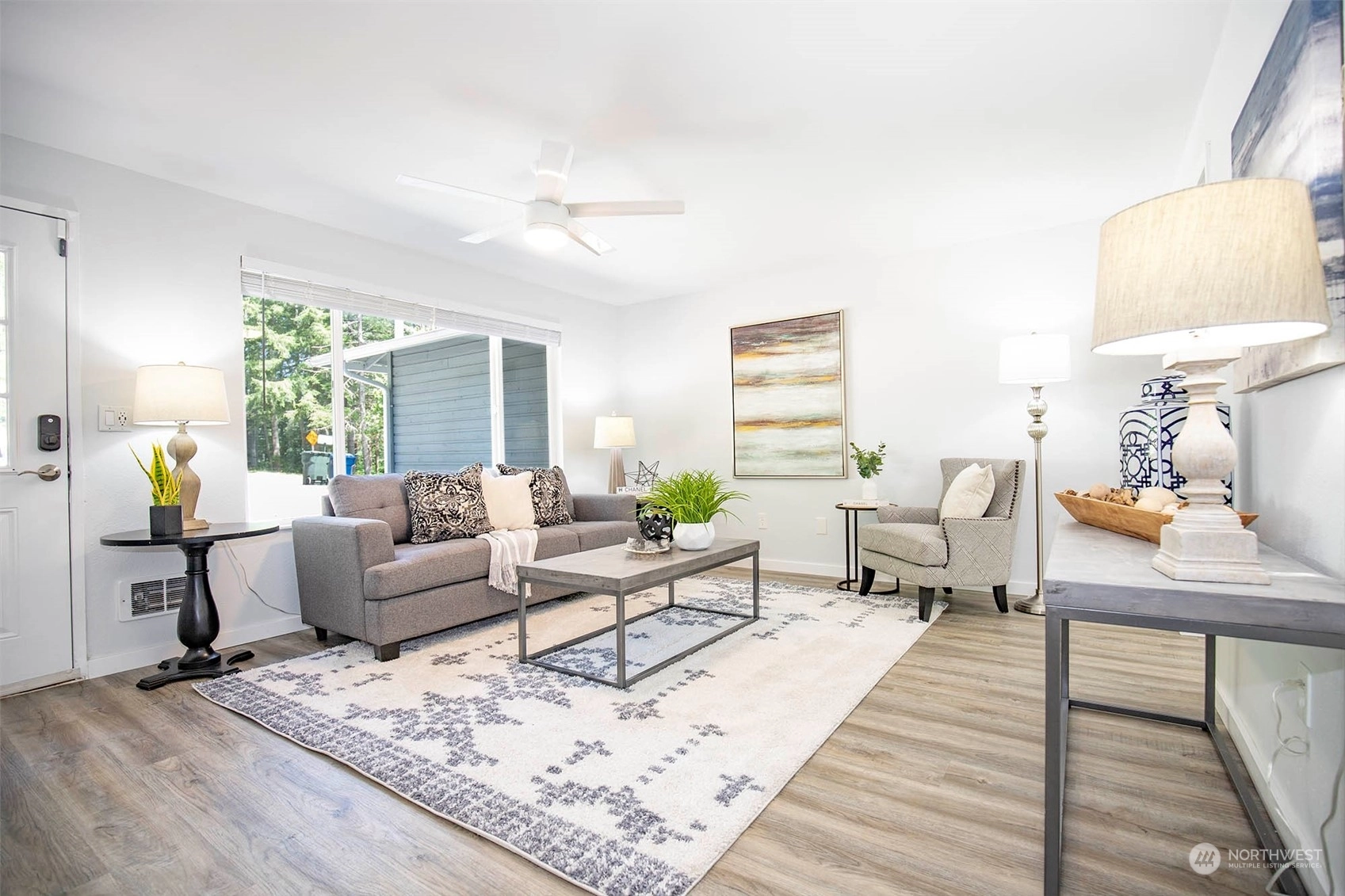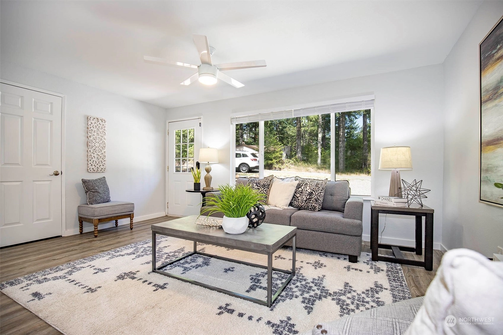 This charming rambler in one of the best locations in Wilderness Rim is a true retreat! Cozy up by the wood fireplace in the Family Room open to beautifully remodeled Kitchen w/all new white shaker cabinets, quartz countertops, SS appliances & pantry. Dining Room leading to Deck w/gas line for BBQ & expansive Patio. Living Room, Primary Bedroom, 2 more Bedrooms & nicely remodeled Full Bath. Utility Room w/storage, Half bath & Office off Family Room. Updates include new paint, new windows & blinds, new light fixtures, new carpet & LVP throughout, new garage door w/lift, tankless gas water heater. Large fully fenced yard, 1 car garage, driveway & RV parking! Swim in Rattlesnake Lake, watch beautiful wild life, enjoy hikes & walks! It's Home!