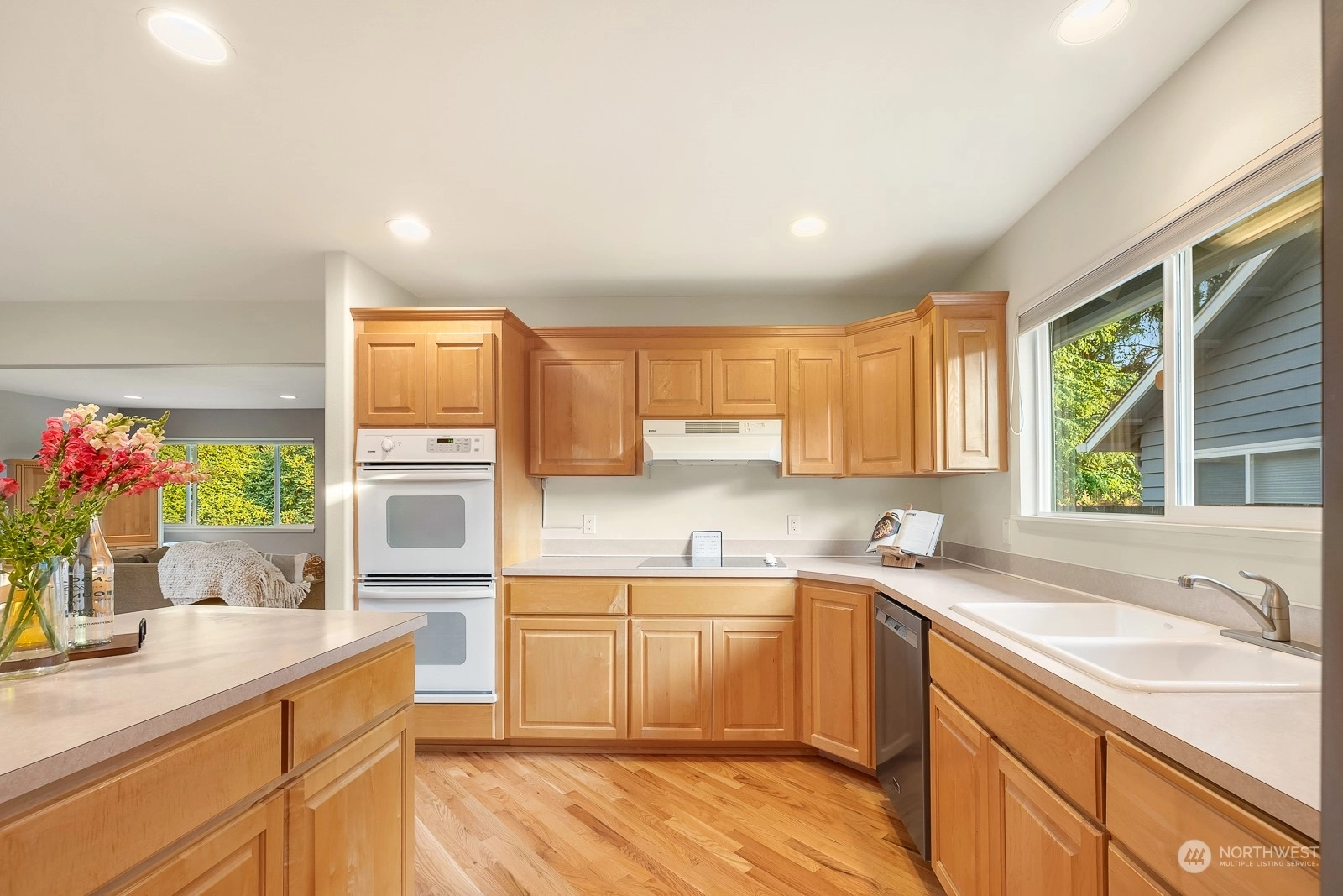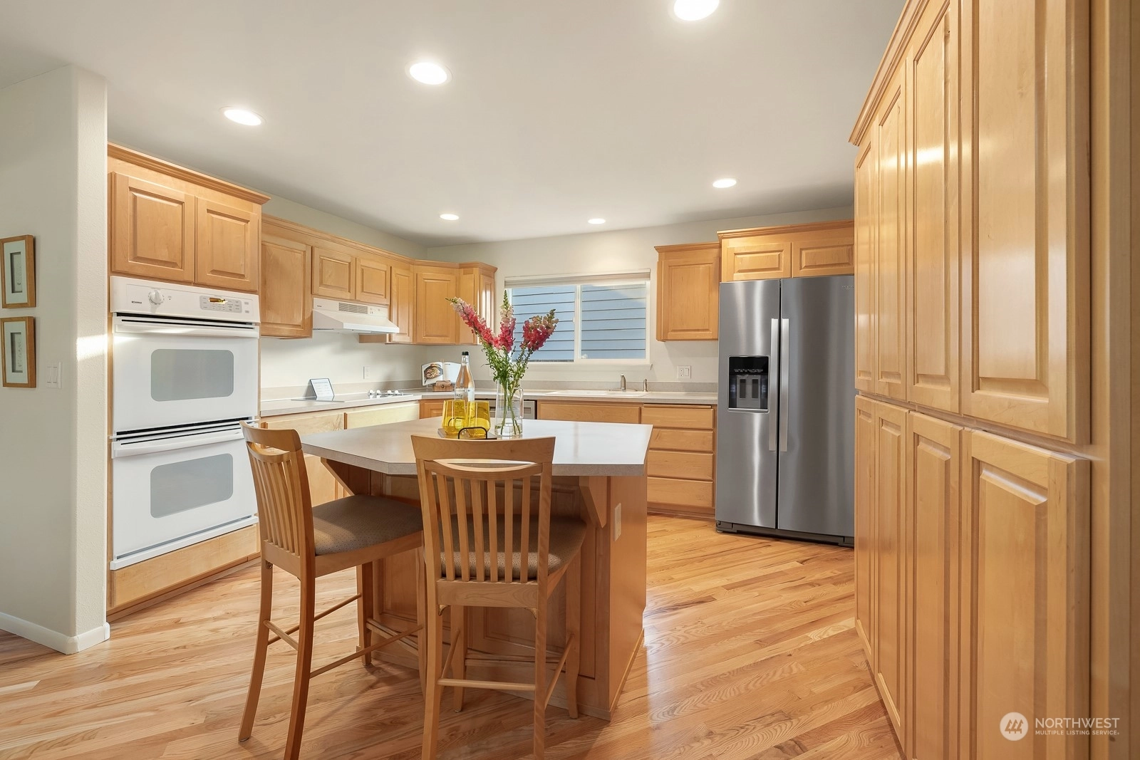 Much-loved one-owner Kirkland home is ready for new owners to enjoy. Fantastic 3-bedroom rambler features gorgeous new hardwood flooring, a sunlit open floor plan that extends to the outside deck for outdoor living, a brand NEW FURNACE, plus a new fridge, dishwasher and water heater. Fantastic kitchen complete with plenty of pantry storage and double-ovens, and the primary suite includes an attached ¾ bath. Very private fenced backyard with a deck, shed and mature landscaping. Two-car garage with work bench and shelving. Nice curb appeal with rockery and covered front porch. Close to parks, schools, park-n-ride, restaurants, and daily amenities—with easy freeway access. Award winning Northshore Schools! Preinspected.
