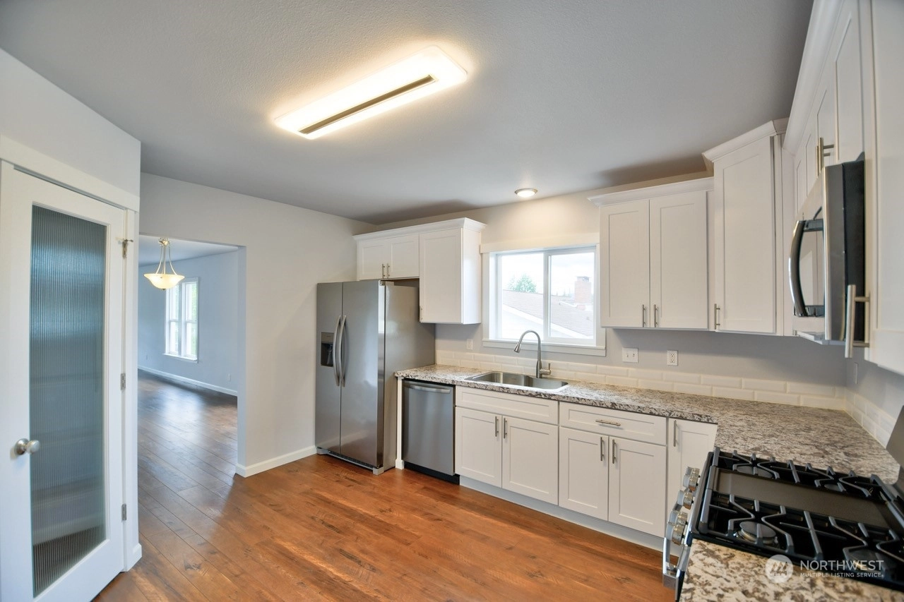 $20,000 Price Reduction!!. Complete remodel from top to bottom. From the covered front porch you enter the home to a cozy foyer that leads you to an ample living/dining area. The kitchen has great flow and loads of cabinet space and a walk in pantry. Two bedrooms (including Primary), one full bath and one and three quarter bath complete the downstairs. Upstairs there is bonus space as well as a 3rd bedroom. New appliances, water heater, ductless mini split help make this home energy efficient. Detached, alley load garage. Short walk to downtown and just minutes to the highway.