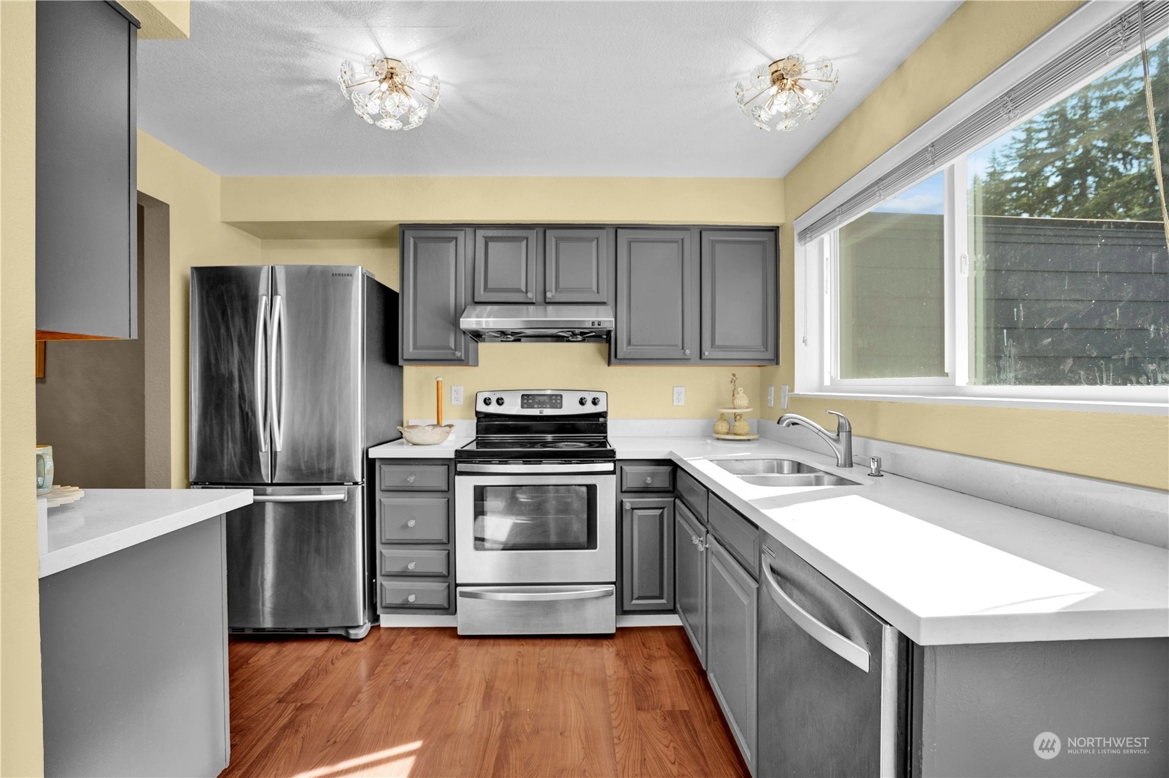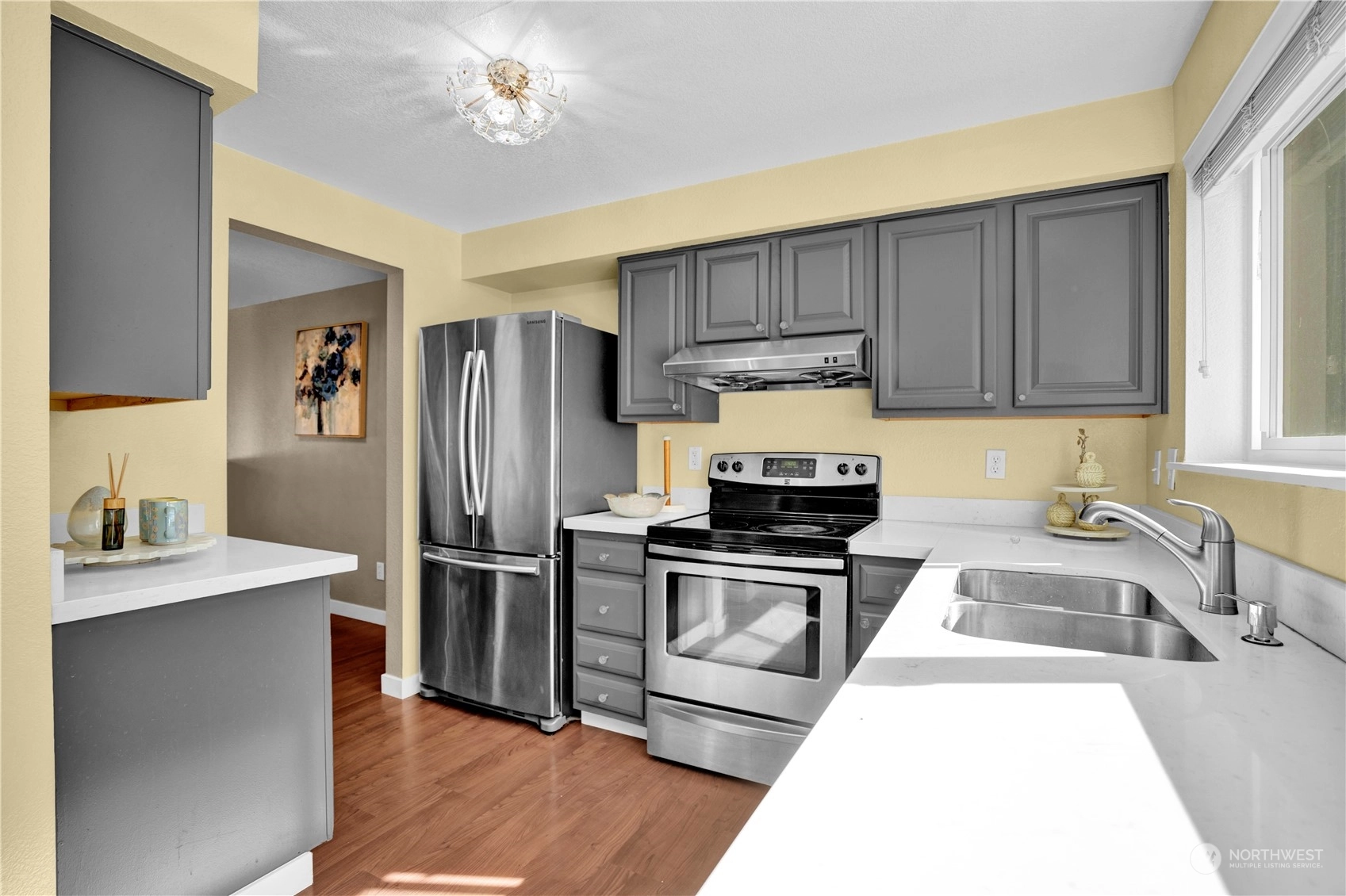 Nestled in the heart of Lynnwood, this captivating corner unit townhome awaits its new owner. With meticulous attention to detail and thoughtful improvements, this residence is a blend of comfort, style, and convenience. Loft style architecture, upgraded deck above the carport, comes with two parking stalls, high ceiling bedrooms w/ skylight. Exterior uprgaded in 2021, include vinyl exterior, new paint, window . New water tank, area heater and range hood installed in 2020. Easy commute to Alderwood Mall, shopping centers and light rails in future.