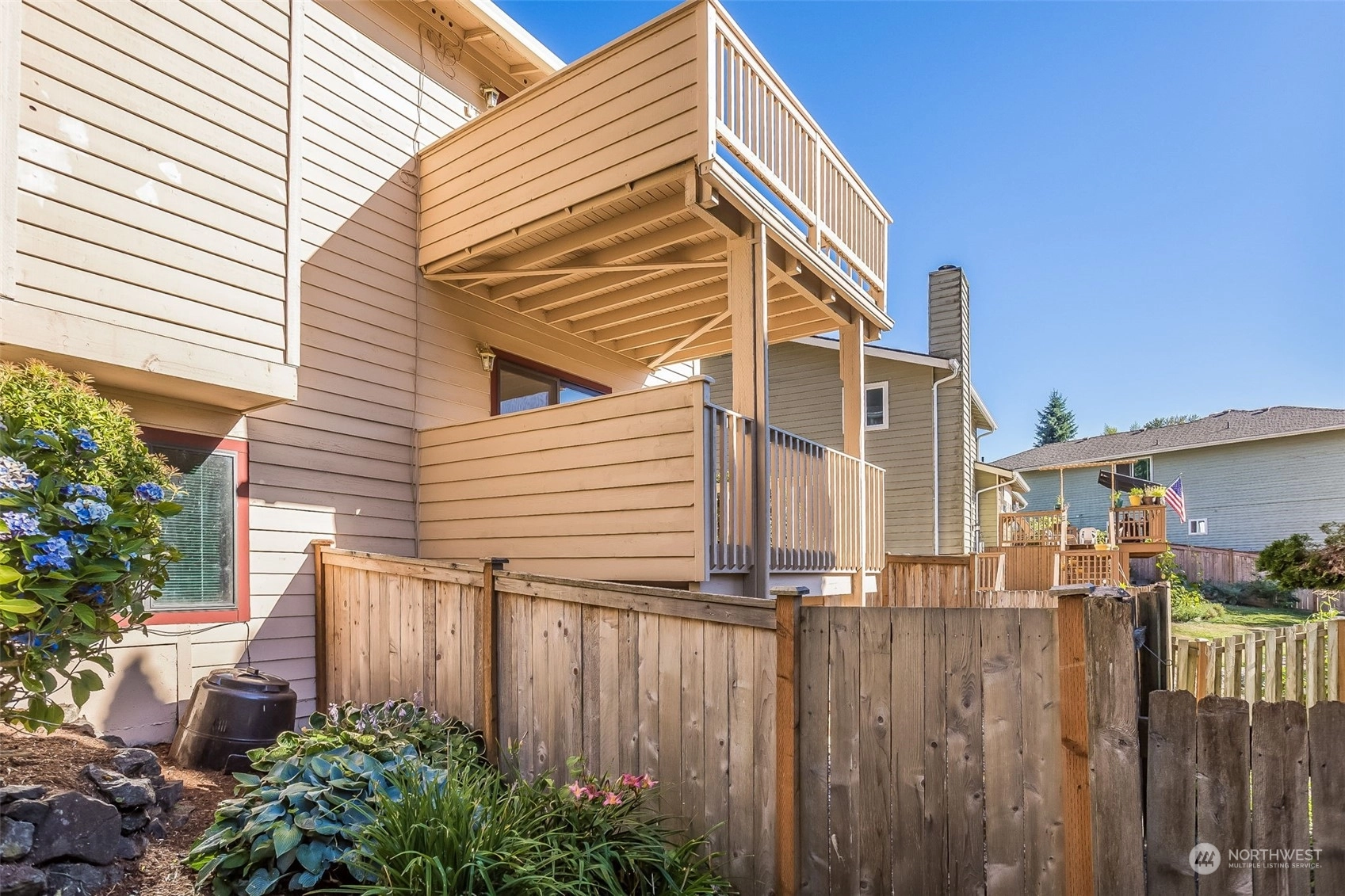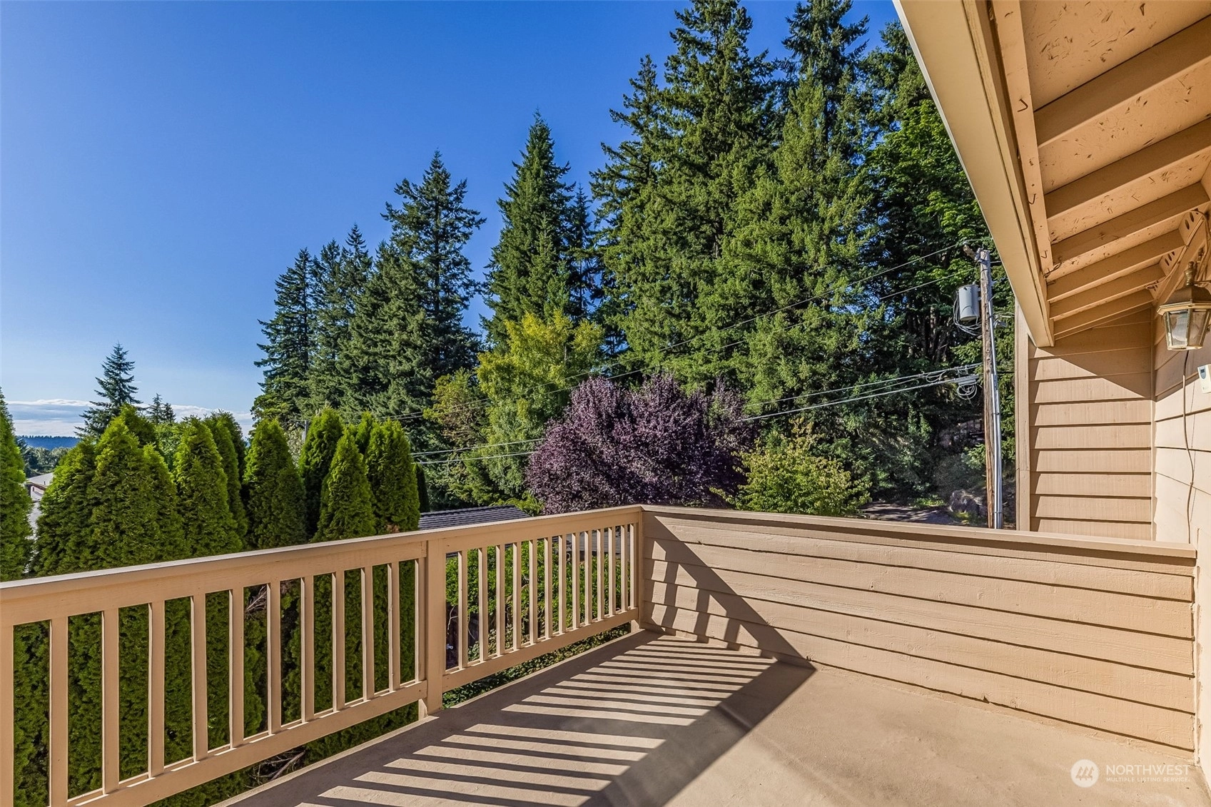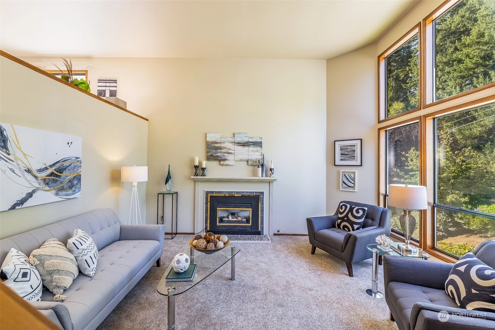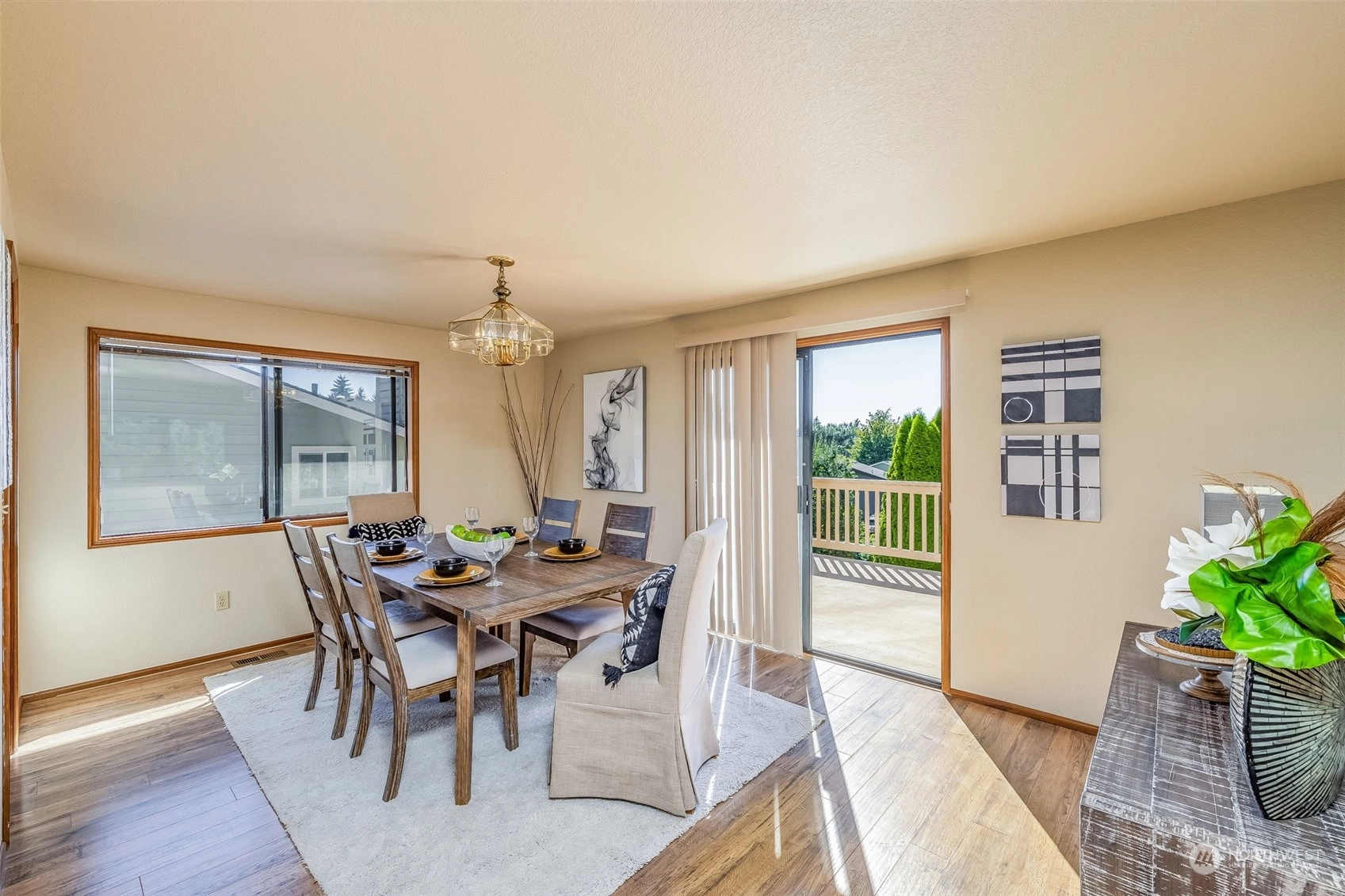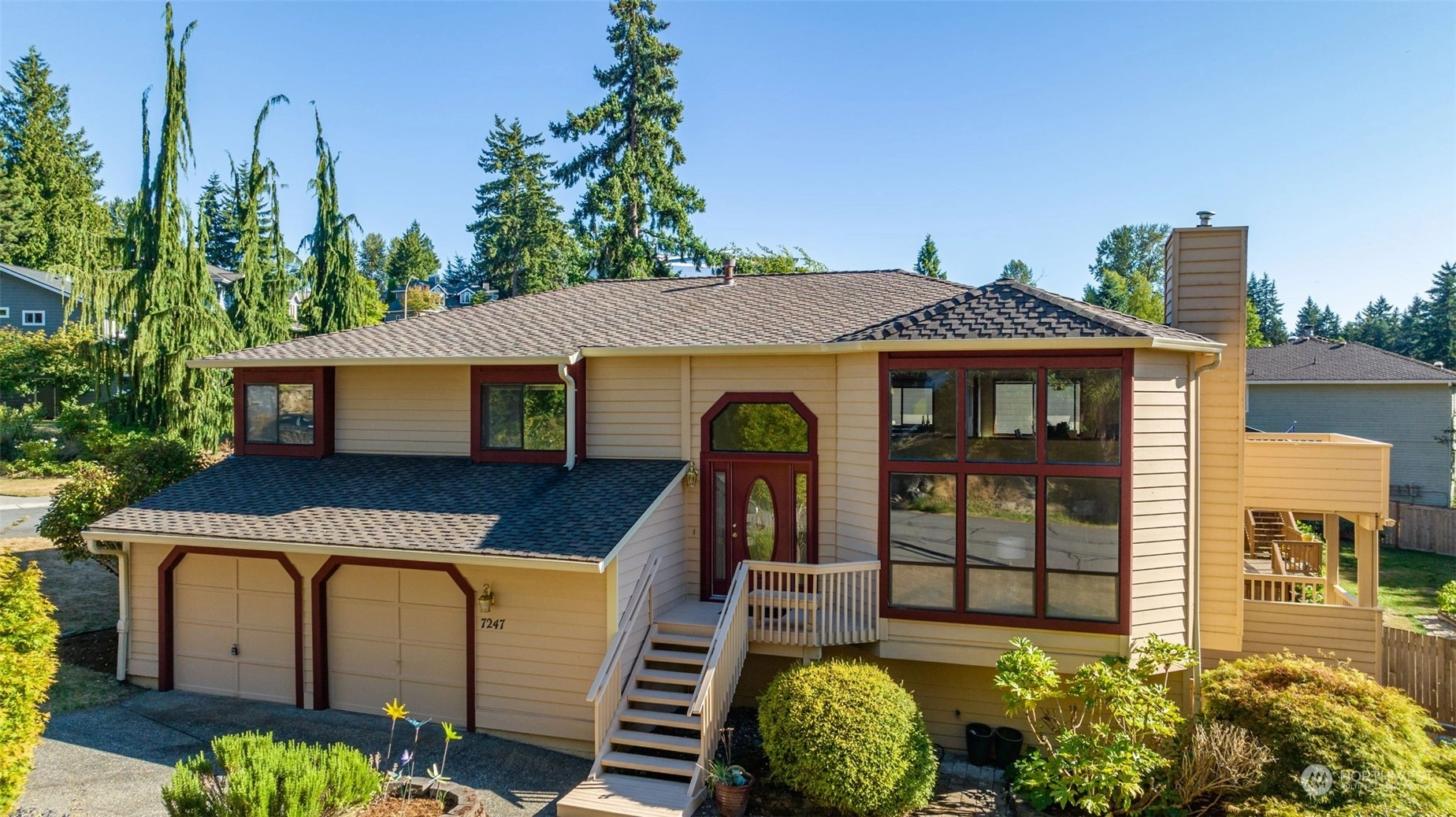 Wonderfully maintained large home in a quiet neighborhood of Kenmore. Open entry, light and bright. The living room enjoys a wall of windows and gas fireplace. The large kitchen with eating nook offers Stainless Steel appliances, pantry and access to the dining room and entertainment deck. New carpet in the 3 upstairs bedrooms. French doors lead you into the Primary bedroom that has a walk-in closet and private bath. Downstairs the large rec room is spacious, and the sliding door leads to a covered deck overlooking the fenced backyard. There is another bedroom downstairs and full bath. There is a partial unfinished room off the basement, great for crafts or a workout room. Build some equity by finishing this off to your taste.