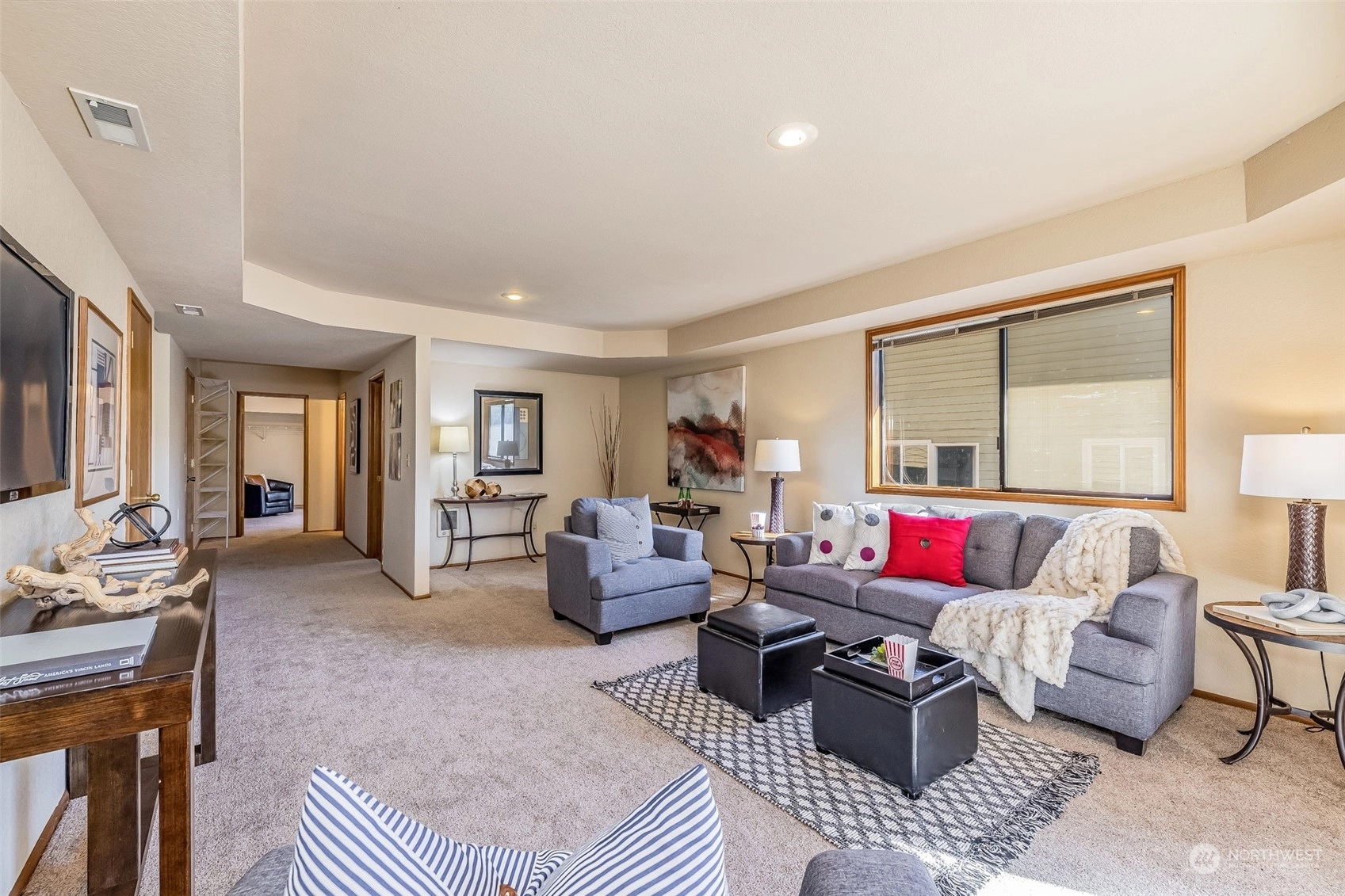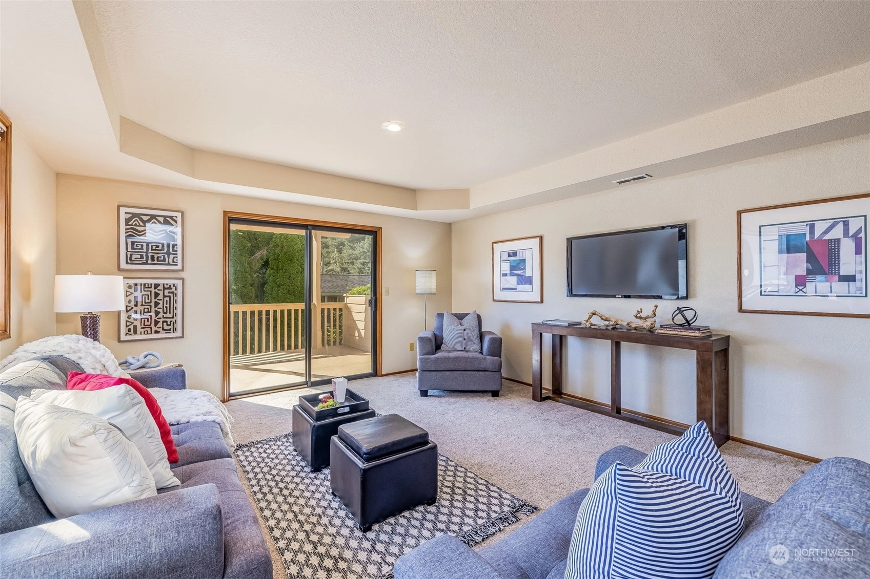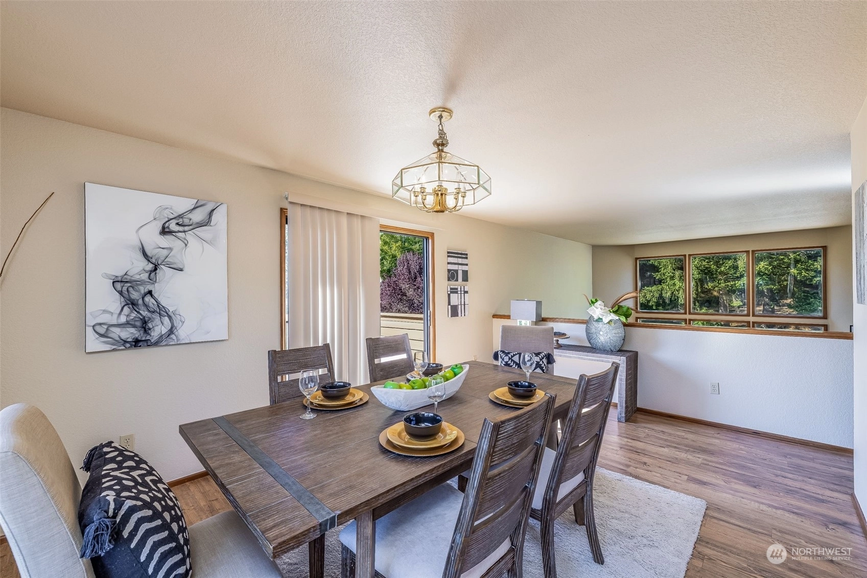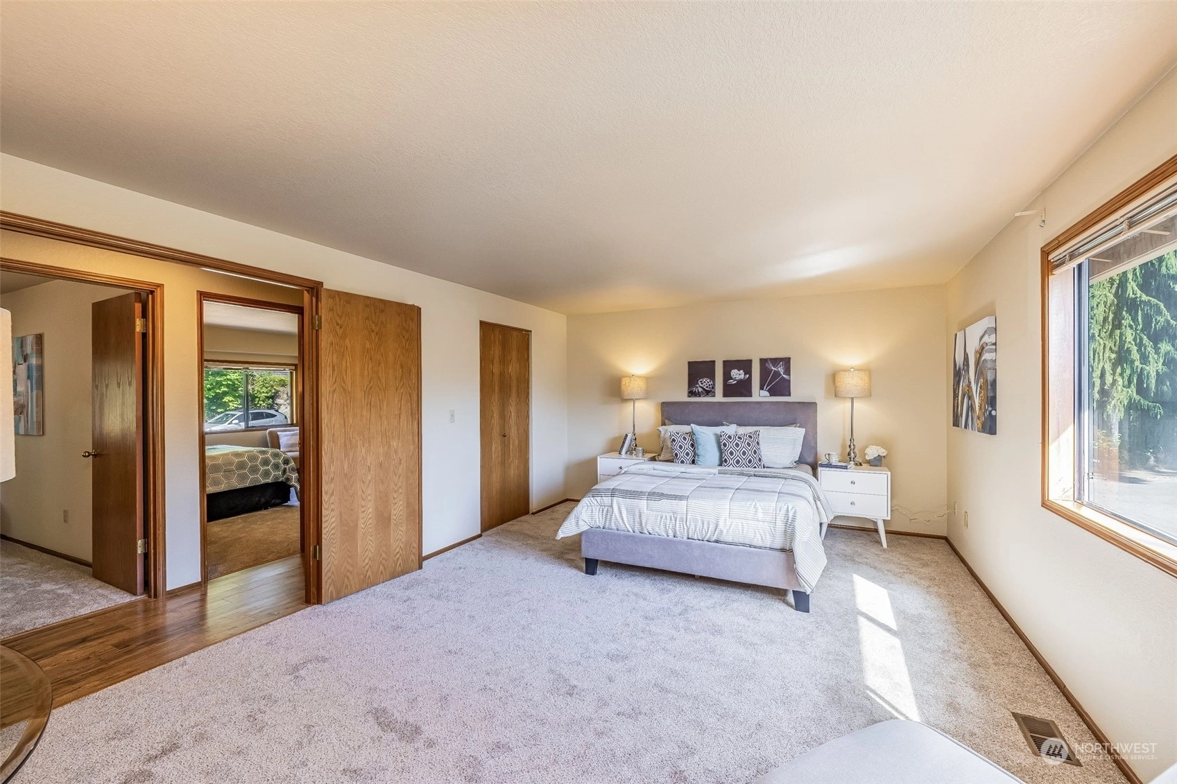 Wonderfully maintained large home in a quiet neighborhood of Kenmore. Open entry, light and bright. The living room enjoys a wall of windows and gas fireplace. The large kitchen with eating nook offers Stainless Steel appliances, pantry and access to the dining room and entertainment deck. New carpet in the 3 upstairs bedrooms. French doors lead you into the Primary bedroom that has a walk-in closet and private bath. Downstairs the large rec room is spacious, and the sliding door leads to a covered deck overlooking the fenced backyard. There is another bedroom downstairs and full bath. There is a partial unfinished room off the basement, great for crafts or a workout room. Build some equity by finishing this off to your taste.