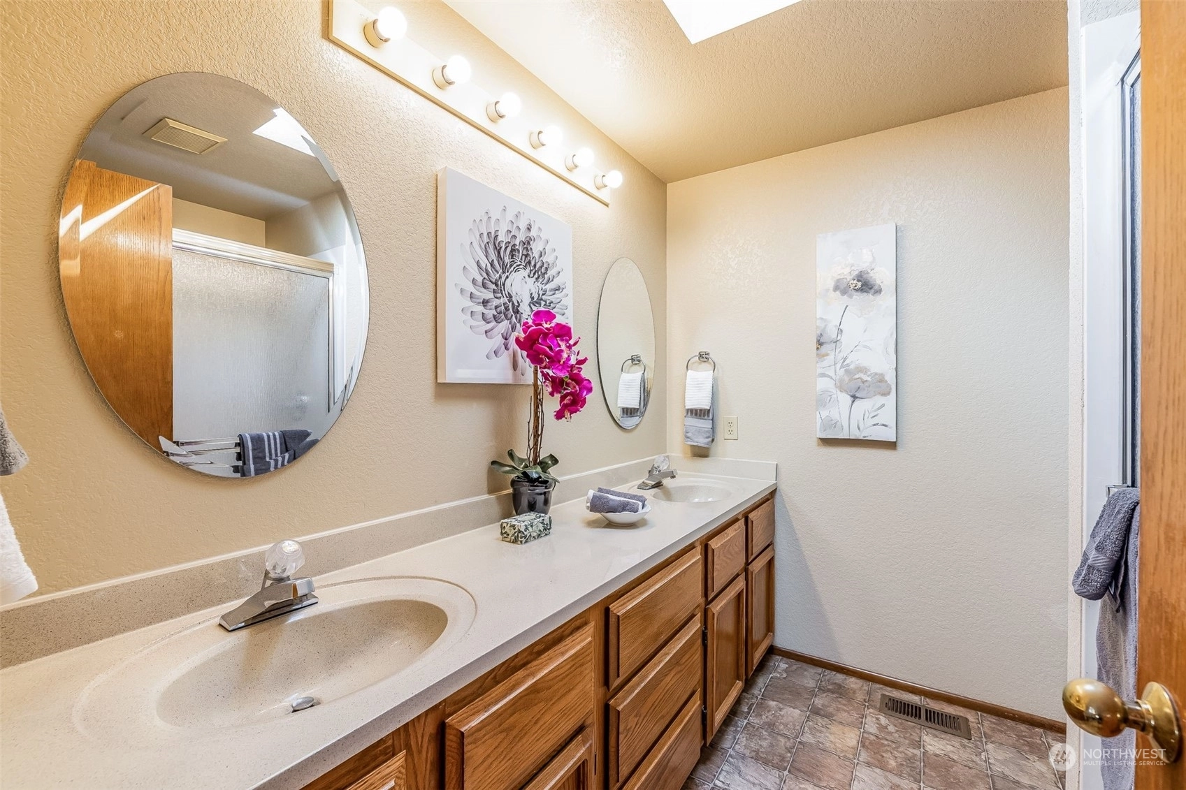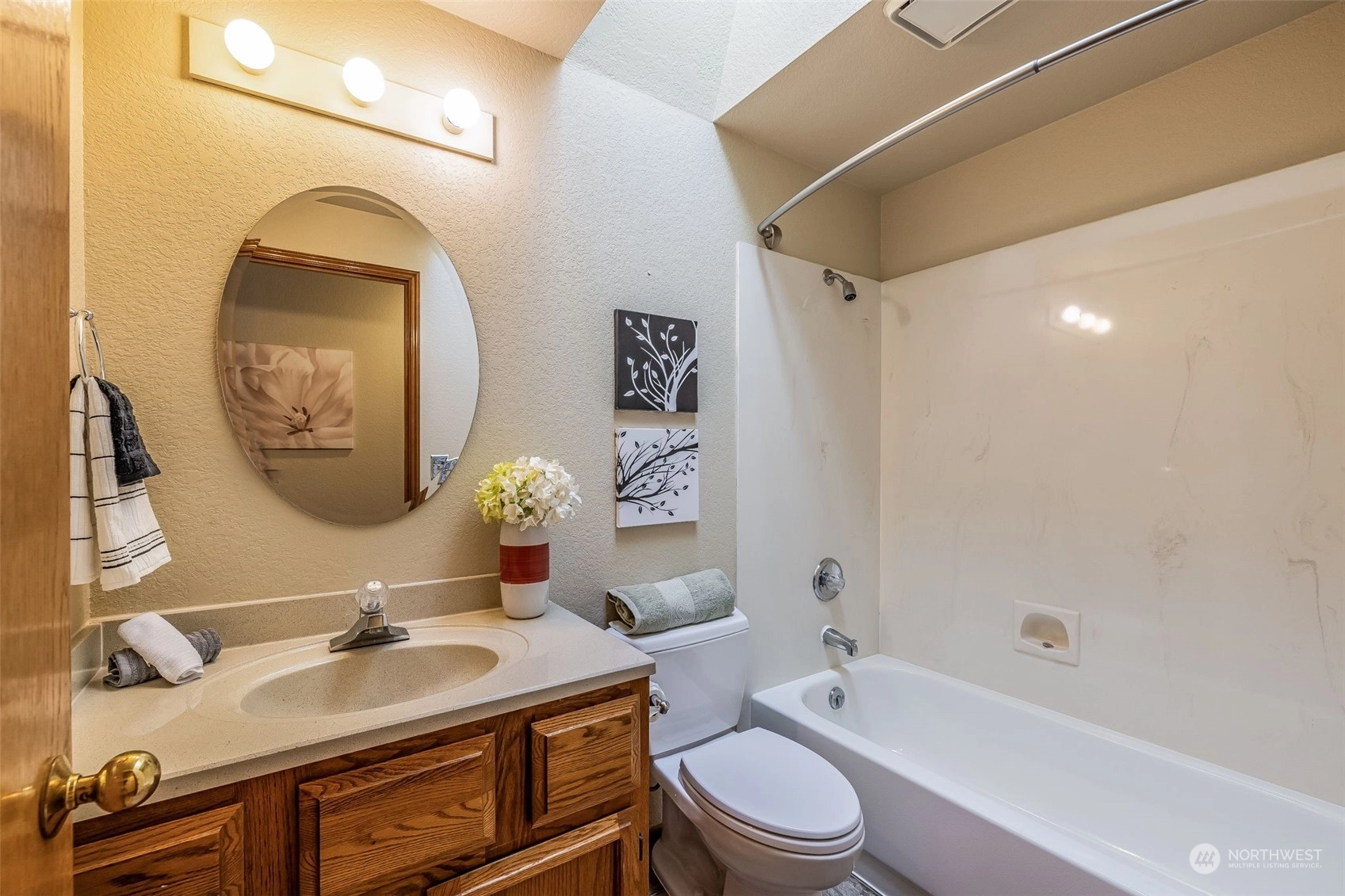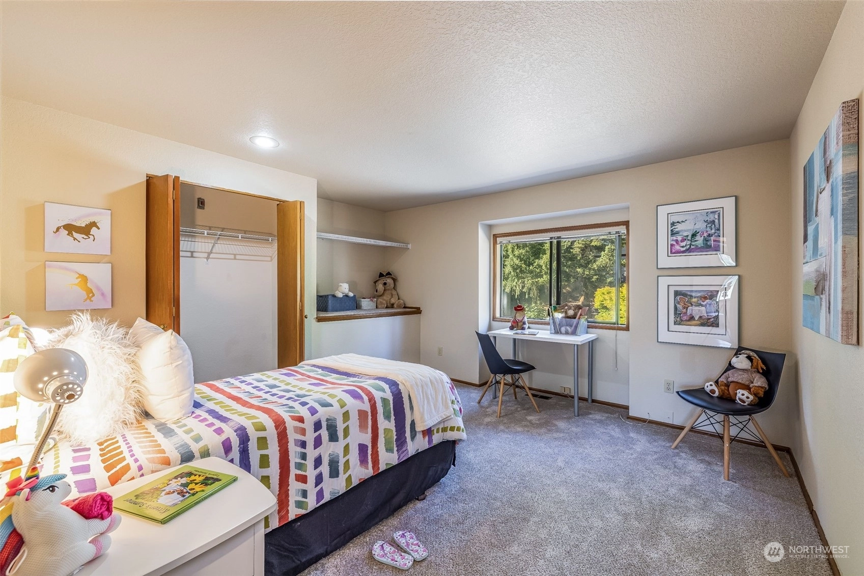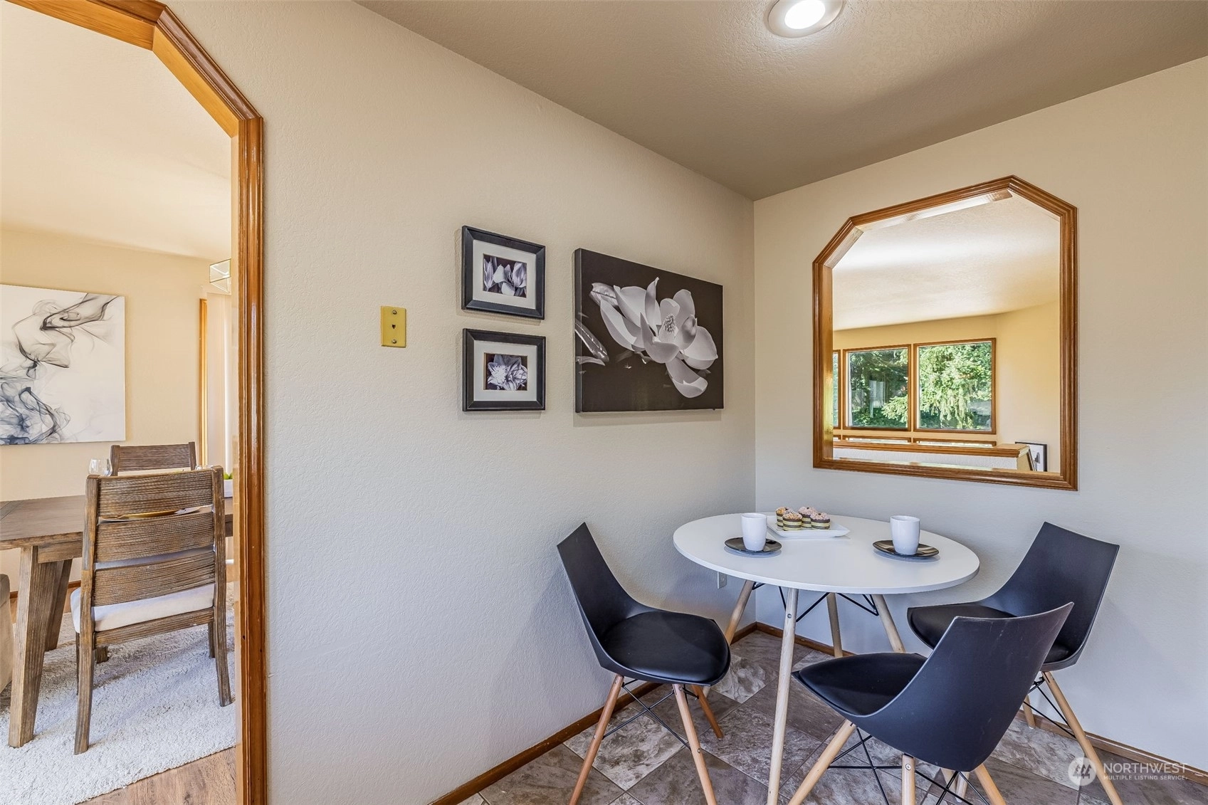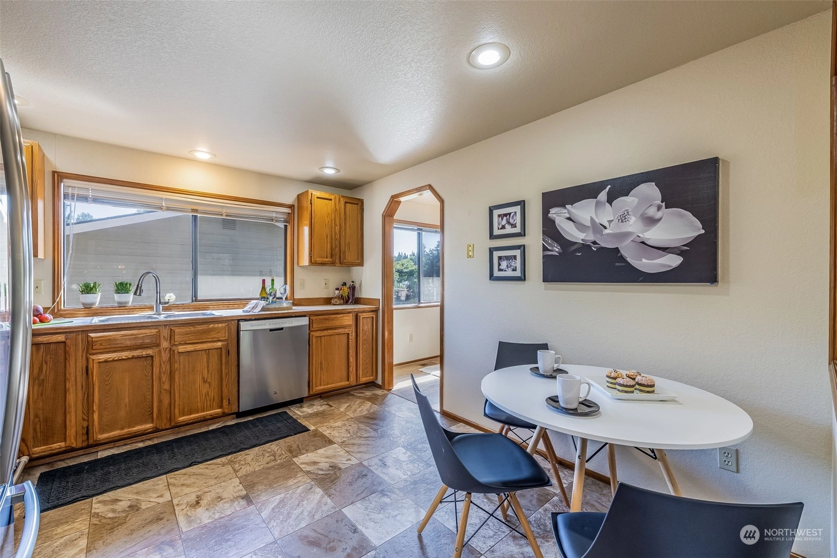 Wonderfully maintained large home in a quiet neighborhood of Kenmore. Open entry, light and bright. The living room enjoys a wall of windows and gas fireplace. The large kitchen with eating nook offers Stainless Steel appliances, pantry and access to the dining room and entertainment deck. New carpet in the 3 upstairs bedrooms. French doors lead you into the Primary bedroom that has a walk-in closet and private bath. Downstairs the large rec room is spacious, and the sliding door leads to a covered deck overlooking the fenced backyard. There is another bedroom downstairs and full bath. There is a partial unfinished room off the basement, great for crafts or a workout room. Build some equity by finishing this off to your taste.