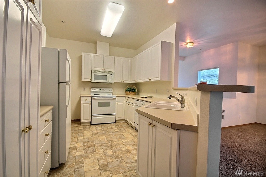 Hard to find 3 bedroom condo in Red Mill. Open, great room concept. Nice sized kitchen with utility closet and eating bar. Gas fireplace. Small deck looks out over greenbelt. Huge master bedroom. Kent schools. Single car garage plus one outside space. Stable HOA. Complex has outdoor pool, exercise room, and hot tub for your use. No rent cap. Close to shopping. Minutes to Hwy 167 and 405.