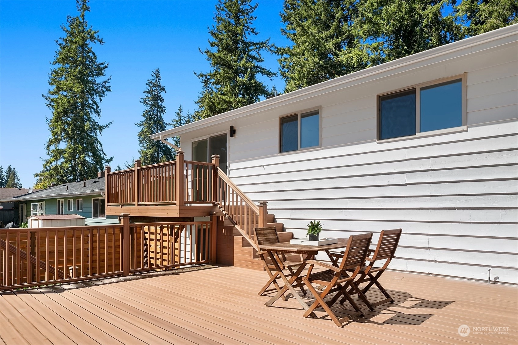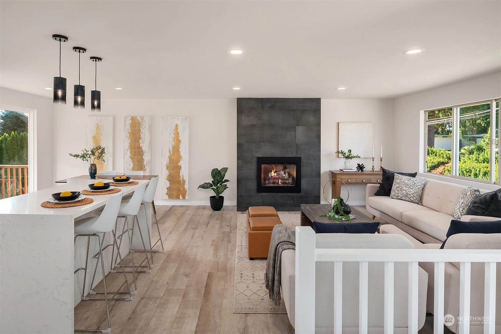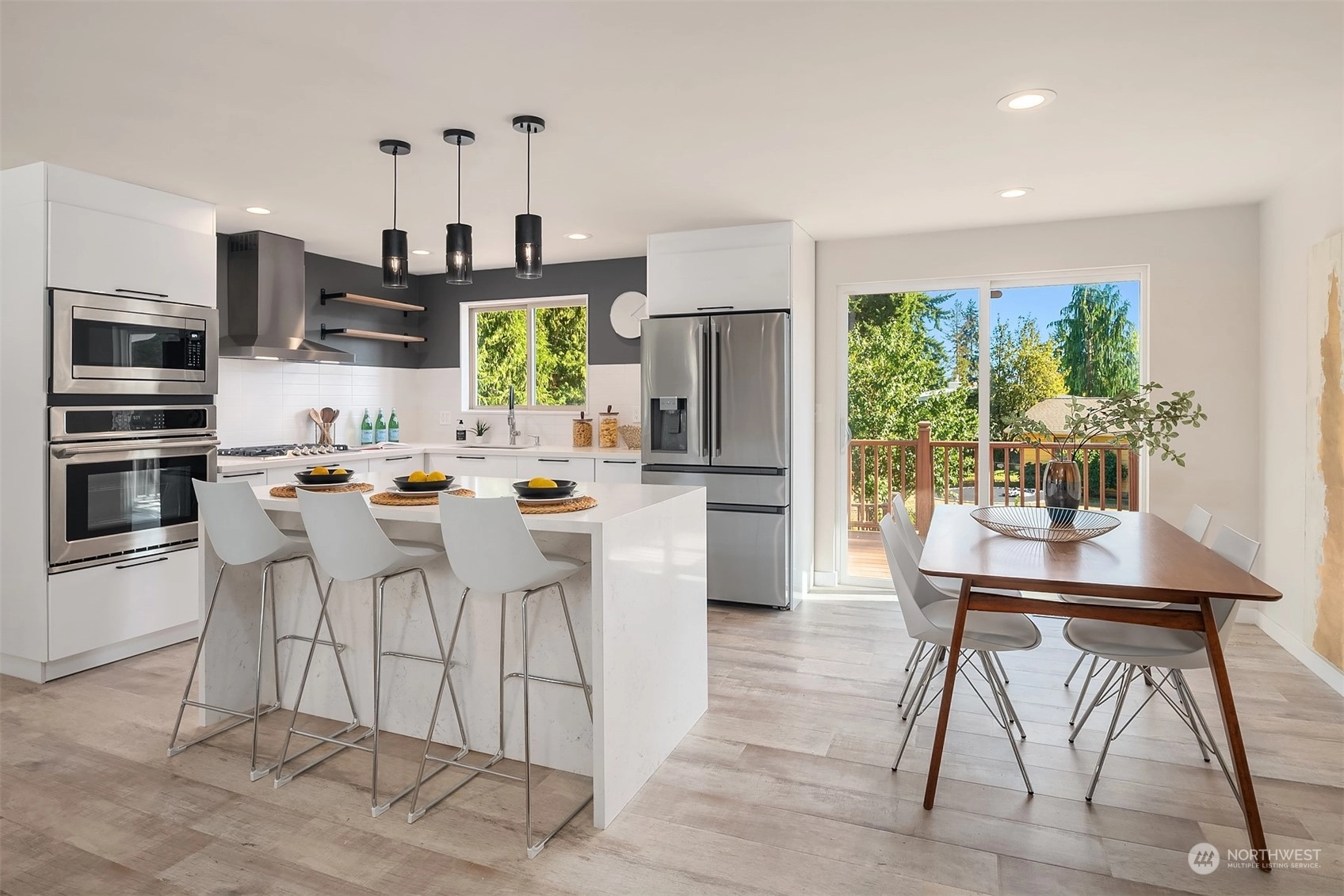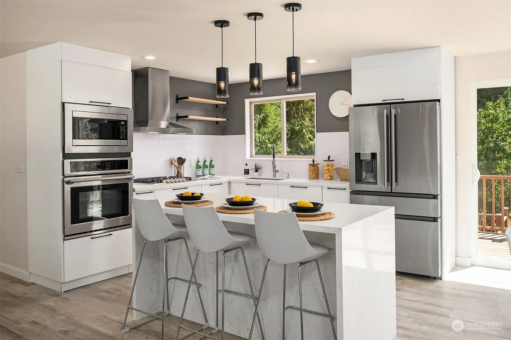 This stunning spacious house offers you 3 bedrooms 3 bath and remodeled kitchen includes quartz countertops with waterfall island, gas stove , Stainless steel appliances and new cabinets Naturally lit dining room opens to living room with plenty of room to entertain with new flooring throughout, this home is move-in ready! Lower level includes a massive bonus room enhanced with a wood burning fireplace, second kitchen, bedroom or in-home office and laundry with steam refresh closet! outsides offers you oversized deck and plenty room for RV, boat and much more !
