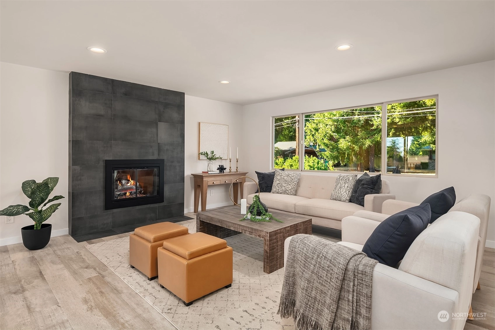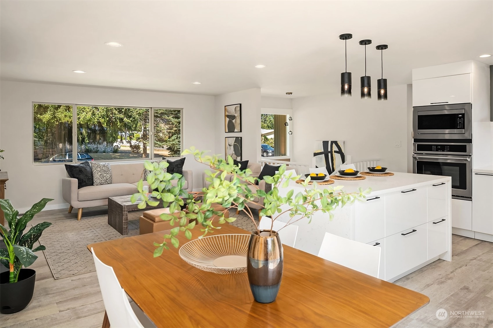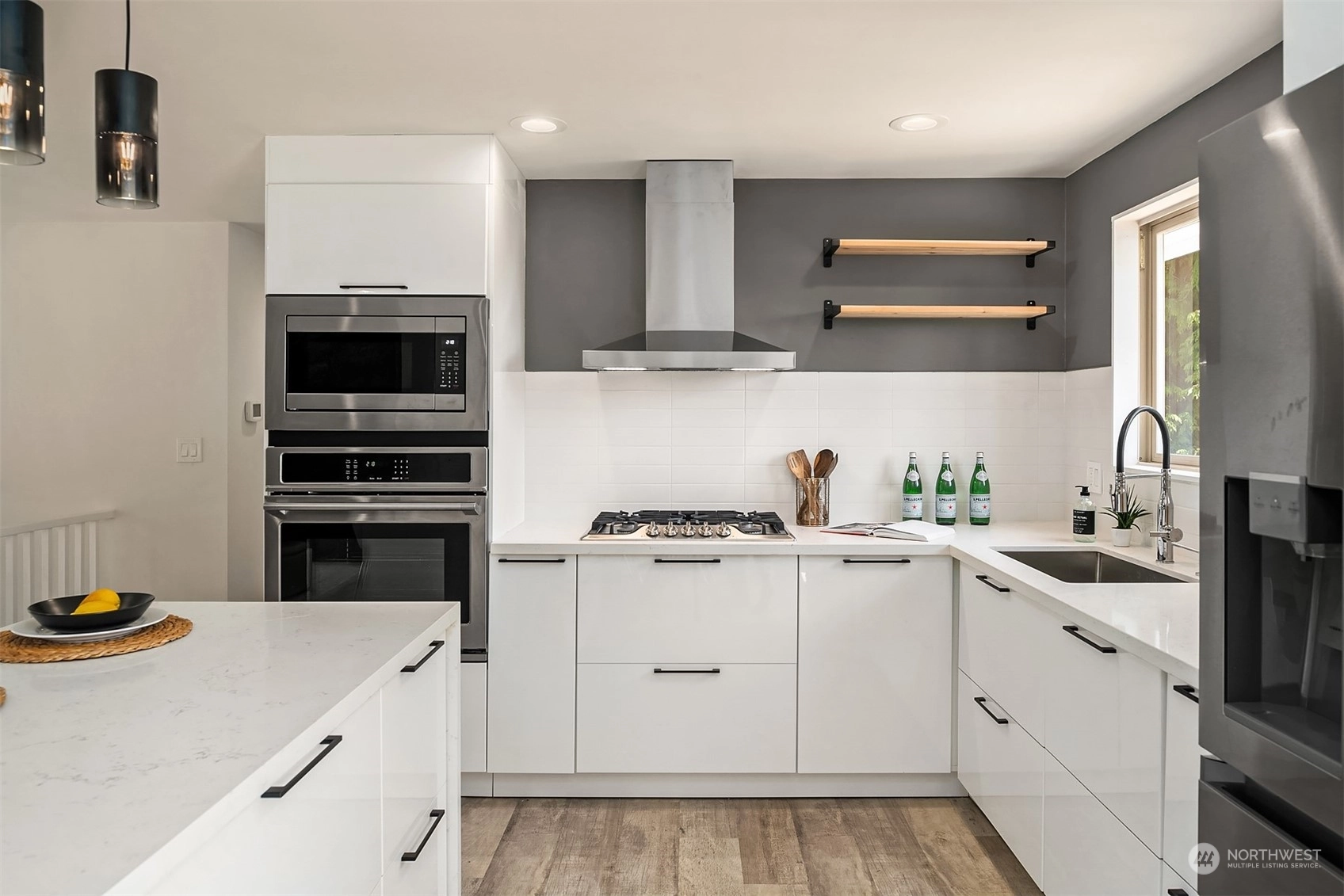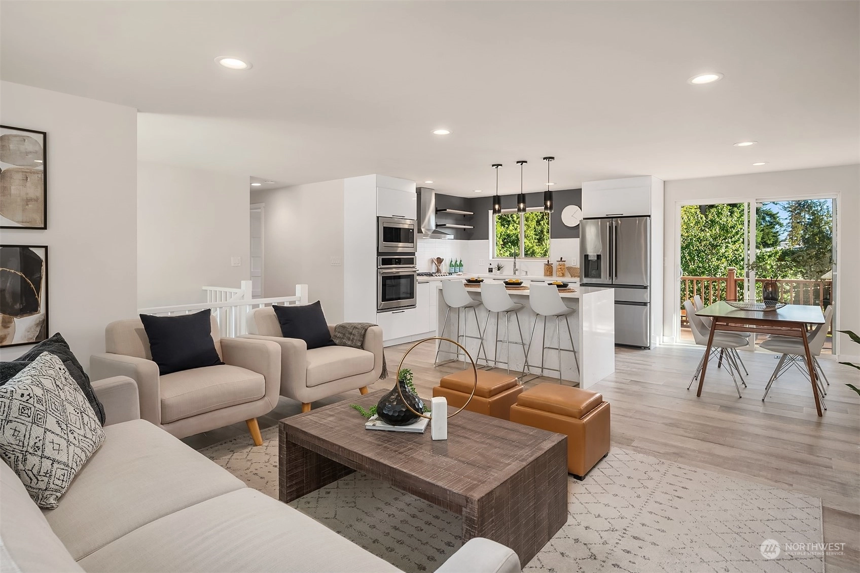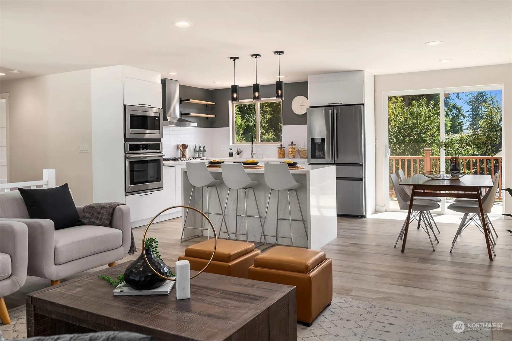 This stunning spacious house offers you 3 bedrooms 3 bath and remodeled kitchen includes quartz countertops with waterfall island, gas stove , Stainless steel appliances and new cabinets Naturally lit dining room opens to living room with plenty of room to entertain with new flooring throughout, this home is move-in ready! Lower level includes a massive bonus room enhanced with a wood burning fireplace, second kitchen, bedroom or in-home office and laundry with steam refresh closet! outsides offers you oversized deck and plenty room for RV, boat and much more !