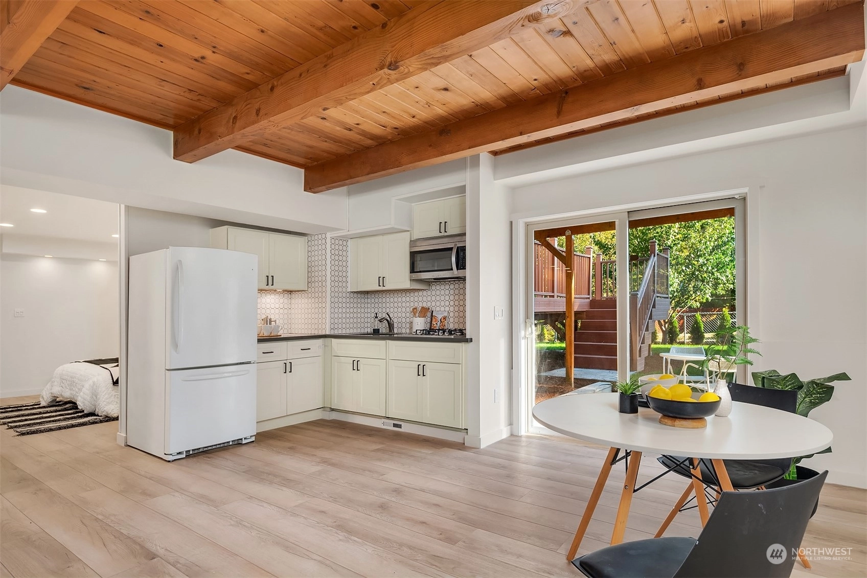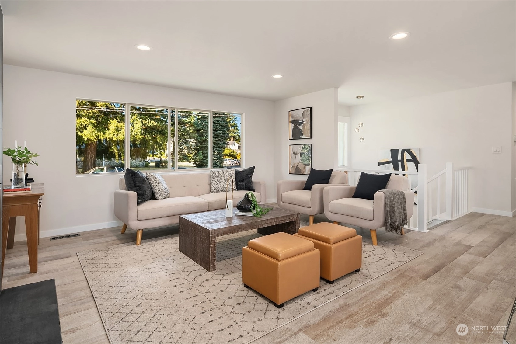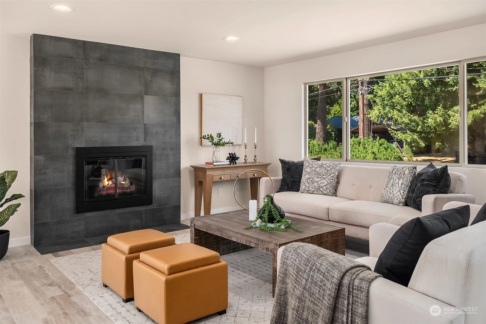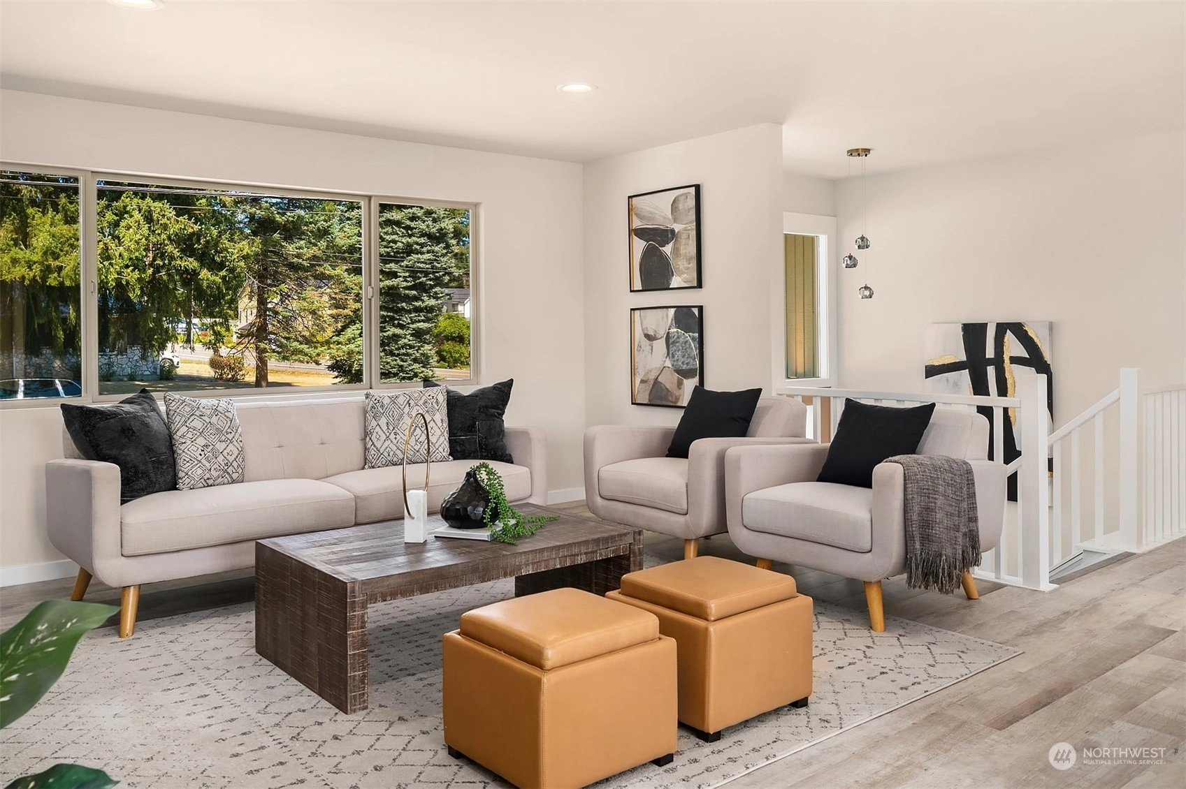 This stunning spacious house offers you 3 bedrooms 3 bath and remodeled kitchen includes quartz countertops with waterfall island, gas stove , Stainless steel appliances and new cabinets Naturally lit dining room opens to living room with plenty of room to entertain with new flooring throughout, this home is move-in ready! Lower level includes a massive bonus room enhanced with a wood burning fireplace, second kitchen, bedroom or in-home office and laundry with steam refresh closet! outsides offers you oversized deck and plenty room for RV, boat and much more !