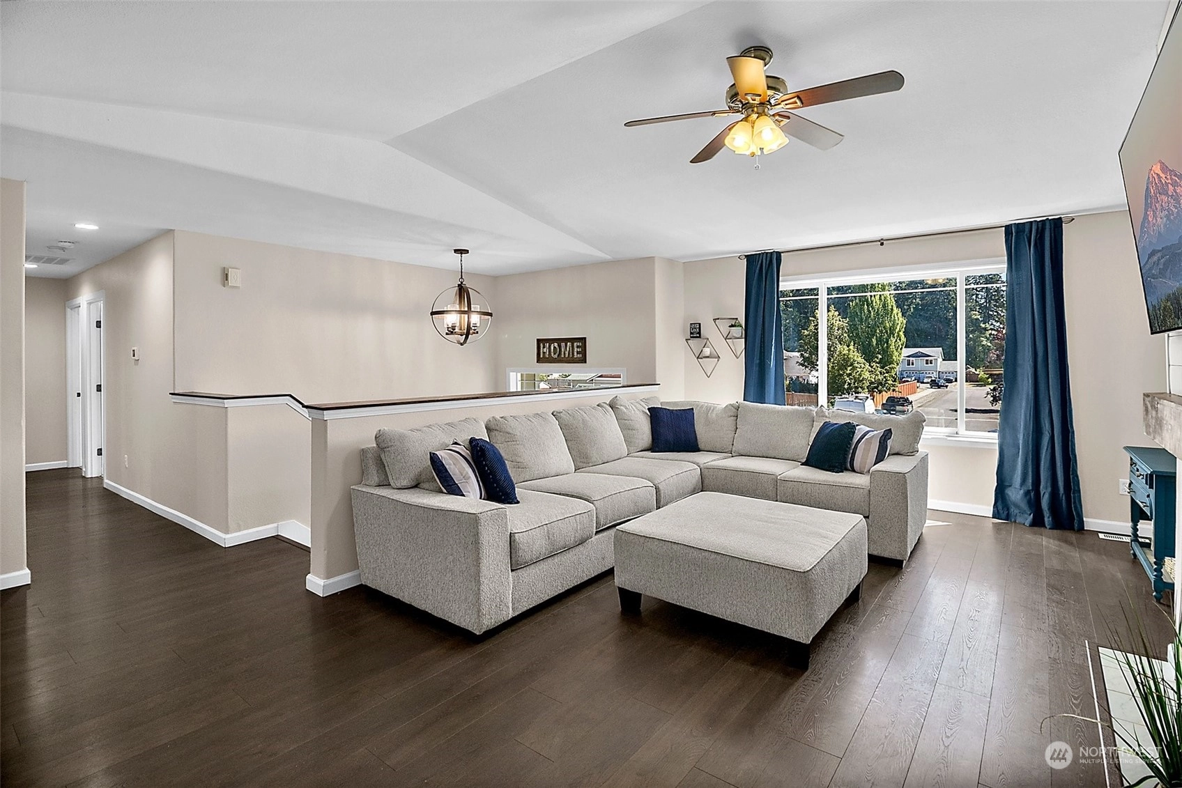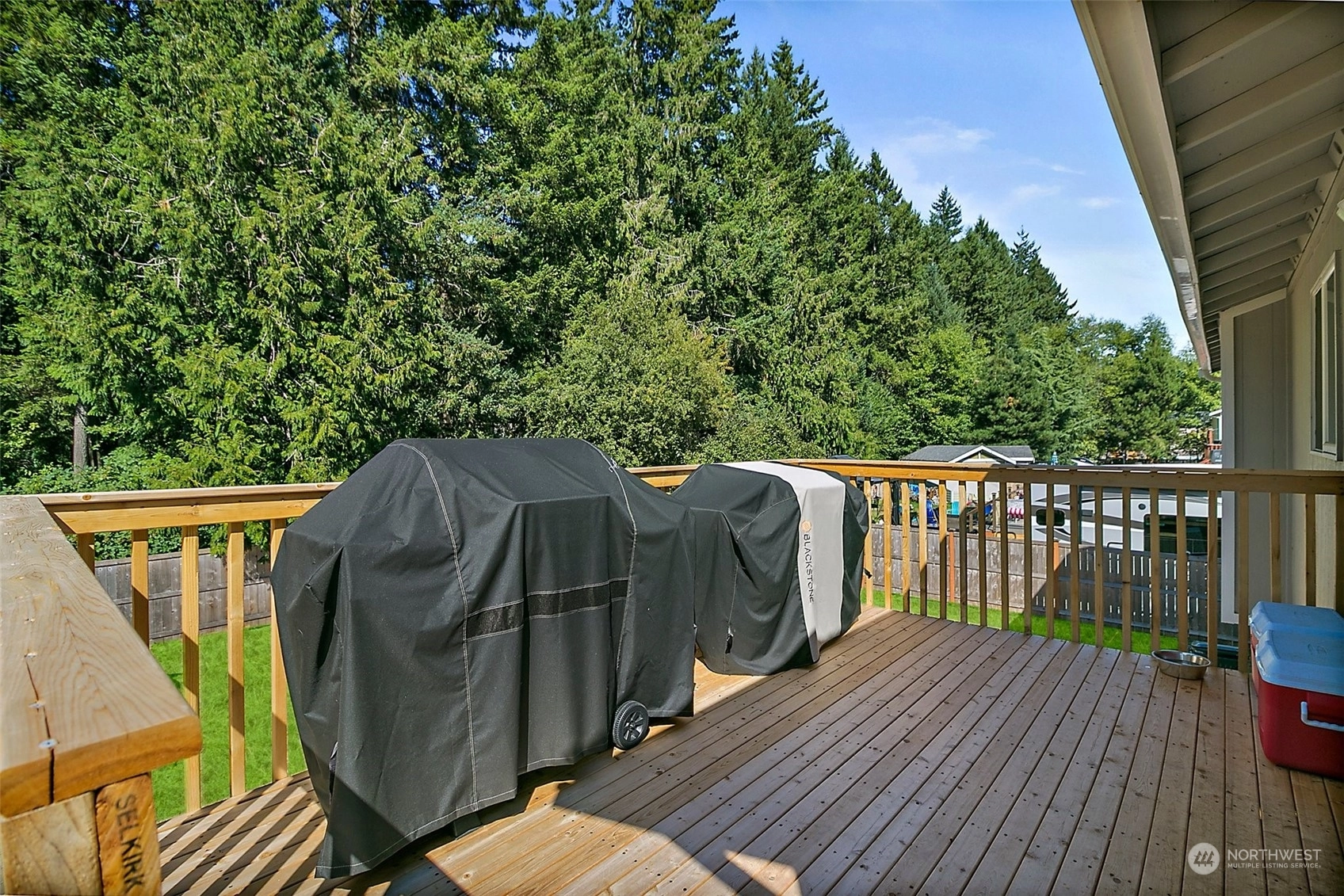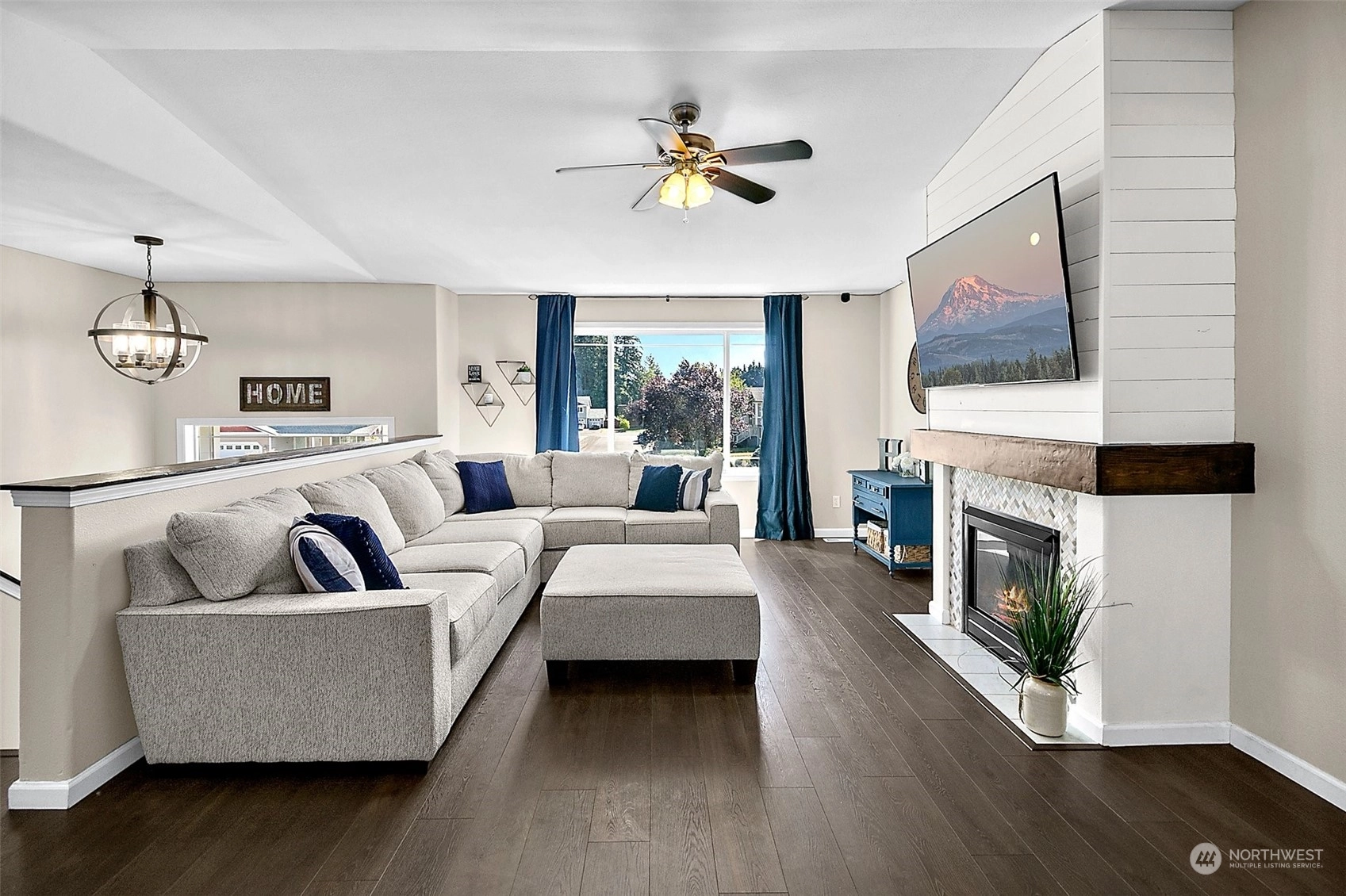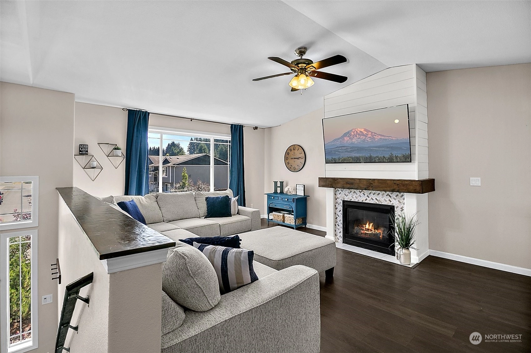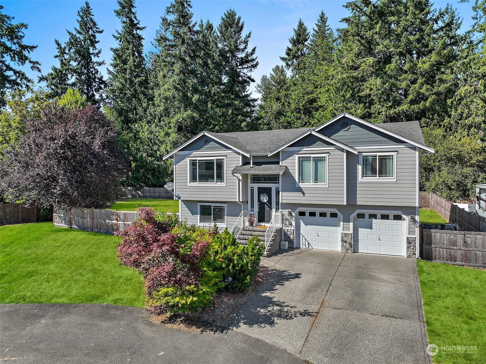 Welcome to this beautifully updated home sitting on nearly a half-acre greenbelt. Boasting 4 bed, 3 bath, and just shy of 2,600 sq ft.. This home has it all. Featuring all new cabinets, quartz countertops, custom island, fixtures, can lighting, laminate hardwood, fireplace surround, doors, trim, floor to ceiling tile in bathrooms with new vanities and fixtures, and much more. Not to mention the Heat pump with A/C was installed in 2020, along with a new furnace. Perfect for cooling down on those hot days! Outside you’ll notice newer exterior paint, a brand new deck with stairs leading down to the huge and private fully fenced back yard. This community provides privacy, while still being close to amenities and a mere 30 minutes from JBLM.