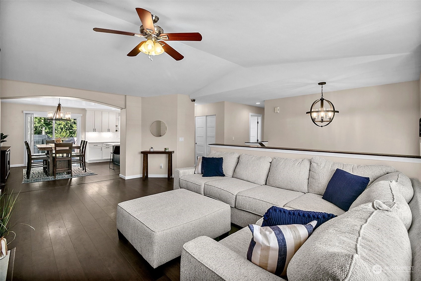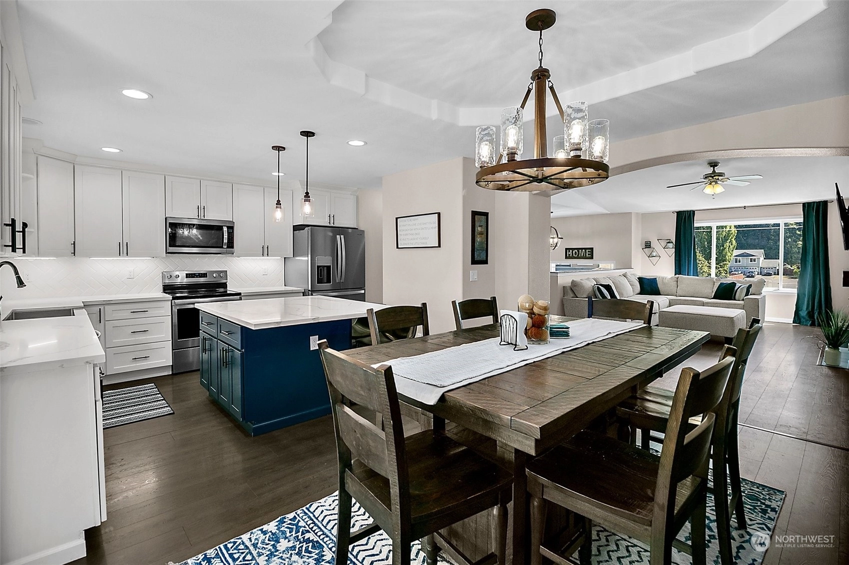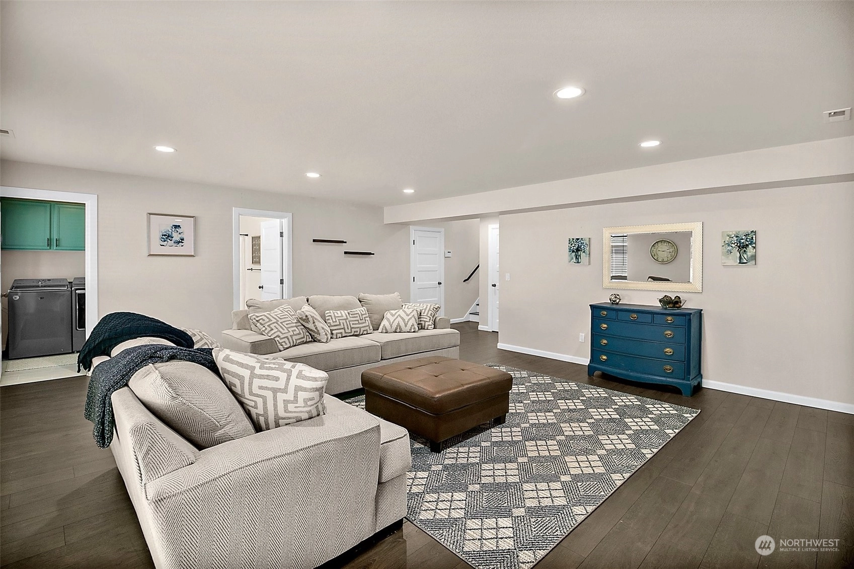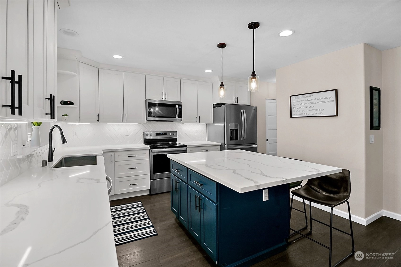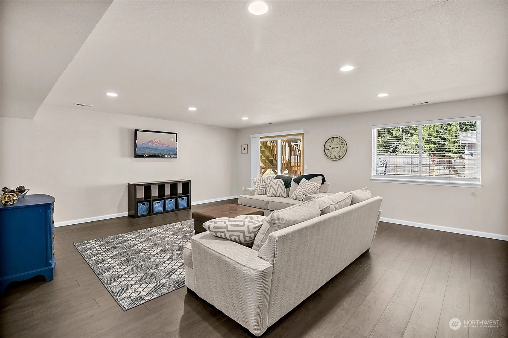 Welcome to this beautifully updated home sitting on nearly a half-acre greenbelt. Boasting 4 bed, 3 bath, and just shy of 2,600 sq ft.. This home has it all. Featuring all new cabinets, quartz countertops, custom island, fixtures, can lighting, laminate hardwood, fireplace surround, doors, trim, floor to ceiling tile in bathrooms with new vanities and fixtures, and much more. Not to mention the Heat pump with A/C was installed in 2020, along with a new furnace. Perfect for cooling down on those hot days! Outside you’ll notice newer exterior paint, a brand new deck with stairs leading down to the huge and private fully fenced back yard. This community provides privacy, while still being close to amenities and a mere 30 minutes from JBLM.