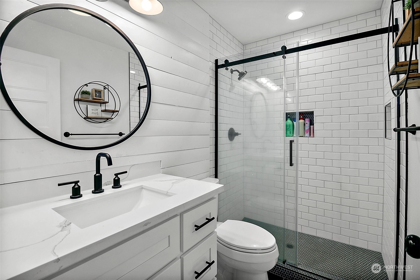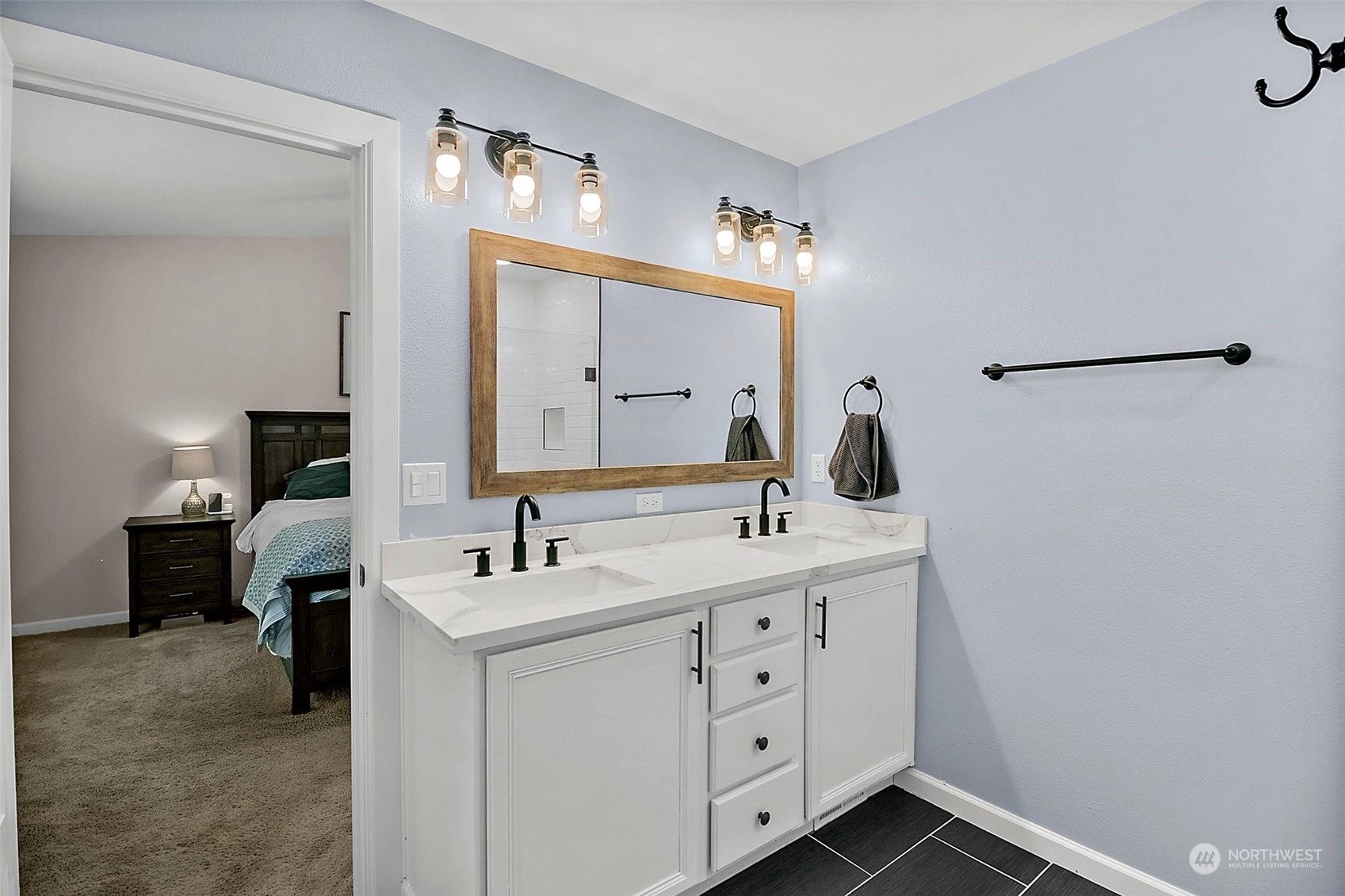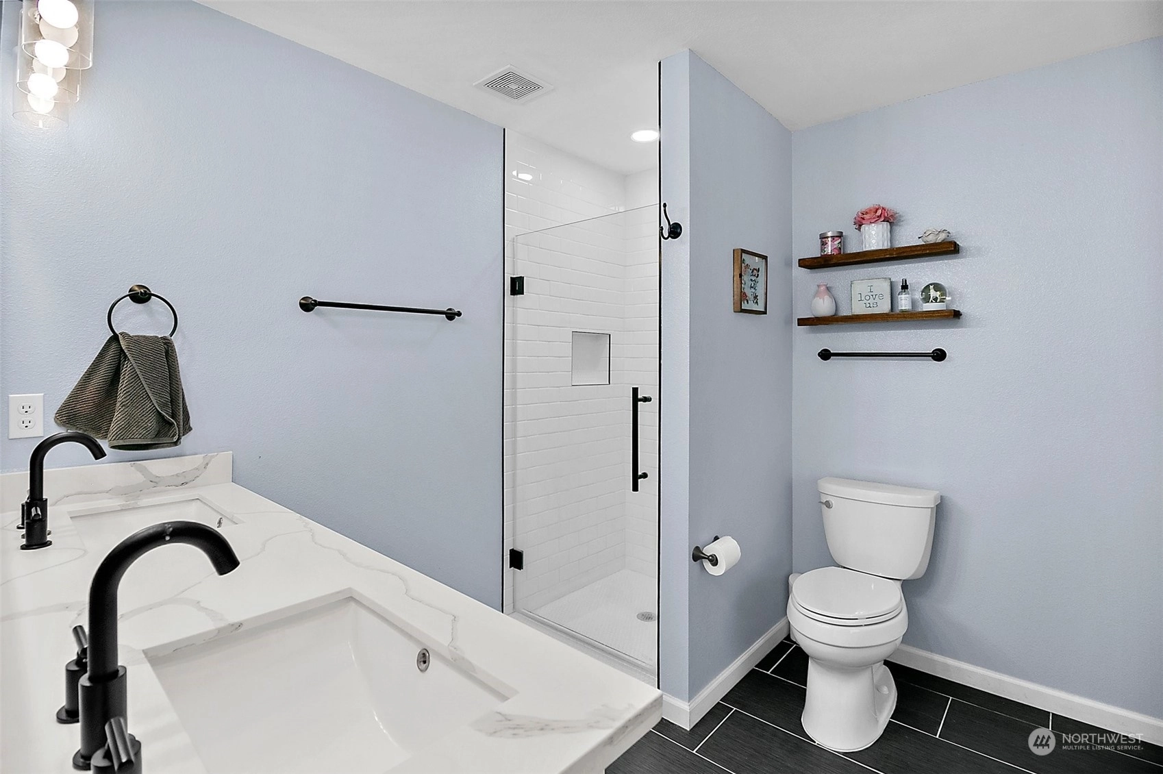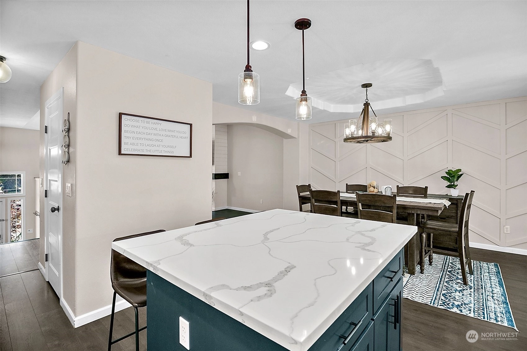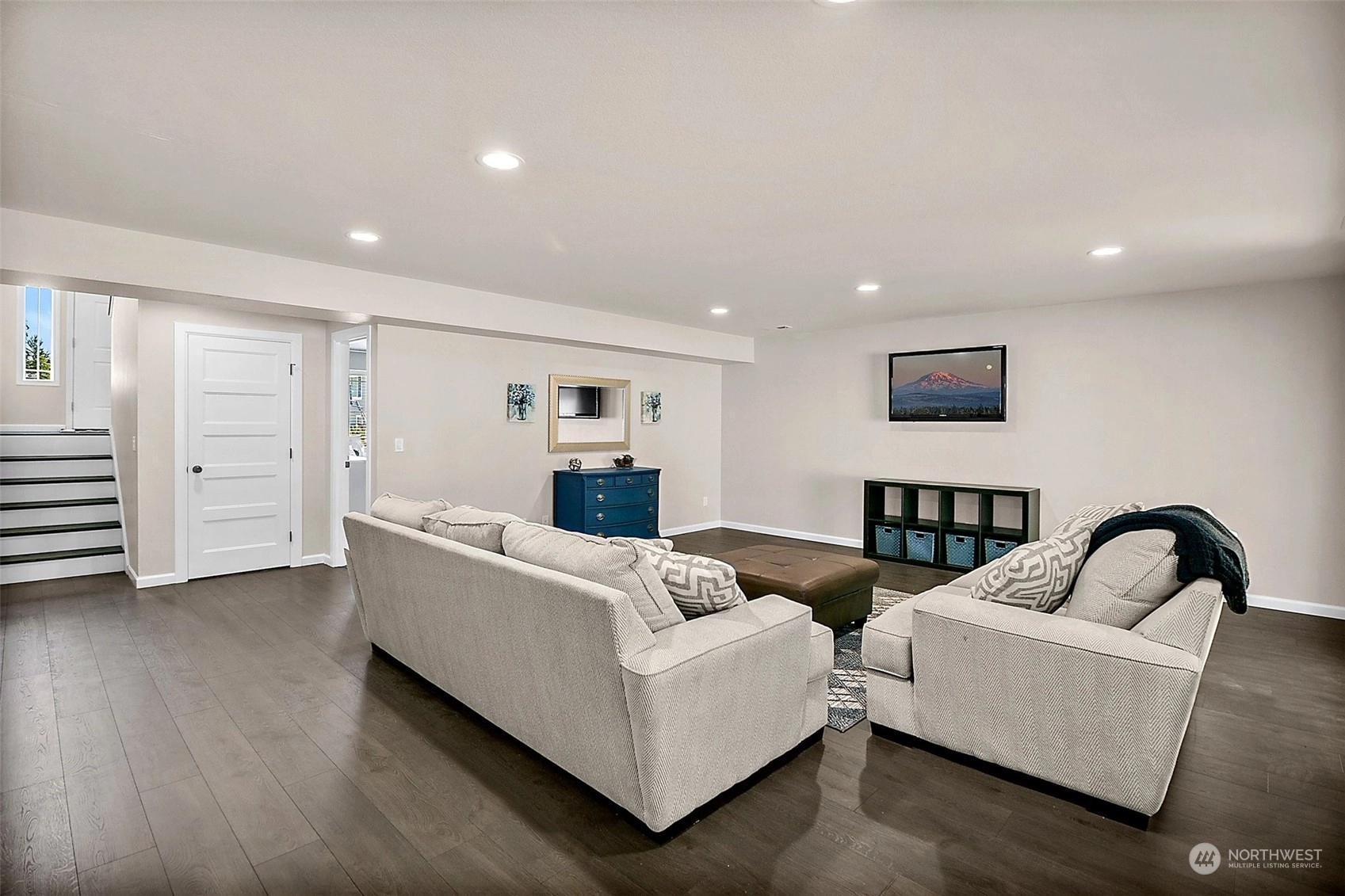Welcome to this beautifully updated home sitting on nearly a half-acre greenbelt. Boasting 4 bed, 3 bath, and just shy of 2,600 sq ft.. This home has it all. Featuring all new cabinets, quartz countertops, custom island, fixtures, can lighting, laminate hardwood, fireplace surround, doors, trim, floor to ceiling tile in bathrooms with new vanities and fixtures, and much more. Not to mention the Heat pump with A/C was installed in 2020, along with a new furnace. Perfect for cooling down on those hot days! Outside you’ll notice newer exterior paint, a brand new deck with stairs leading down to the huge and private fully fenced back yard. This community provides privacy, while still being close to amenities and a mere 30 minutes from JBLM.