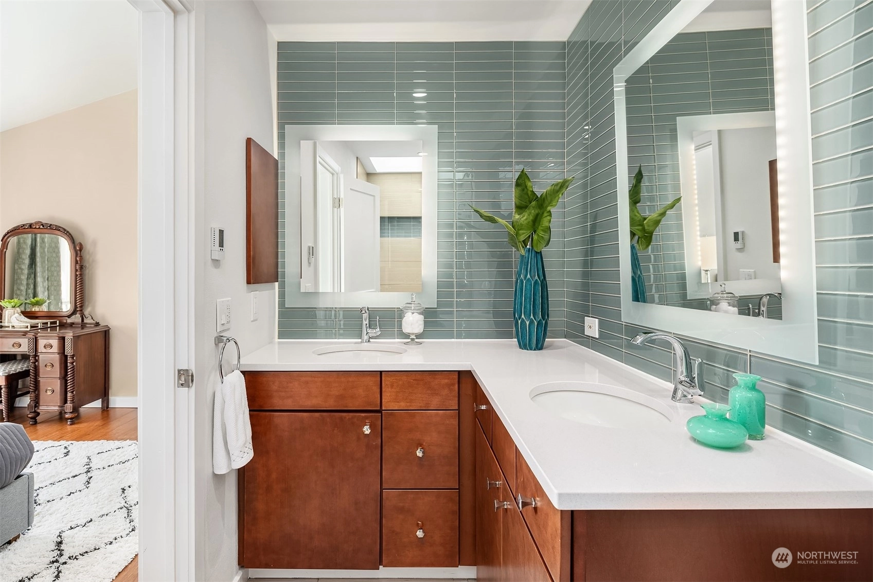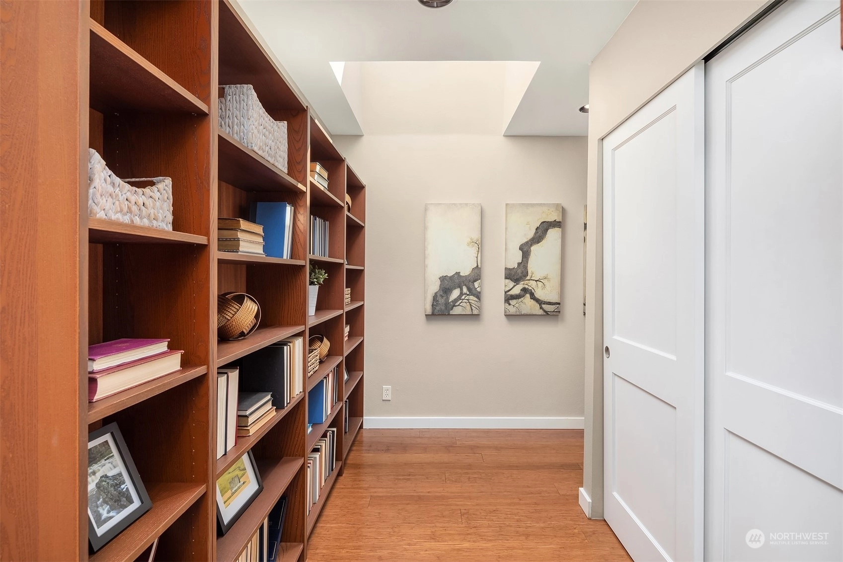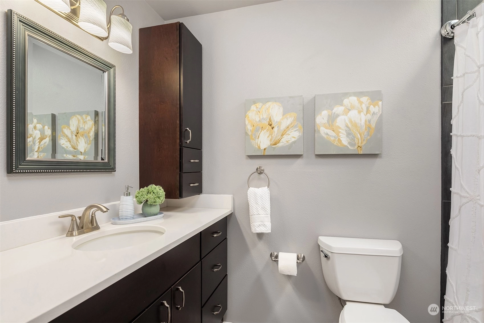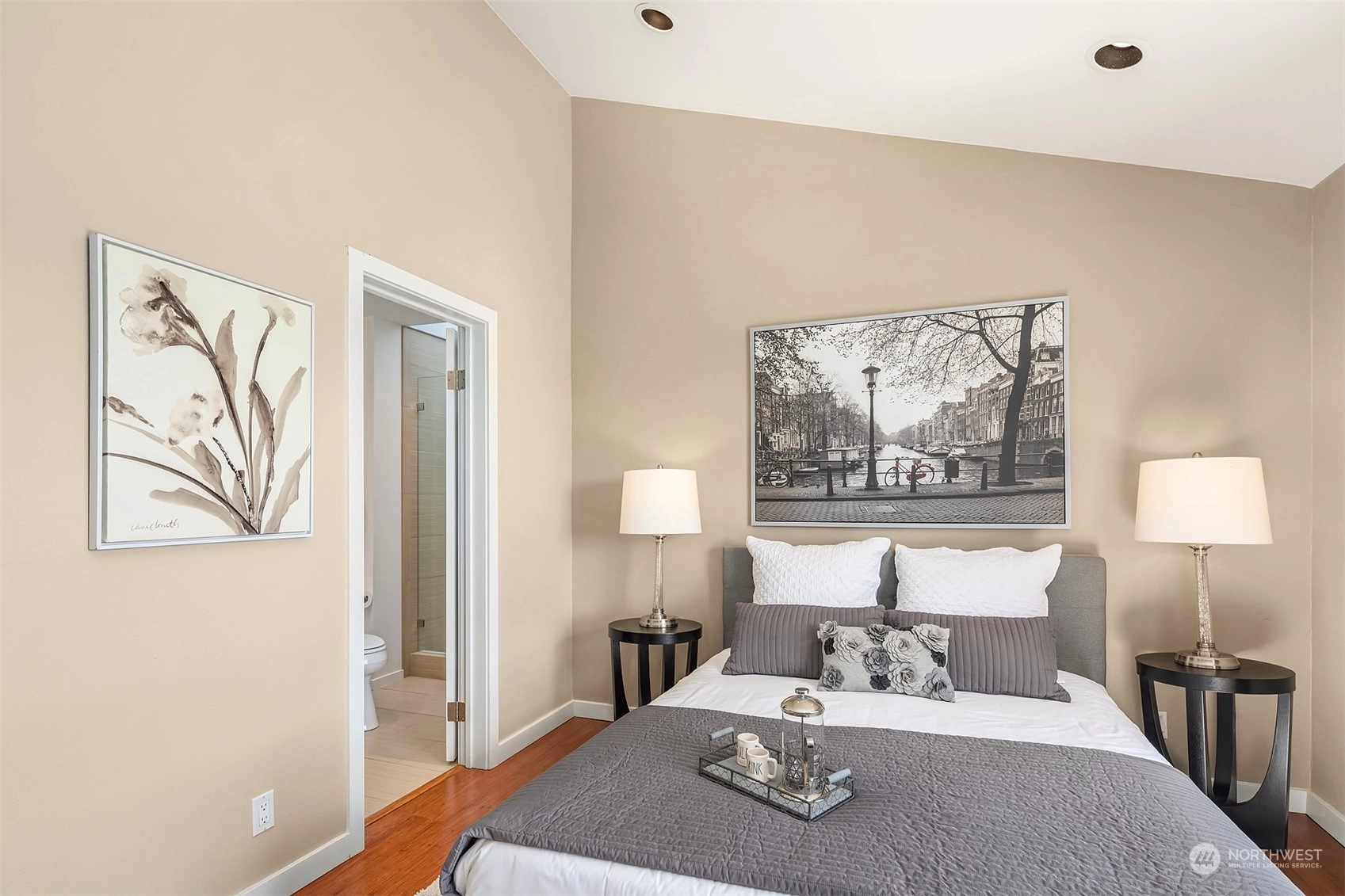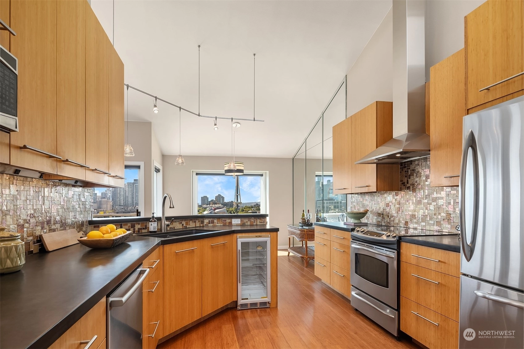 With spectacular Space Needle, city, sound & territorial views, this east slope Queen Anne home is a must see! Beautifully updated throughout, it features the perfect layout for entertaining or just evenings at home enjoying the view. This top floor corner unit is light & bright w/ vaulted ceilings, skylights & views from every window. The primary suite features double closets incl. a walk-in w/ built ins. The 2nd bedroom is currently used as a den / sitting room & offers great flexibility to enhance living / entertaining space. The secure building features a lobby entry & gated garage. Enjoy the vibrant lower Queen Anne neighborhood with restaurants & shops within easy walking distance or hop on the monorail for a quick trip to the city.