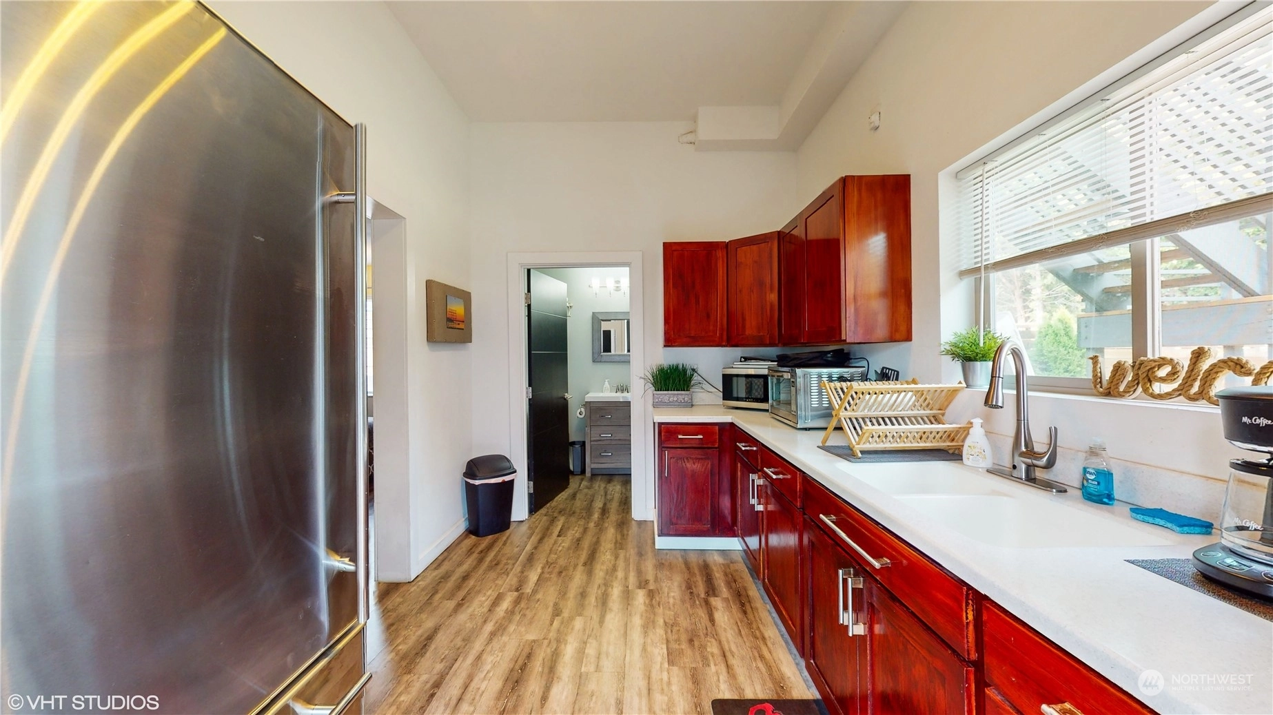 Incredible investment opportunity. Low maintenance property currently operated as 4 separate AirBnb units. Fully permitted studs-down remodel in 2016. The front house with 2bed/1.75bath on the main level and a 1bed/.75bath basement unit. The back DADU has a 1bed/1bath unit above the garage and a Studio/1bath unit on the main level. All 4 units have their own kitchen area and 3 of 4 have their own washer/dryer. Extra tall garage with additional office and washer/dryer for the housekeeper. 20+ parking spots. Current HDR zoning for 7 townhomes & further upzoning/expansion via Transit District Overlay (TDO). Lightrail station across the street. Run your business & live on site. Many other possible uses.