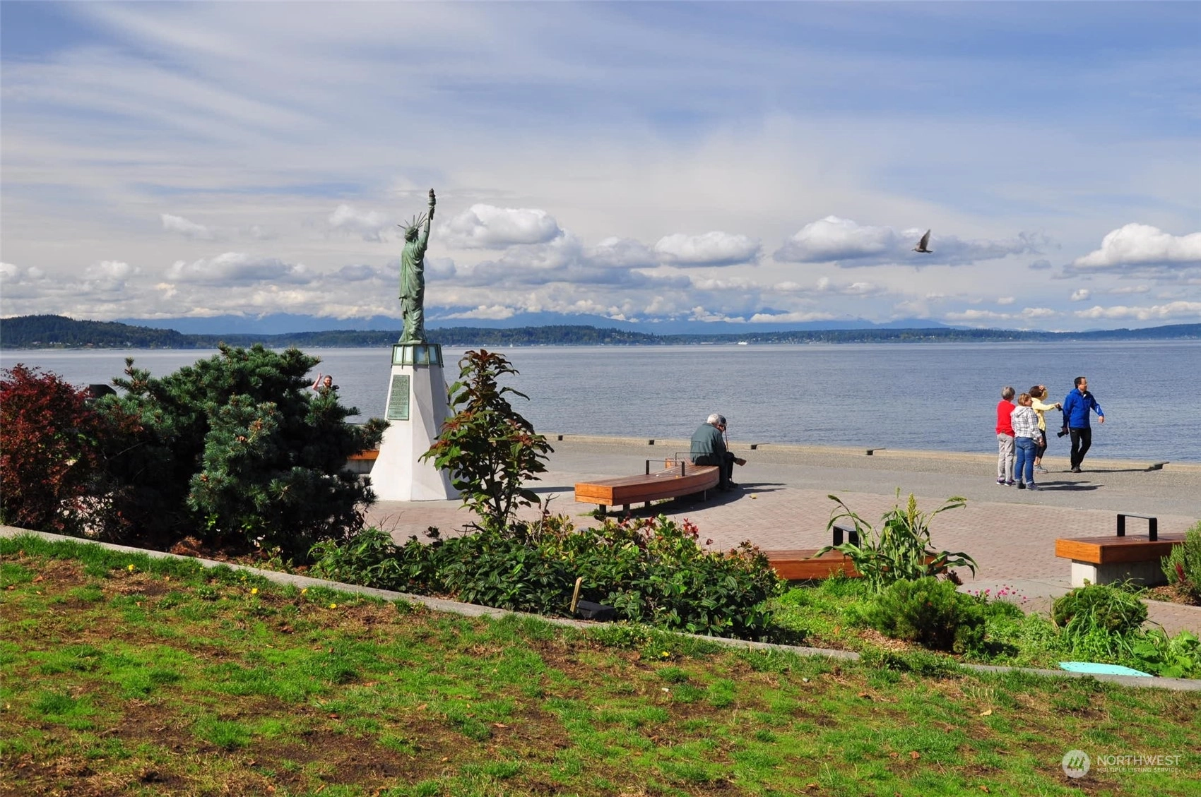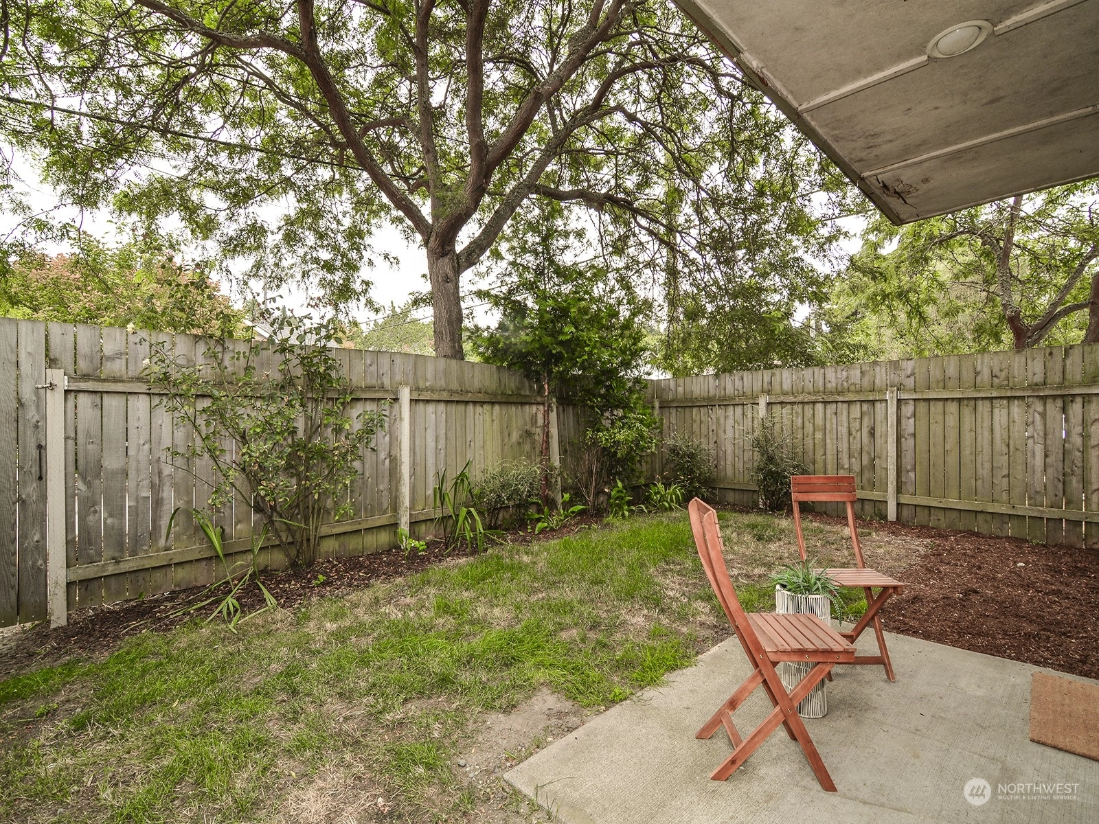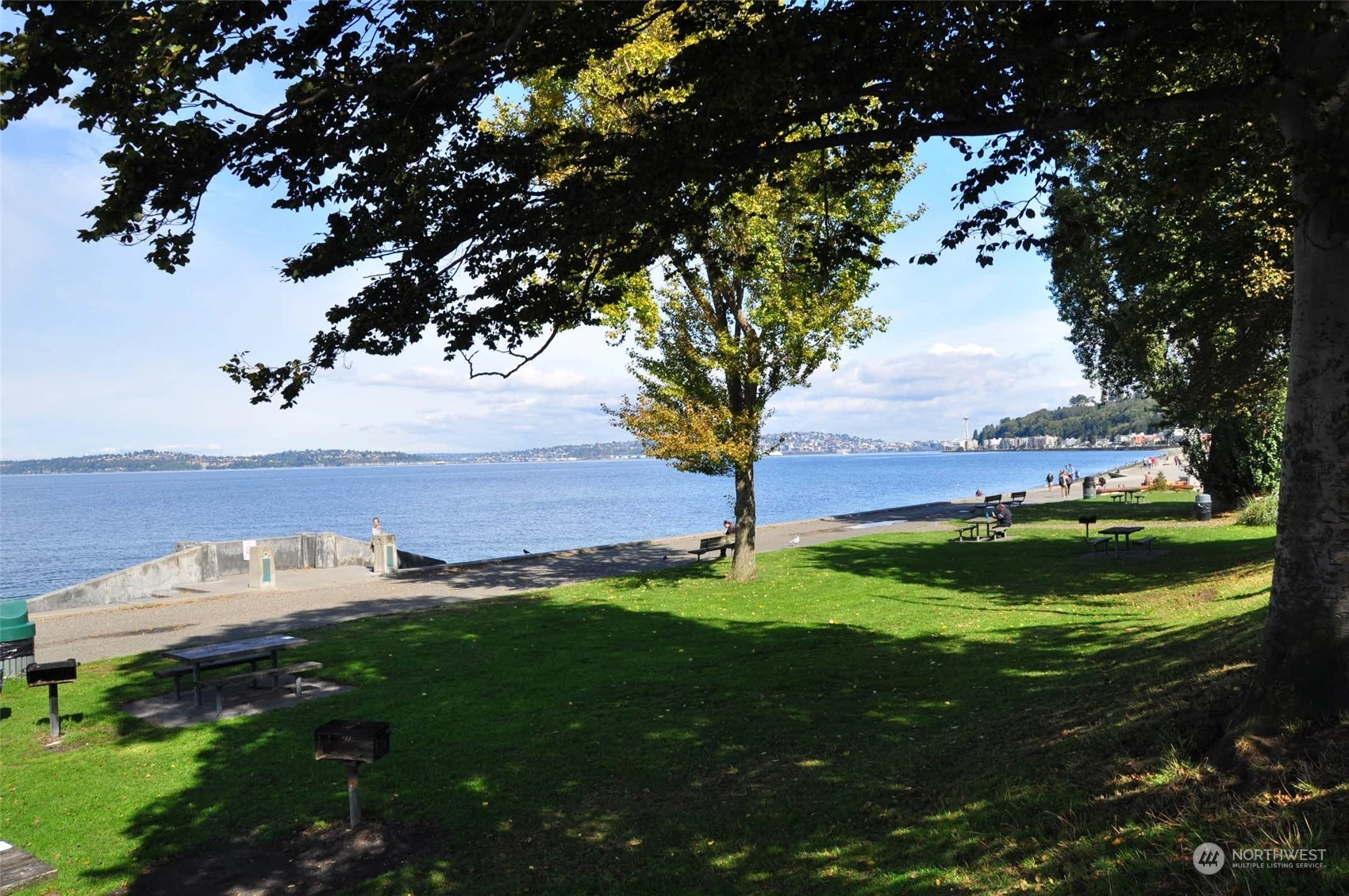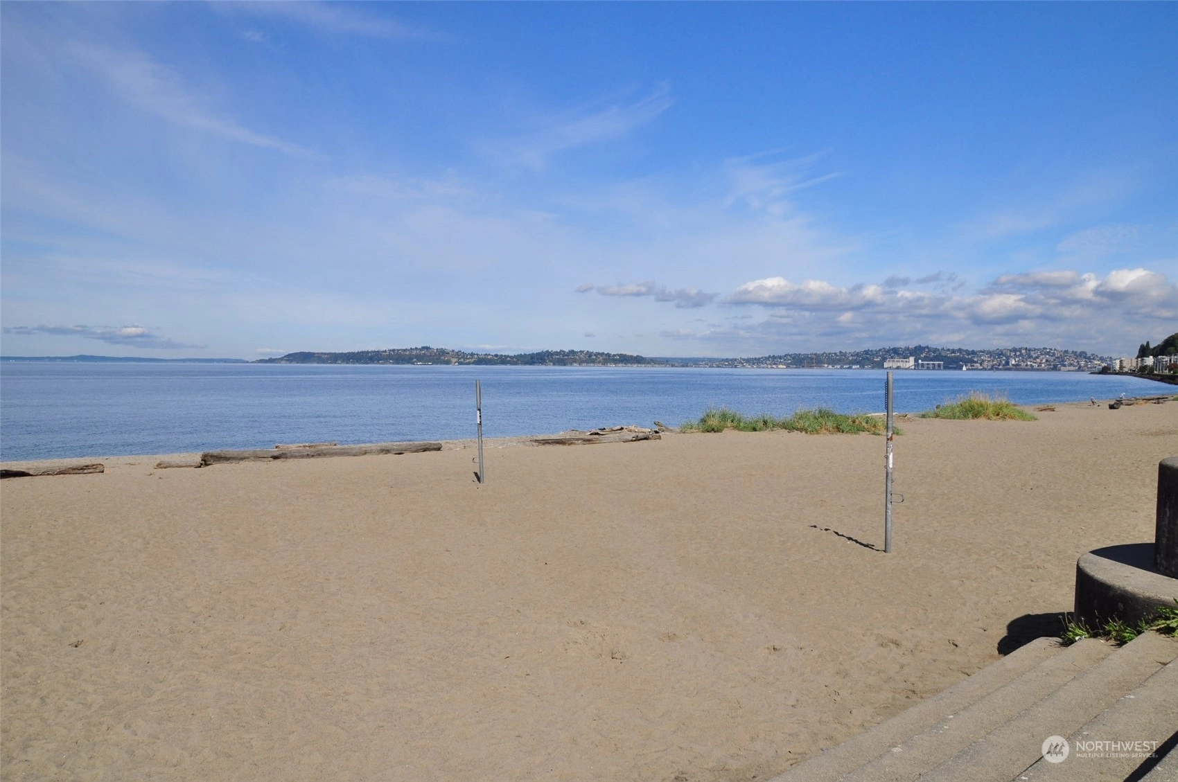 Fantastic spacious and light filled level entry condo in excellent Alki Beach location...only one block to Alki Beach and right across the street from Whale Tail Park with tennis courts and Alki Playfield. Easy stroll to all of the restaurants and shops. Rare garden court unit with large level private fenced yard! Unit was just refurbished and show beautifully..fresh paint, new carpeting, cool butcher block counters with new stainless sink. Tile faced wood burning fireplace. Spacious light fill bedroom and plenty of closet space. Stack washer and dryer staying. Secure building with lobby entrance. One uncovered parking space + storage closet. Nothing like this available on the beach!!