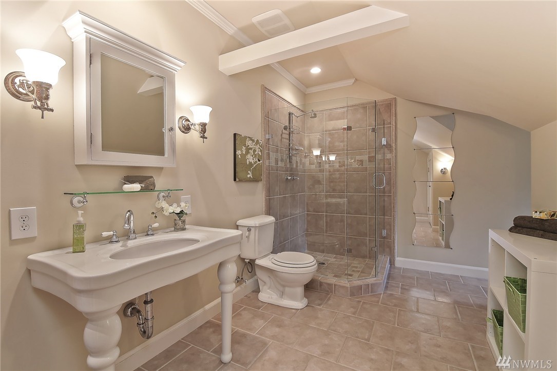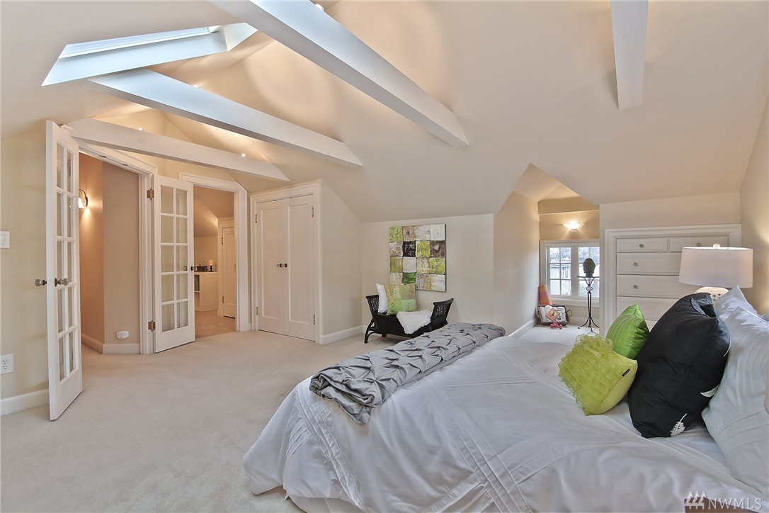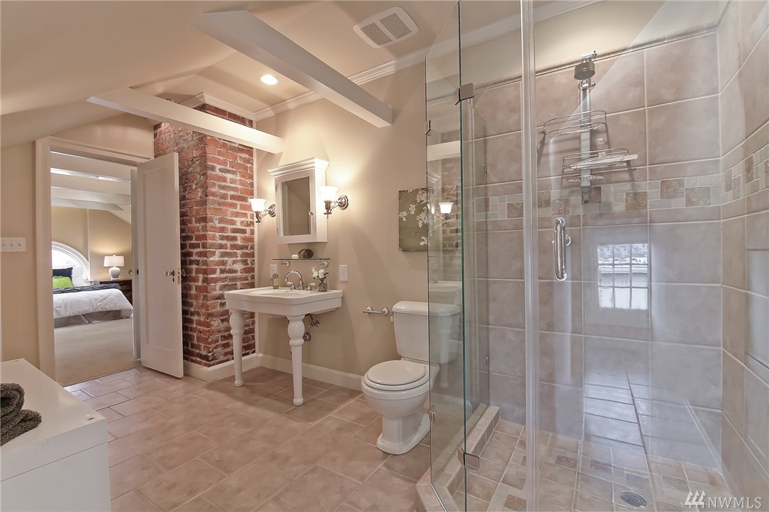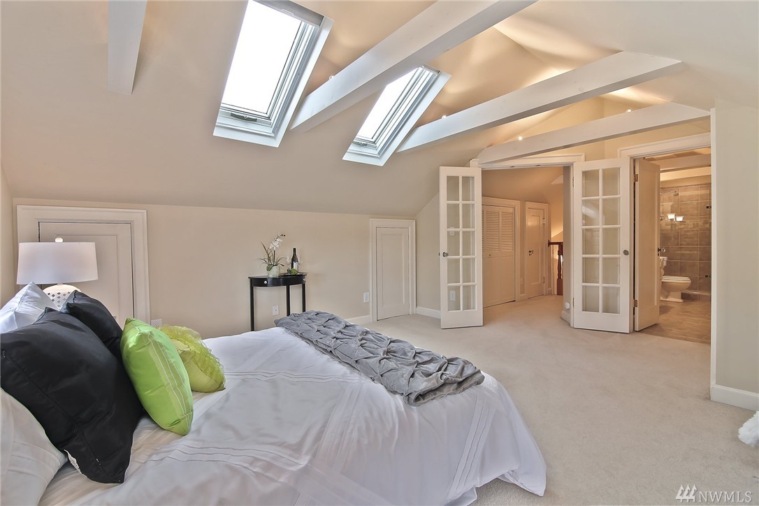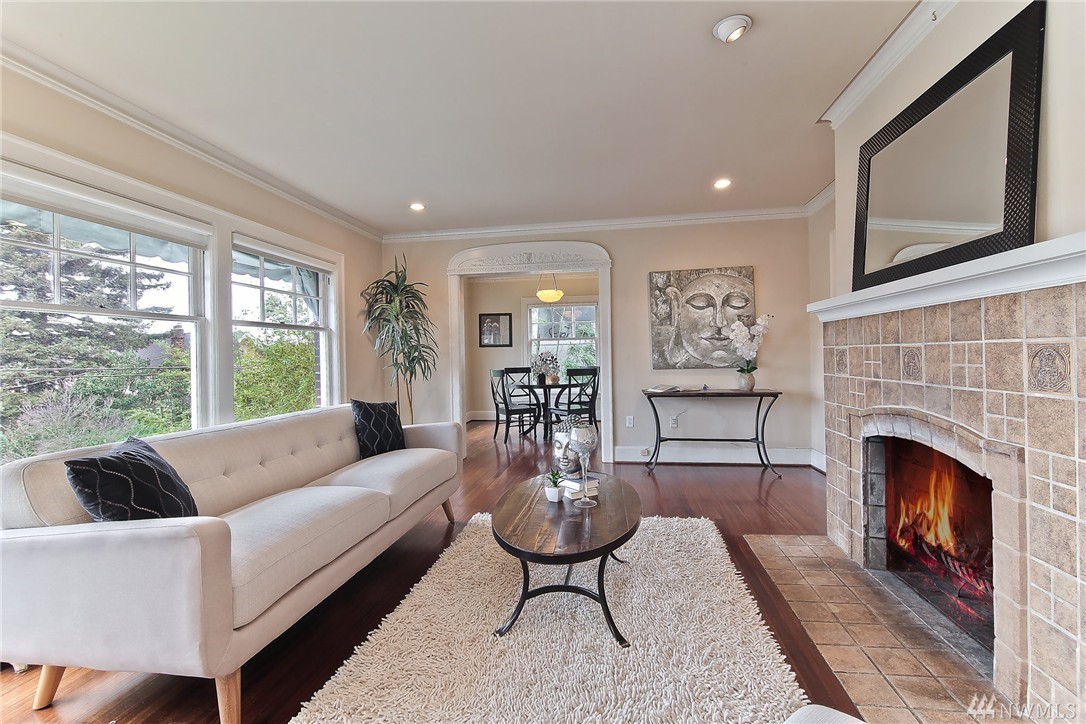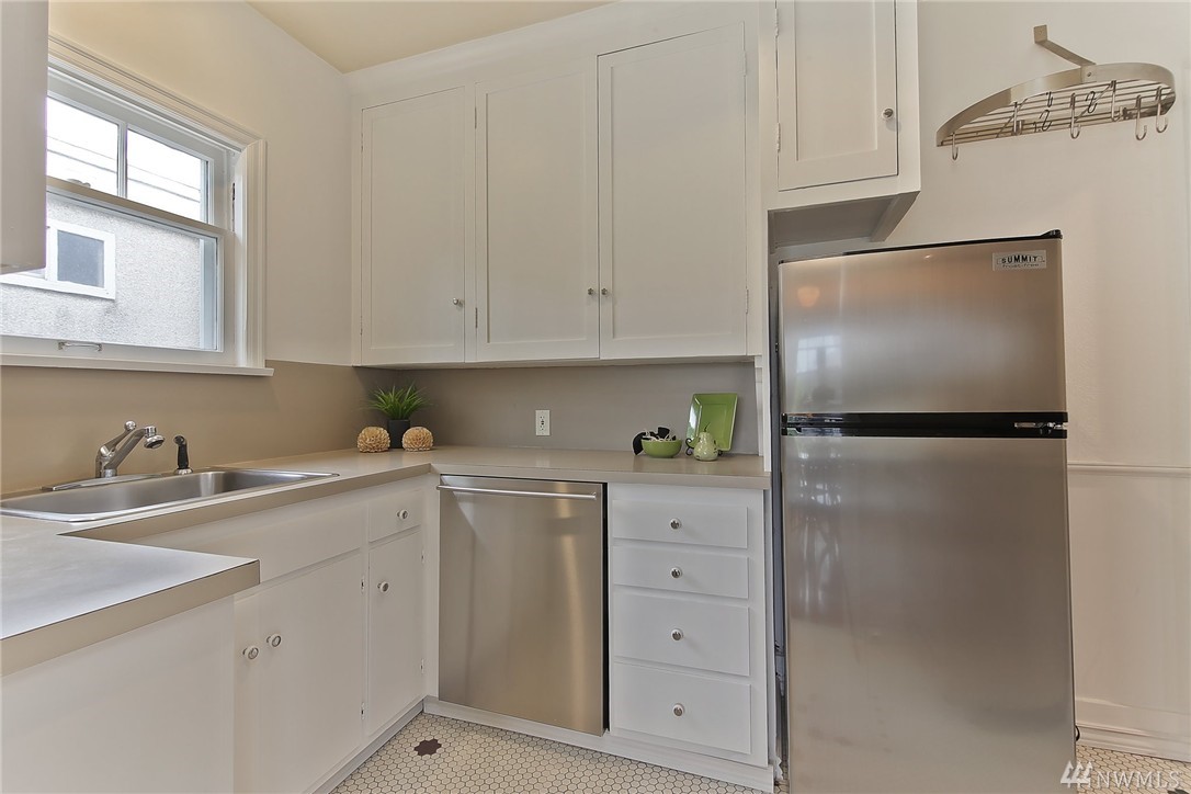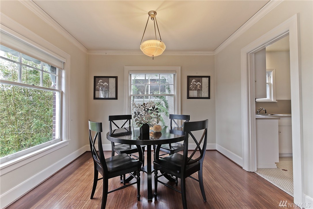 Elegant condo with charm and views. Welcome home to Mahogany hardwood floors and cozy Batchelder FP. The living room flows into dining room. Kitchen offers SS appliance and VIKING stove. Large bedroom on main, excellent storage and full bathroom. Open foyer/home office leads to door that opens to gated courtyard w/ BBQ. Upstairs you will love the light filled master suite with vaulted ceilings, abundant storage, skylights, W/D, master bath w/ tiled shower. Walk to SLU, cafes, bars, bus and lake.