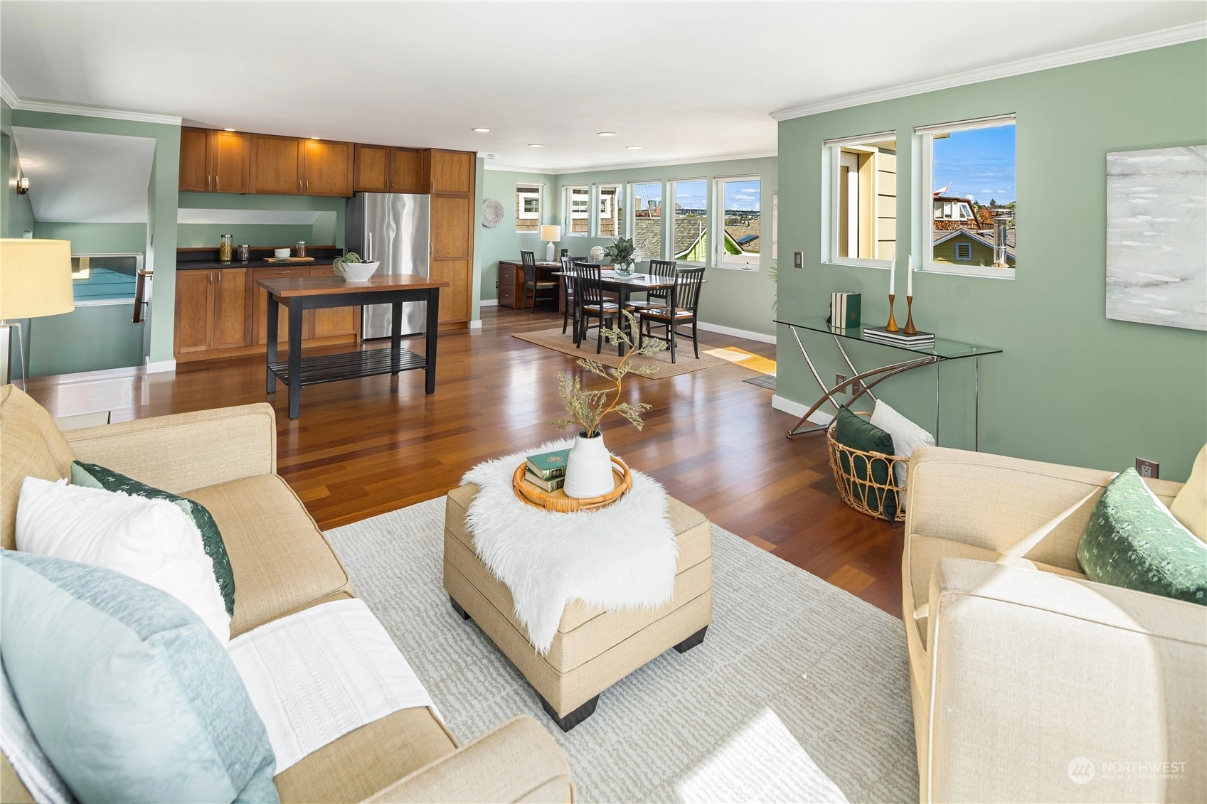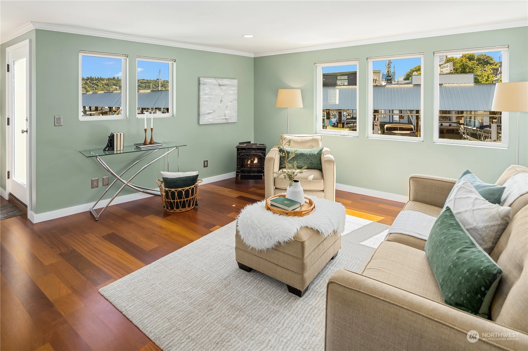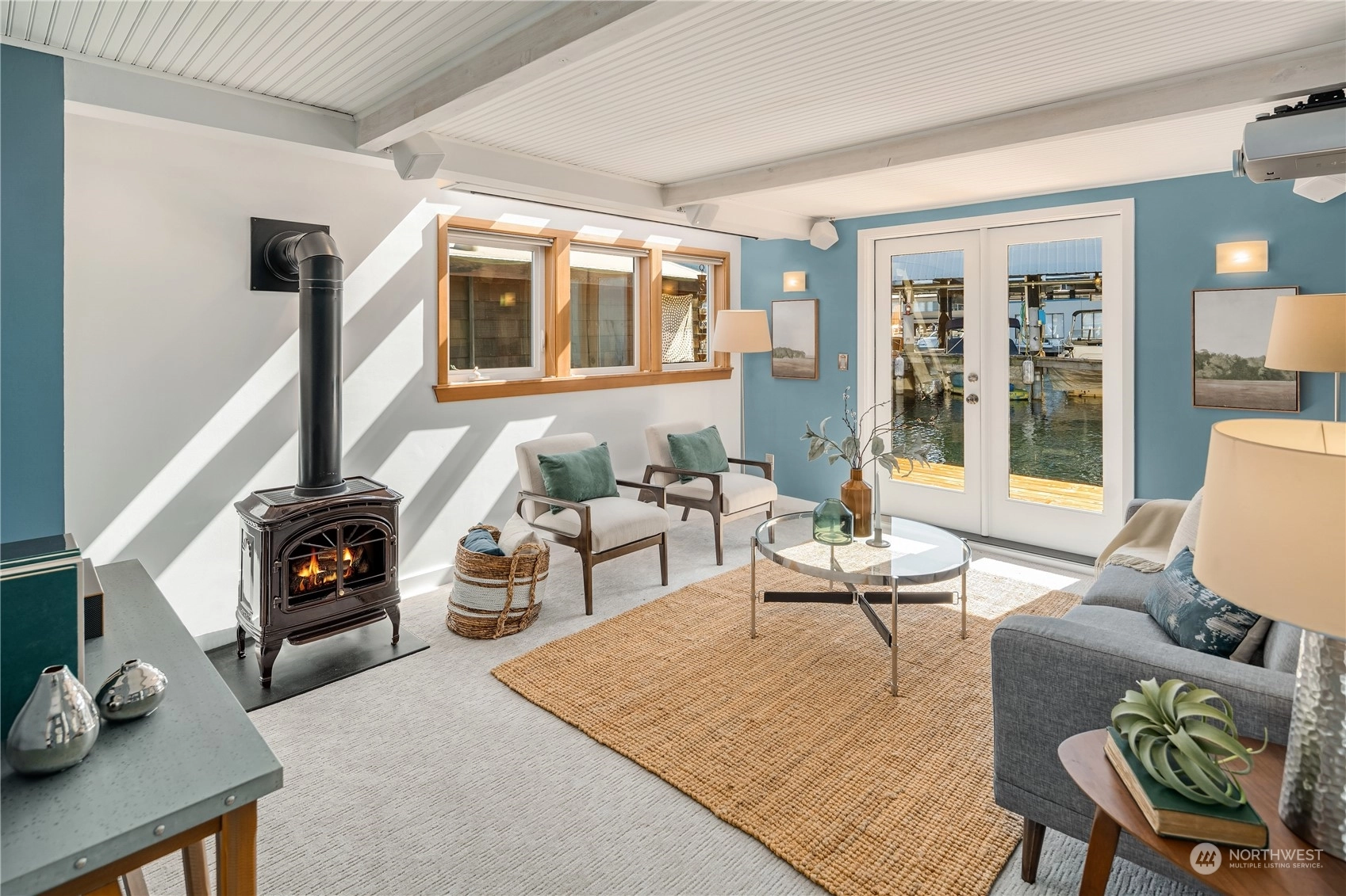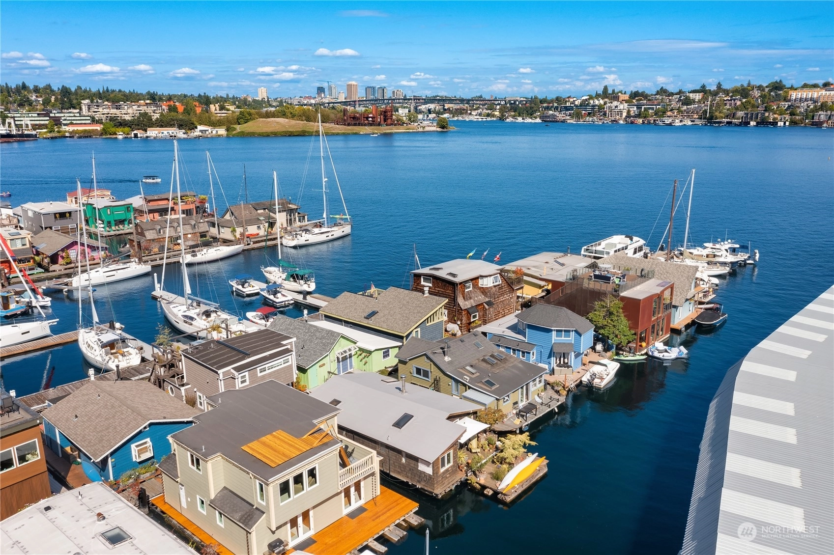 Experience uncompromised Lake Union living on this sun-drenched, South-facing floating home nestled in a serene channel. Exceptional value ($1,088/SqFt) on this maintained like new home rebuilt in '06 (inspections avail). Spacious 2-bed layout with elegant wood finishes and an open-concept upper level boasting stunning Lake Union/Gasworks Park views. Enjoy easy boat mooring on the 30' waterside deck, while the rooftop platform offers 360* views (pre-permitted plans for a full rooftop deck avail). Co-op dock amenities include an 8-slip marina, gated entry, under-dock utilities, and unmatched proximity to Downtown. You'll love Westlake, Seattle's ultimate boating neighborhood. Ample city parking with 5 passes. Seller Financing available.
