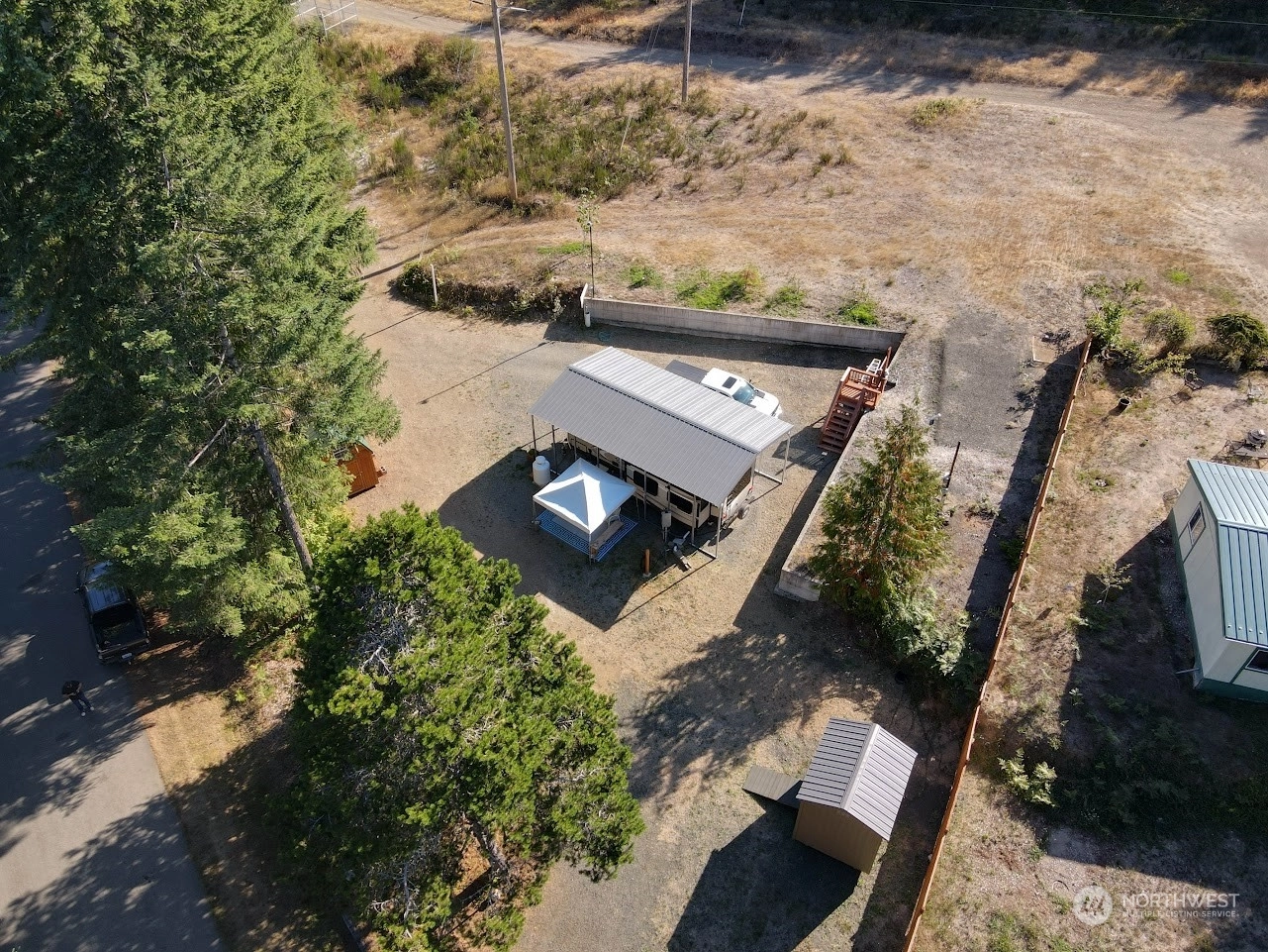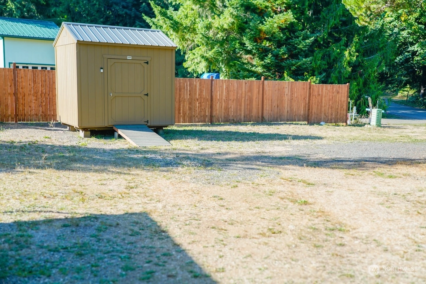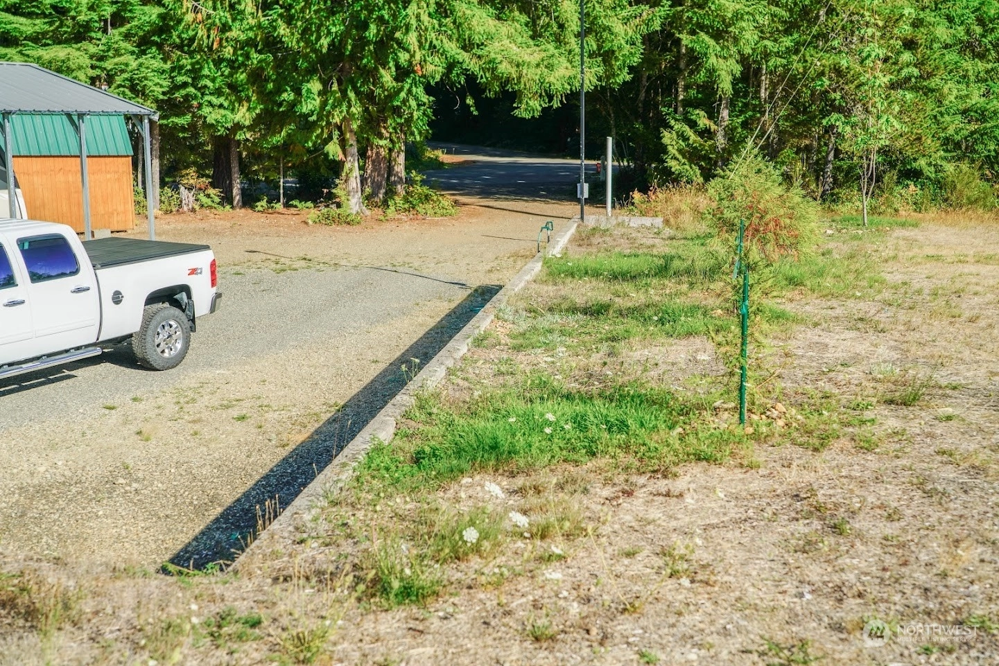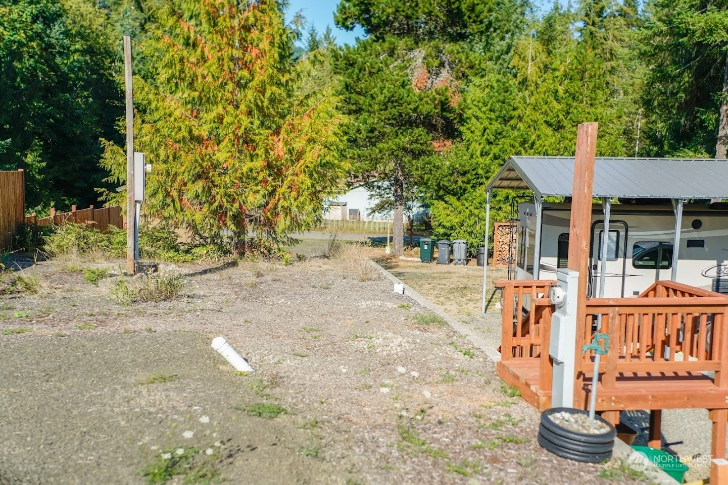 On a quiet street in Division 18, this lot has water, power and 2 bd septic. It is level, but with tiered layout that includes 2 full RV hookups, one on each portion of this plug and play lot. Included is a 32x18 ft steel carport, nice outbuilding and wood storage. Just a short distance to private community access to Lake Cushman, several parks and nearby hiking and recreational activities.