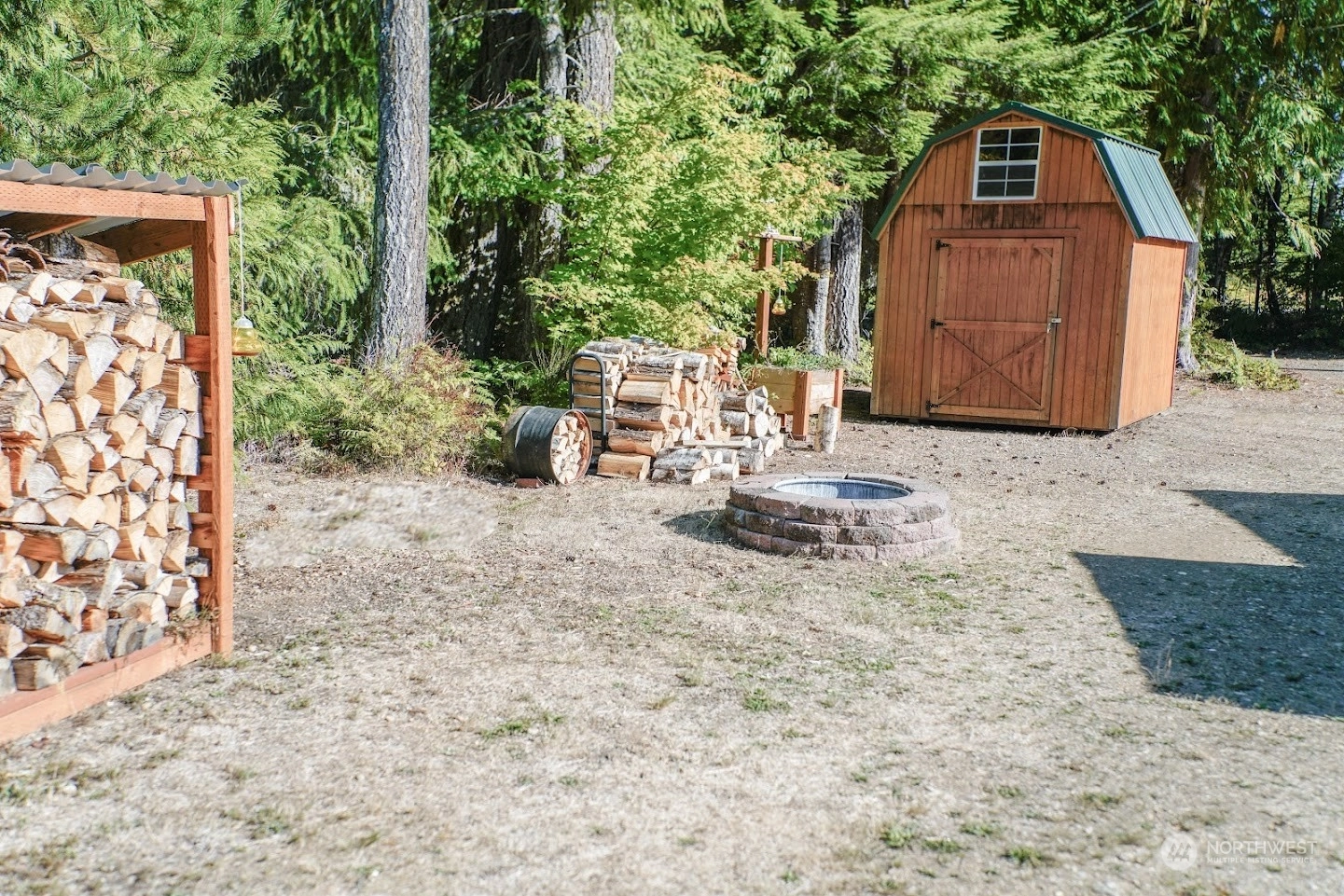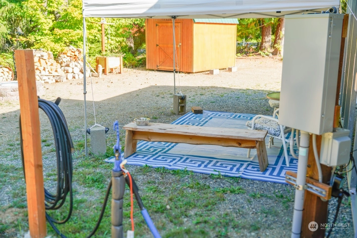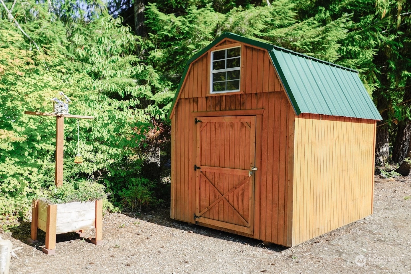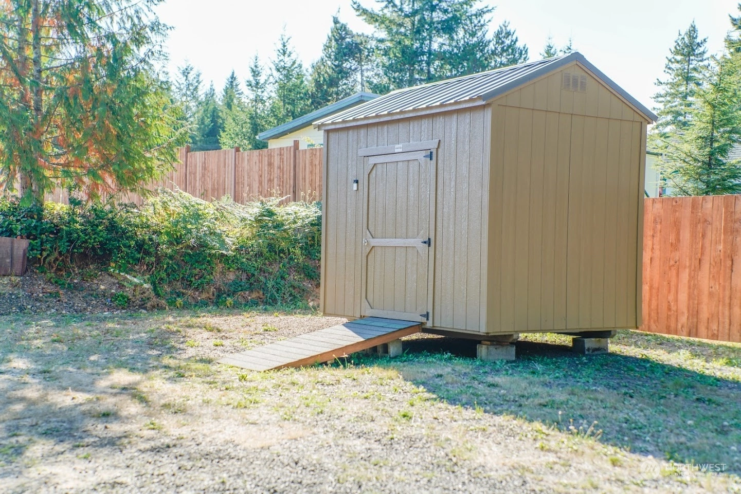 On a quiet street in Division 18, this lot has water, power and 2 bd septic. It is level, but with tiered layout that includes 2 full RV hookups, one on each portion of this plug and play lot. Included is a 32x18 ft steel carport, nice outbuilding and wood storage. Just a short distance to private community access to Lake Cushman, several parks and nearby hiking and recreational activities.