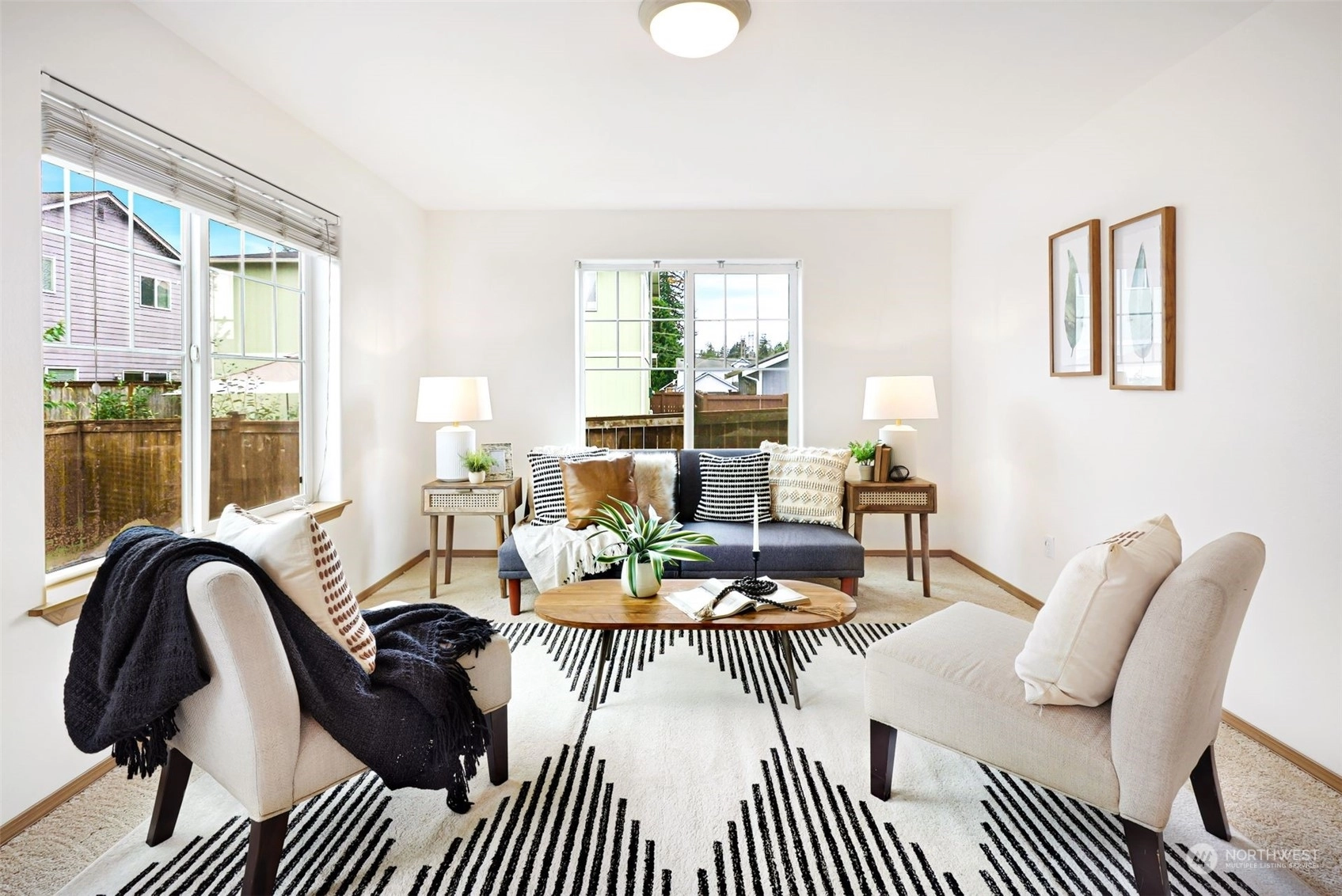Situated in a quiet, centrally-located neighborhood in the heart of Lake Stevens, this beautiful home awaits. You'll love the easy living floor plan, fresh interior paint, & new carpet throughout. The kitchen boasts intentional design choices to enhance your entertaining such as SS appliances, an eat-in breakfast nook, & more. Cozy up in either of the two spacious living areas. Three bedrooms await upstairs, including the primary suite, which boasts cathedral ceilings, a large layout & walk-in closet. Entertain on the perfectly sized patio in the backyard. This home invites you to experience unrivaled convenience–it's within the sought-after Lake Stevens School District & moments from outdoor recreation, highways, & local eateries.