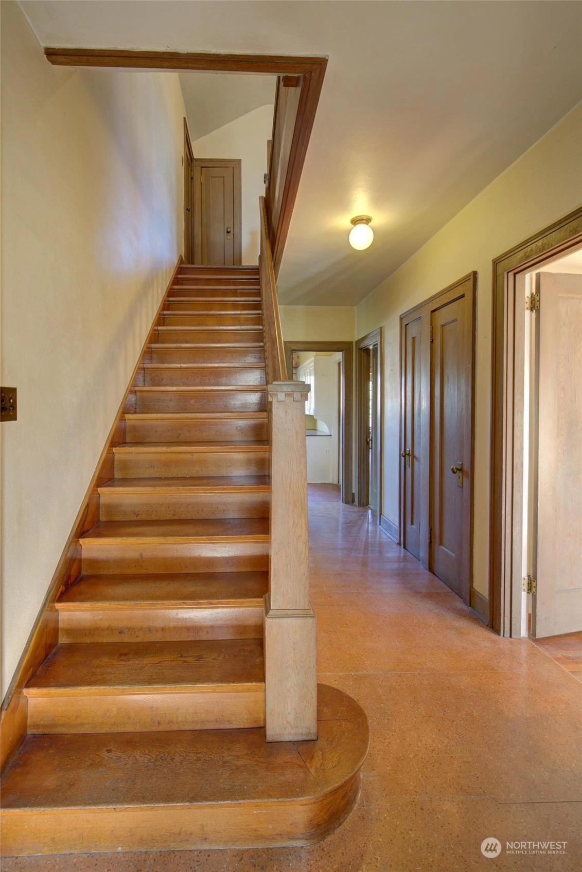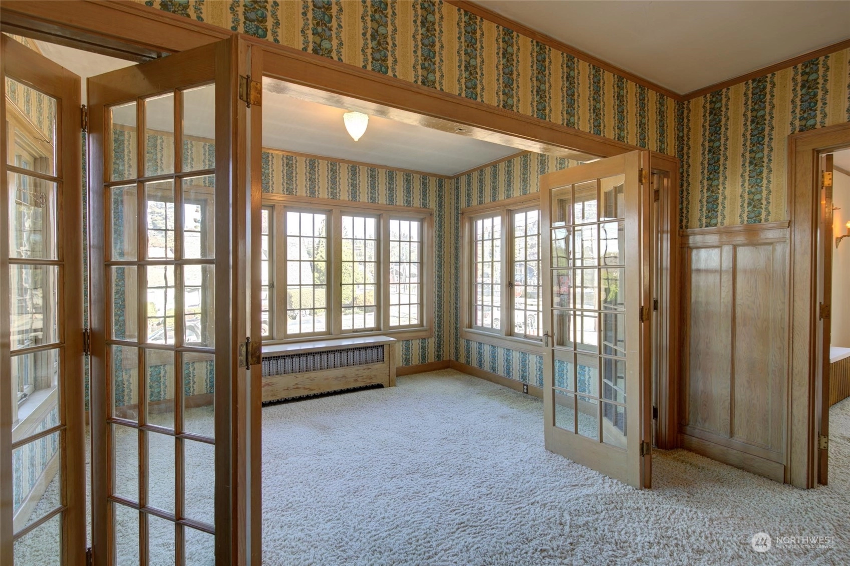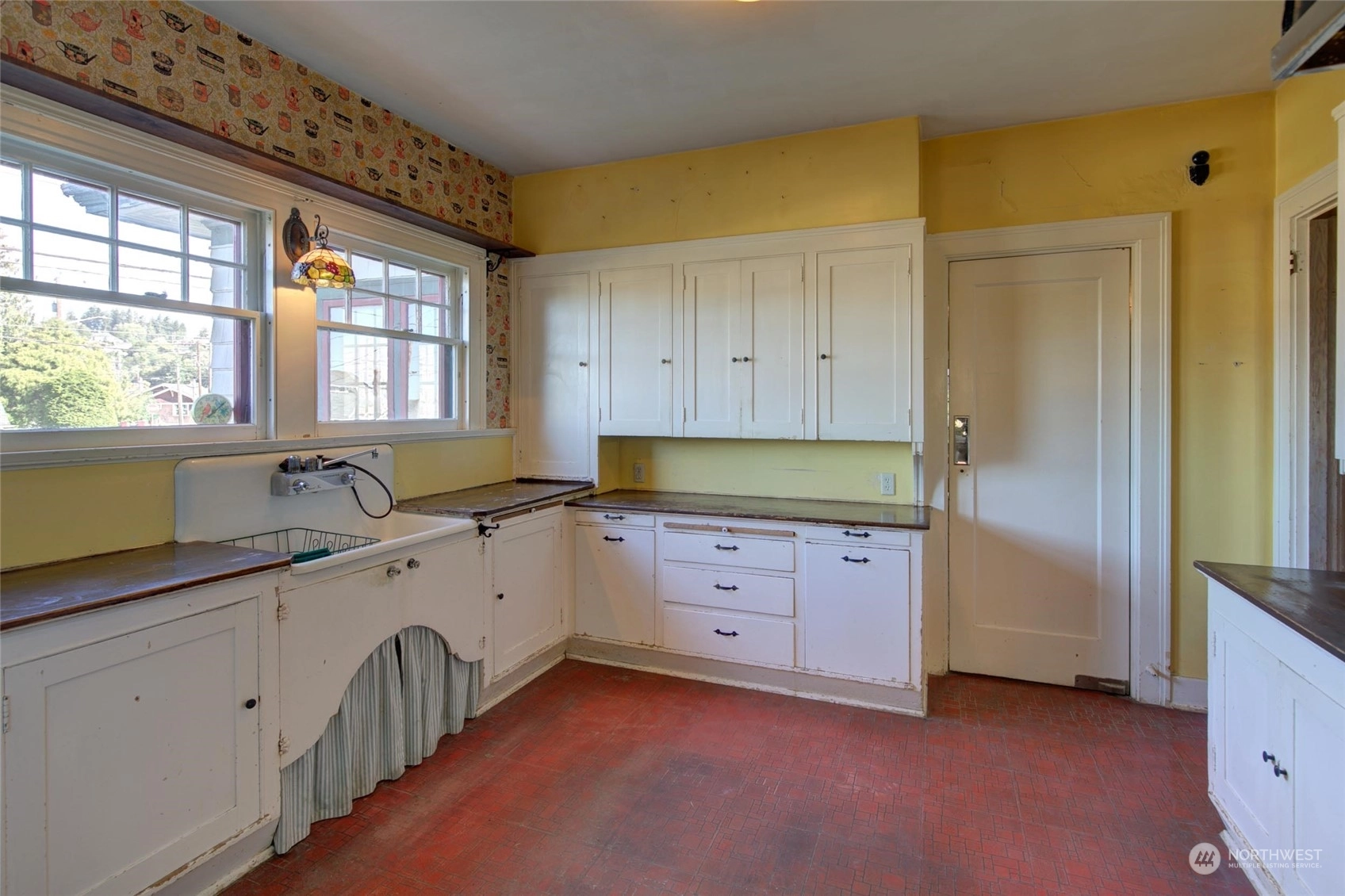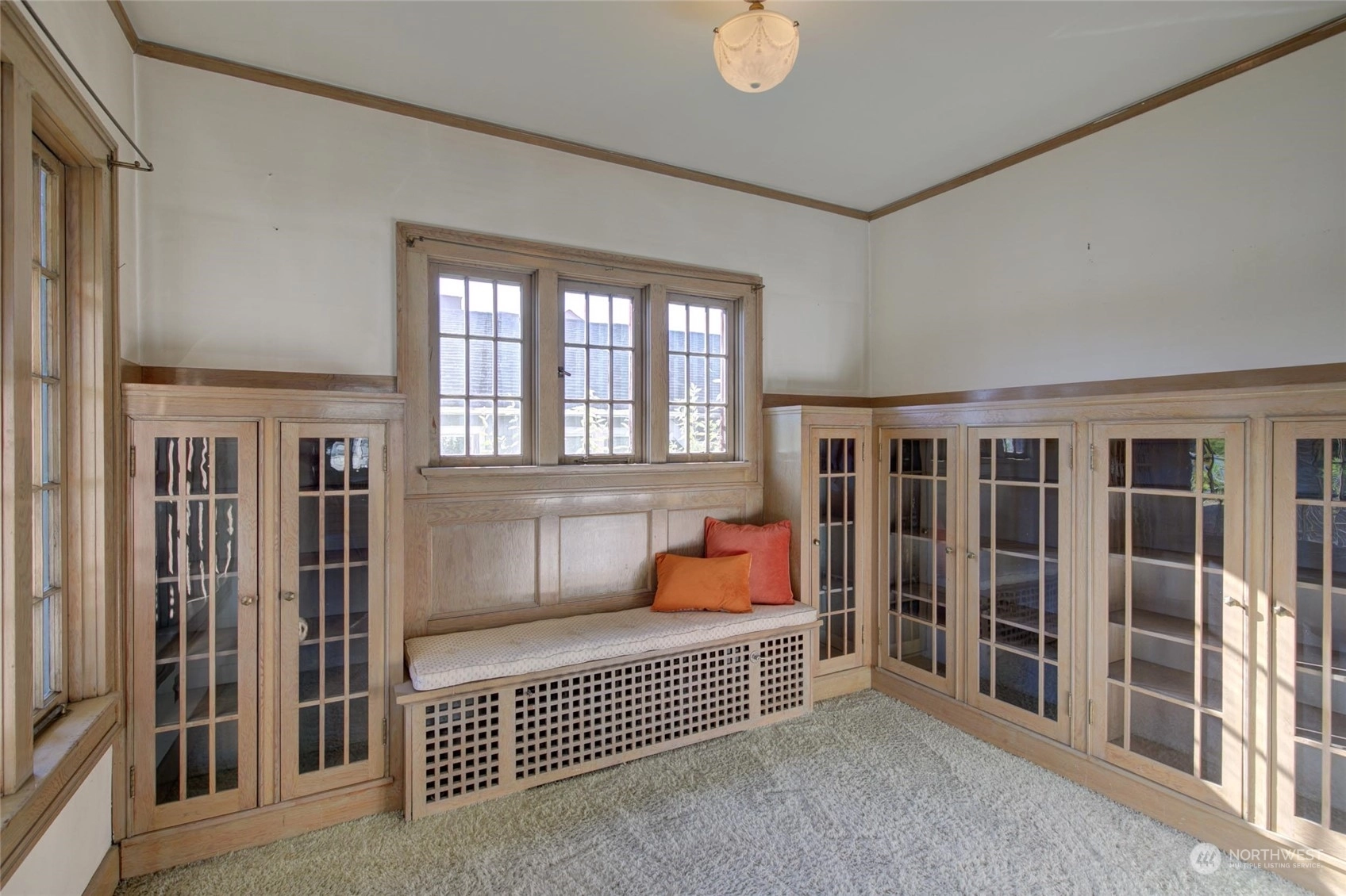 Mid Century, Arts & Crafts, Cottage Style, 4 bedrooms, 2 full baths, 2700 finished square foot home in Hoquiam. Corner over-sized lot. Light stained trim work throughout the home. Built-in cabinets in the front office, living room & dining room. Also, bench seats. Large walk-in attic that wraps around between the two bedrooms. Another walk-in attic on opposite side of the upper level. Many linen closets. Beautiful French-Doors. A sunroom opens off the already spacious dining room. Solid wood doors. Tall ceilings. Full unfinished basement. Quaint kitchen with built-in nook. Newer shake roof. Quite an amazing 1920 vintage home.