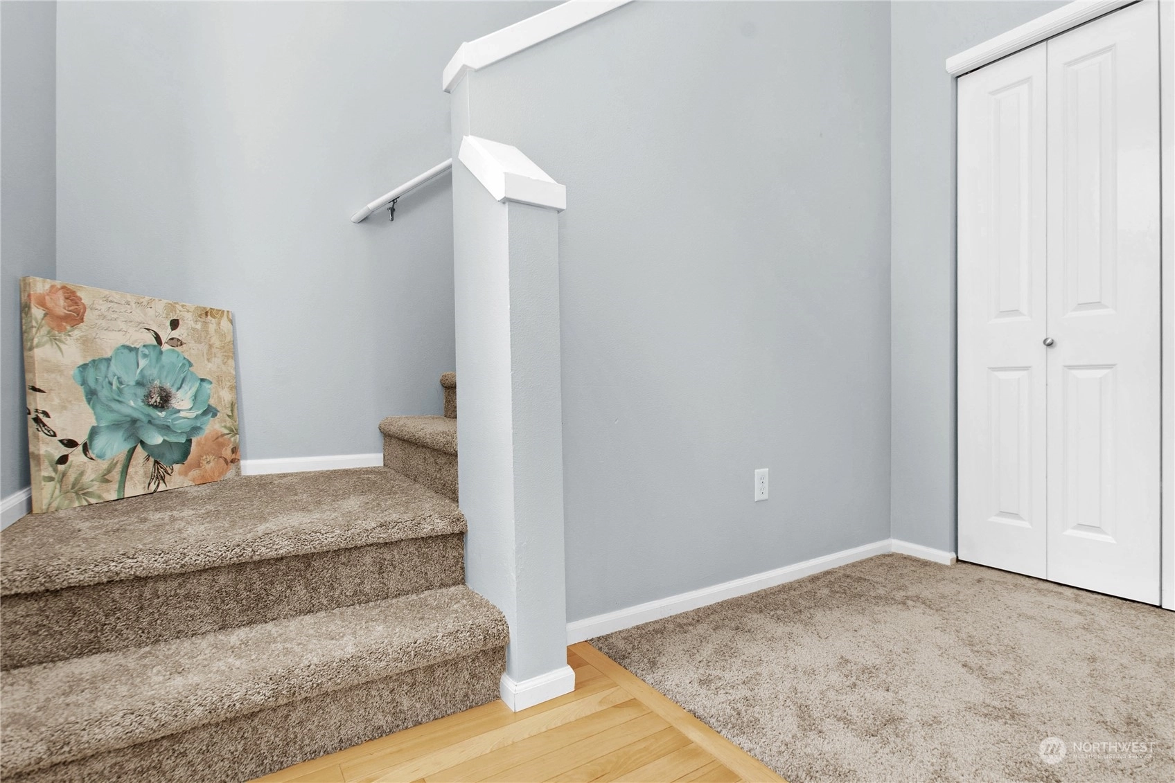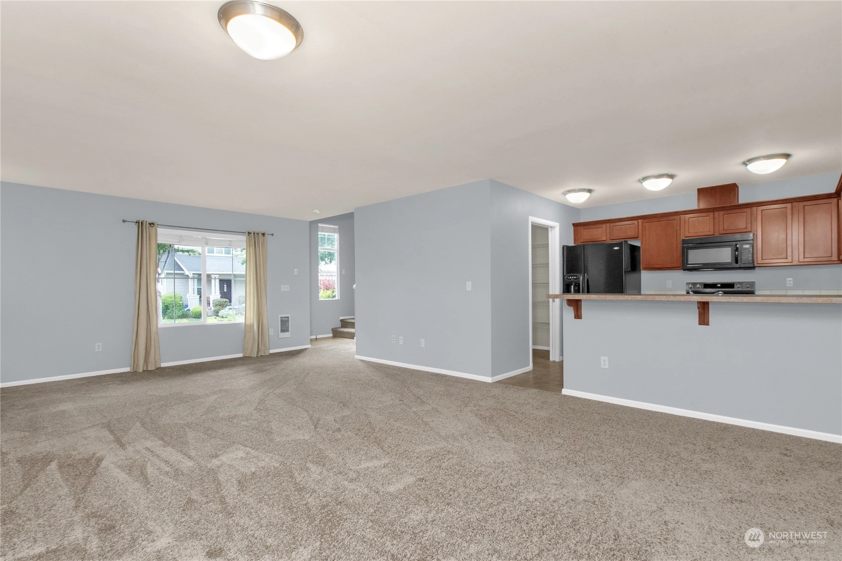 Come see this inviting 2 bed 1.75 bath home in the Horizon Pointe neighborhood! This lovely two story home features a primary suite with plenty of natural morning light, its own bathroom, and a walk in closet! Downstairs you will find an open living room/kitchen area, as well as a conveniently located utility room/pantry. All appliances are included, not to mention the brand new carpet on both floors! The fully fenced area with a patio, covered front porch, and deep single car garage (plus off street parking) are the great finishing touches ready to welcome you home. Close to businesses, schools, restaurants, and more! Not to mention a quick commute to JBLM!