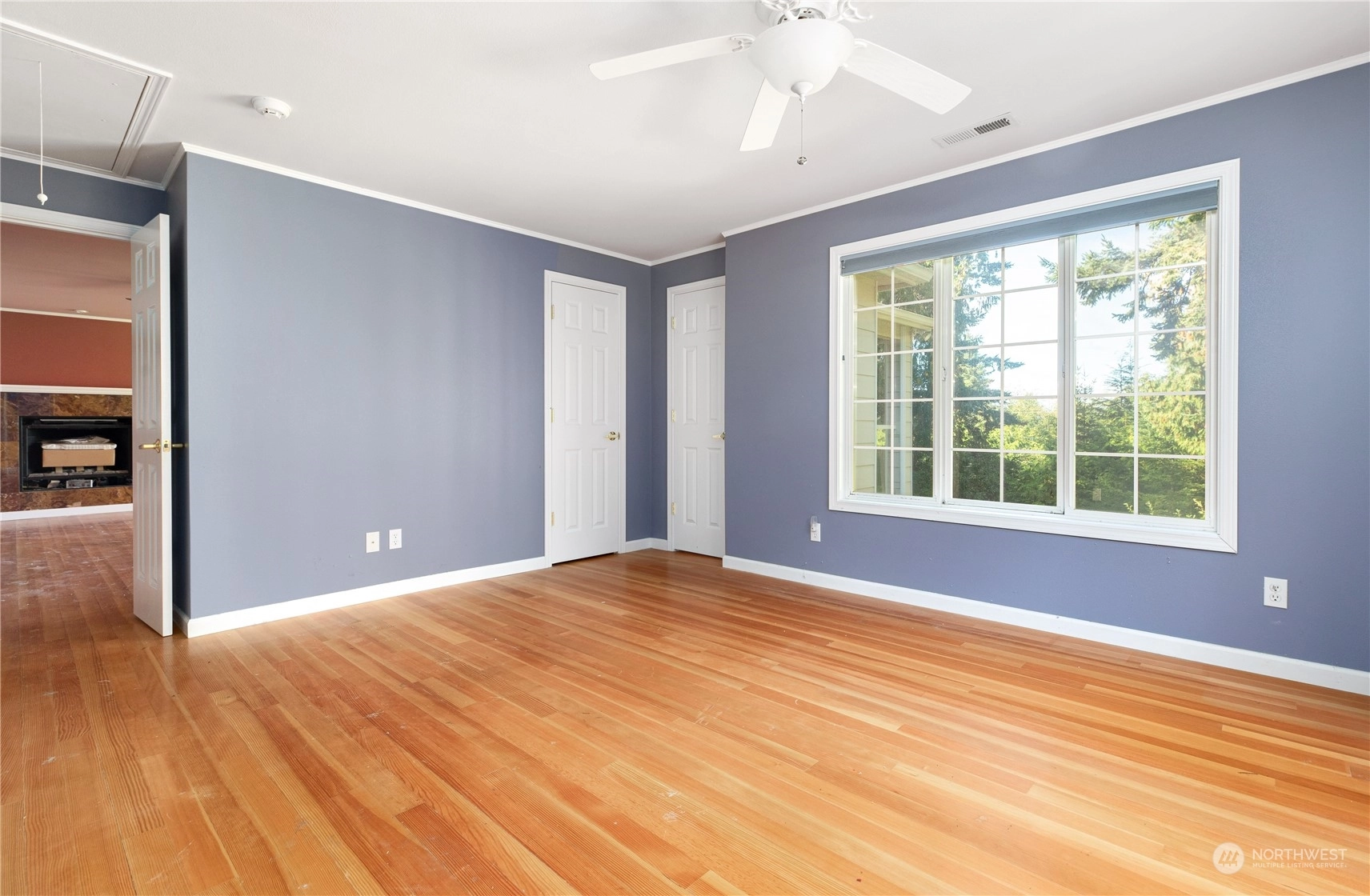 Hardwood Laminate Second Primary Bedroom Bath Off Primary Ceiling Fan(s) Double Pane/Storm Window Dining Room Fireplace (Primary Bedroom) French Doors Jetted Tub Sprinkler System Walk-In Closet(s) Walk-In Pantry Wired for Generator Fireplace Water Heater