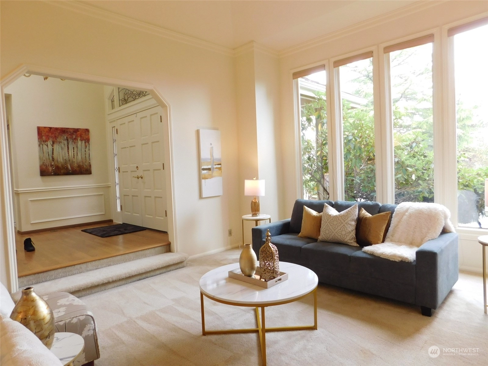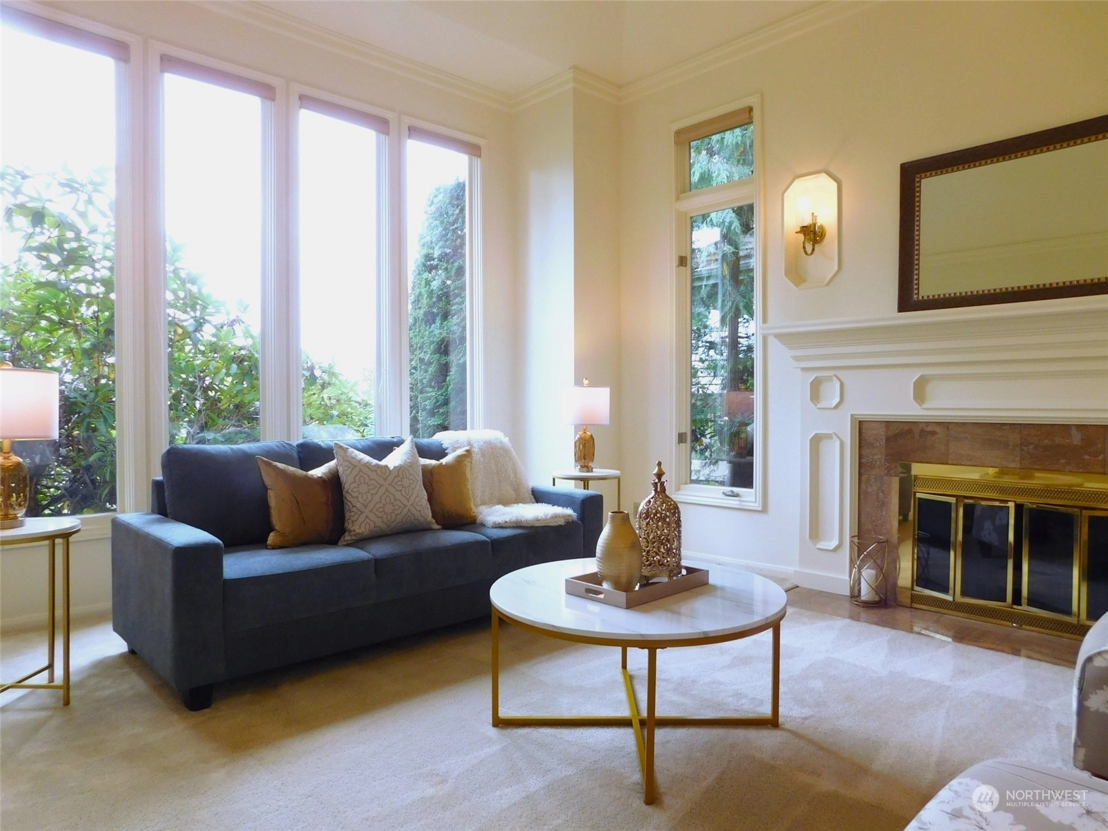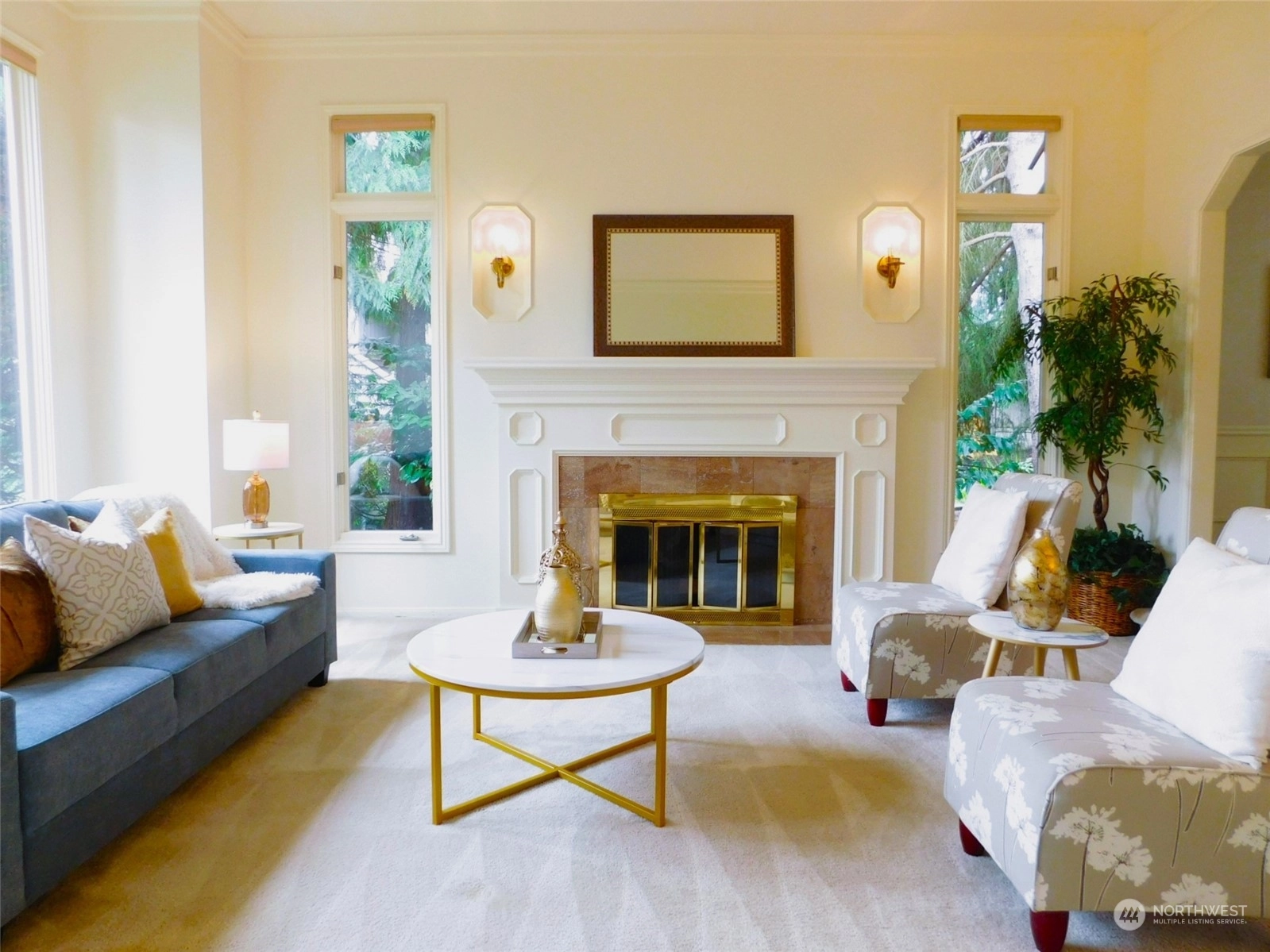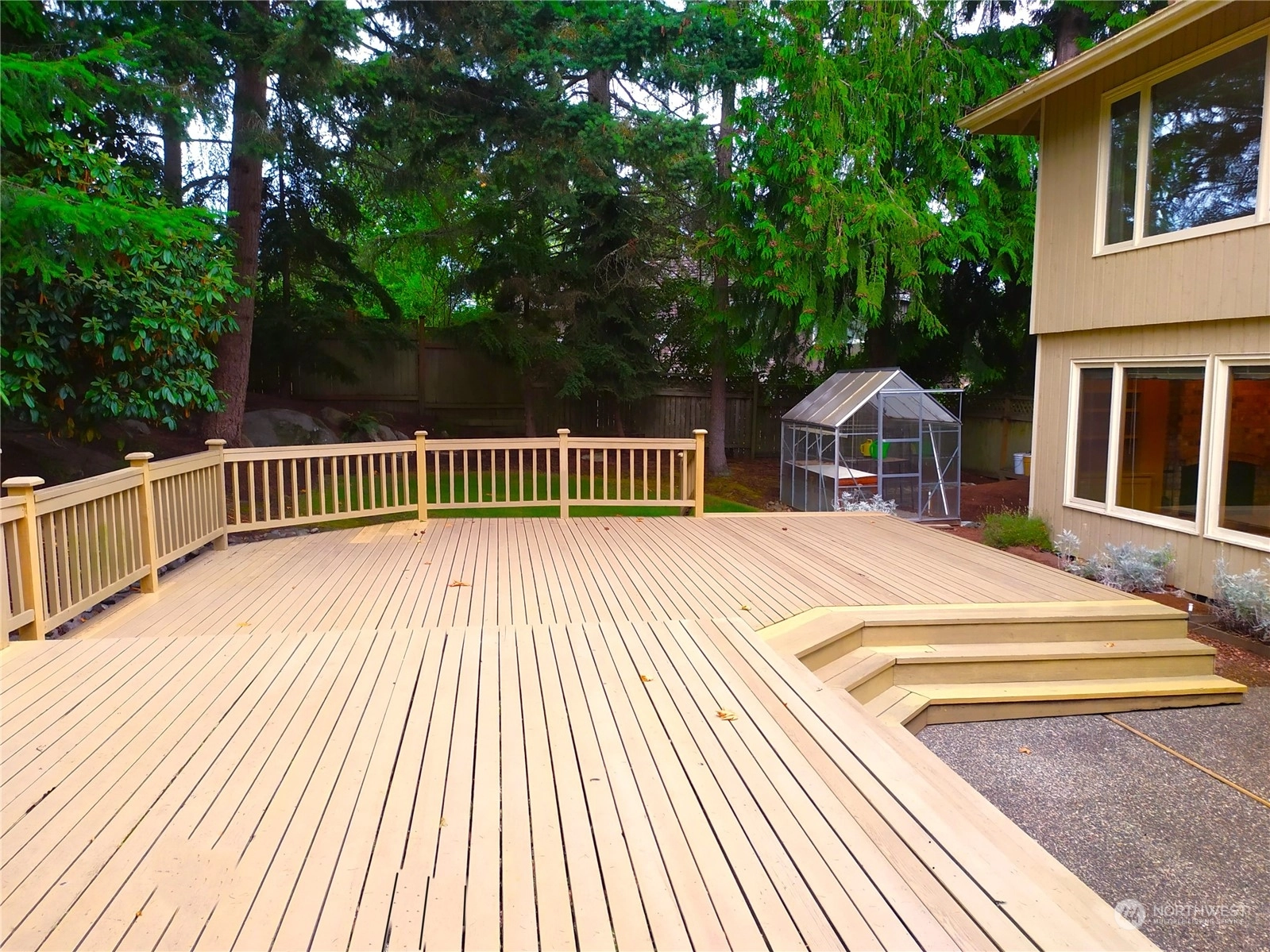This sought-after William Buchan-built home awaits your special touch! The elegant entry ushers you into a refined living room w/ dramatic 10ft windows, coved ceiling & marble-surround gas fireplace. Through the wainscoted dining room into the kitchen, you'll find ample cabinetry, reach-in pantry, & large windows over the sink. The family room features a brick fireplace, wet bar and broad windows looking out to the huge private deck--lots of room for summer parties! Work from home? This paneled office with built-in bookshelf is perfect! Upstairs the vast Master bedroom features walk-in closet and spa-sized en-suite with jetted tub! Exterior includes sprinkler system & glass greenhouse. Close to Issaquah schools, Newcastle Golf Club & I-90.