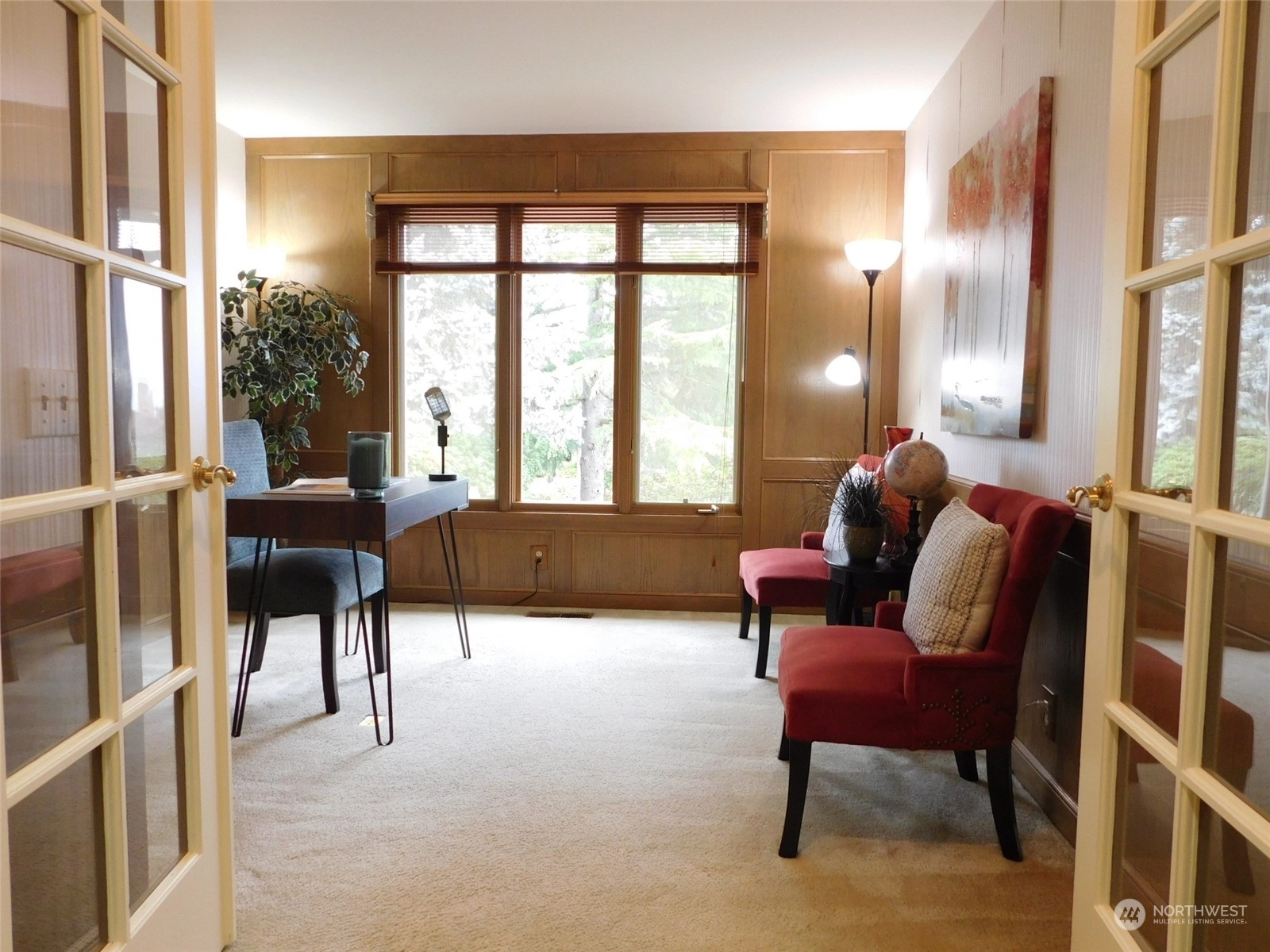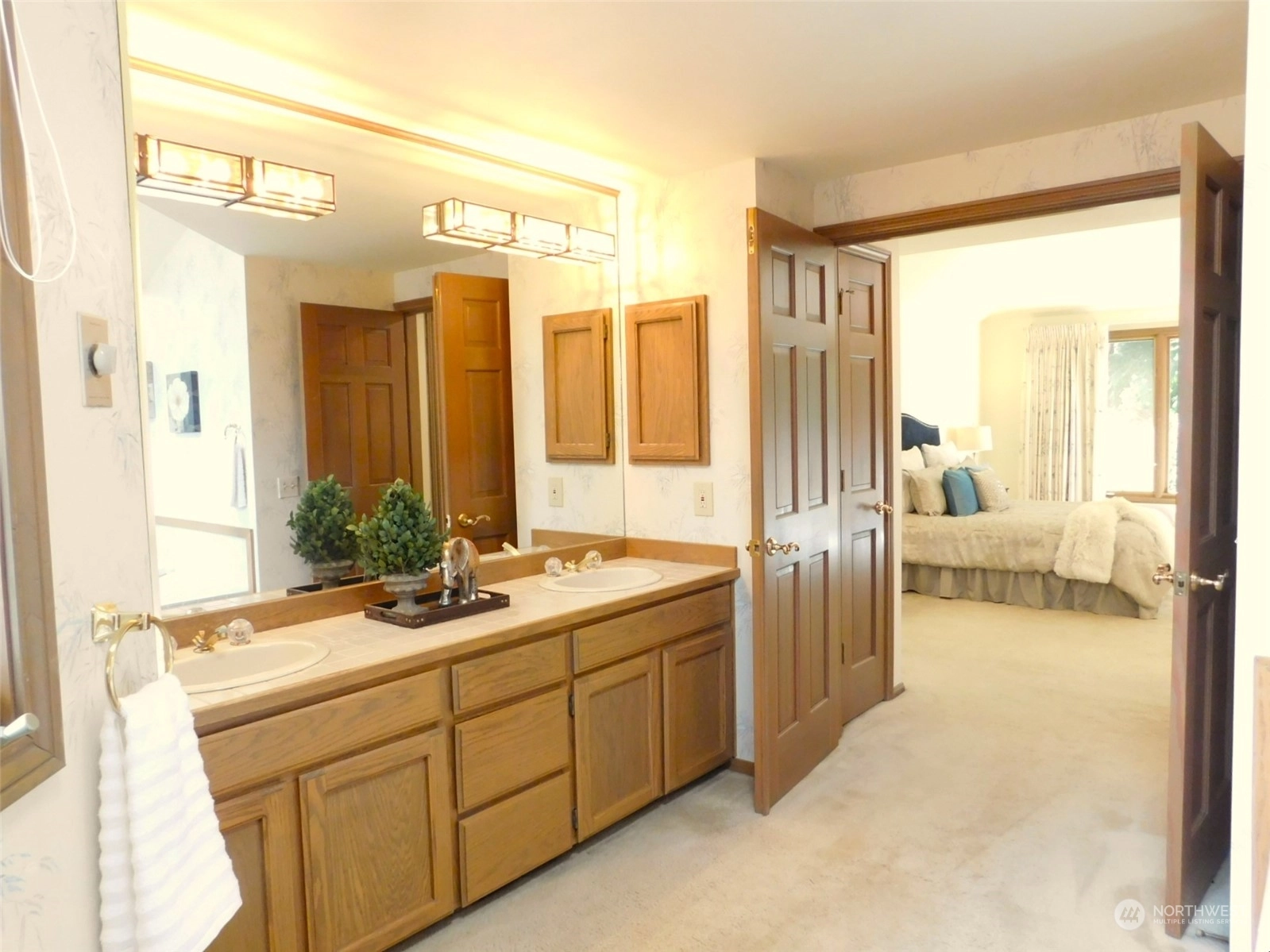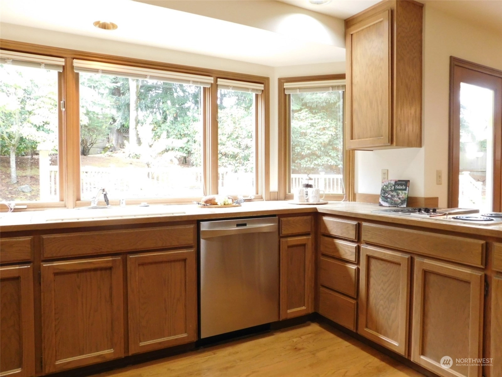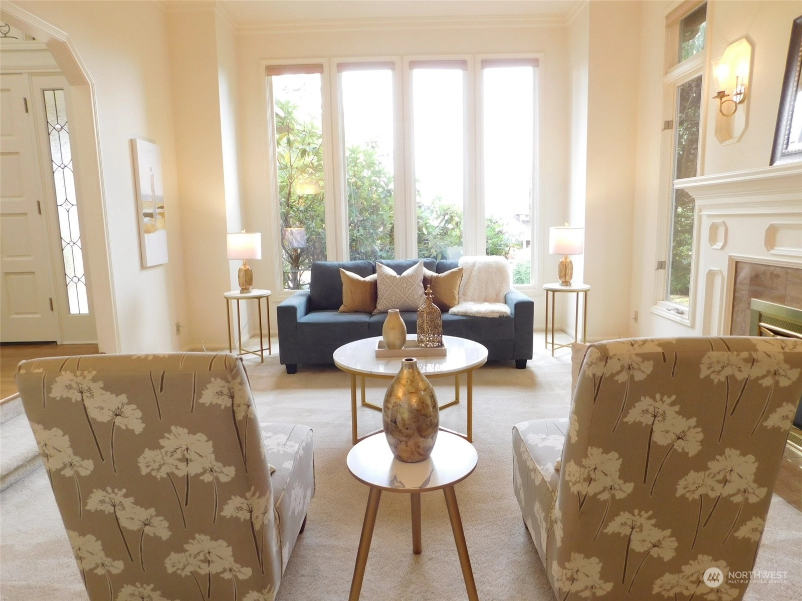 This sought-after William Buchan-built home awaits your special touch! The elegant entry ushers you into a refined living room w/ dramatic 10ft windows, coved ceiling & marble-surround gas fireplace. Through the wainscoted dining room into the kitchen, you'll find ample cabinetry, reach-in pantry, & large windows over the sink. The family room features a brick fireplace, wet bar and broad windows looking out to the huge private deck--lots of room for summer parties! Work from home? This paneled office with built-in bookshelf is perfect! Upstairs the vast Master bedroom features walk-in closet and spa-sized en-suite with jetted tub! Exterior includes sprinkler system & glass greenhouse. Close to Issaquah schools, Newcastle Golf Club & I-90.