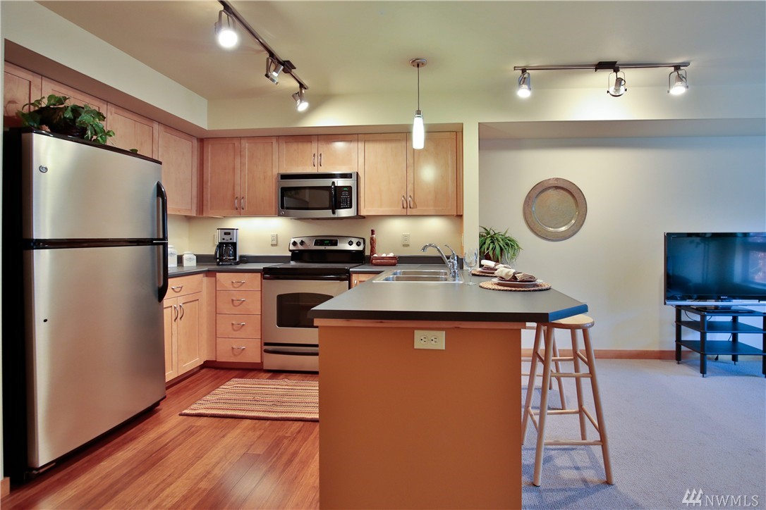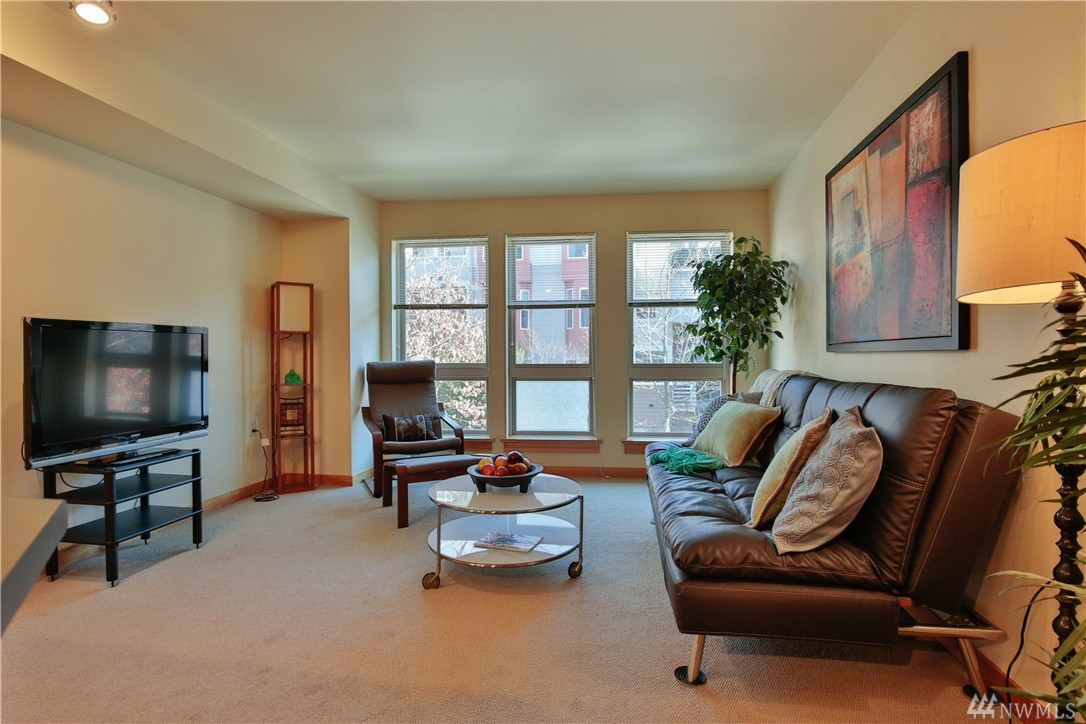 Minutes from downtown Seattle, this one-bedroom condo is move in ready. The east-facing unit has floor to ceiling windows in the living room that brighten the space. Stainless appliances and bamboo flooring in the kitchen and entry. Spacious master bedroom. Stackable washer/dryer. Secure garage with parking space. Common outdoor deck area with view of downtown Seattle. Rental cap not met. Located on a quiet street, with easy access to I-90.