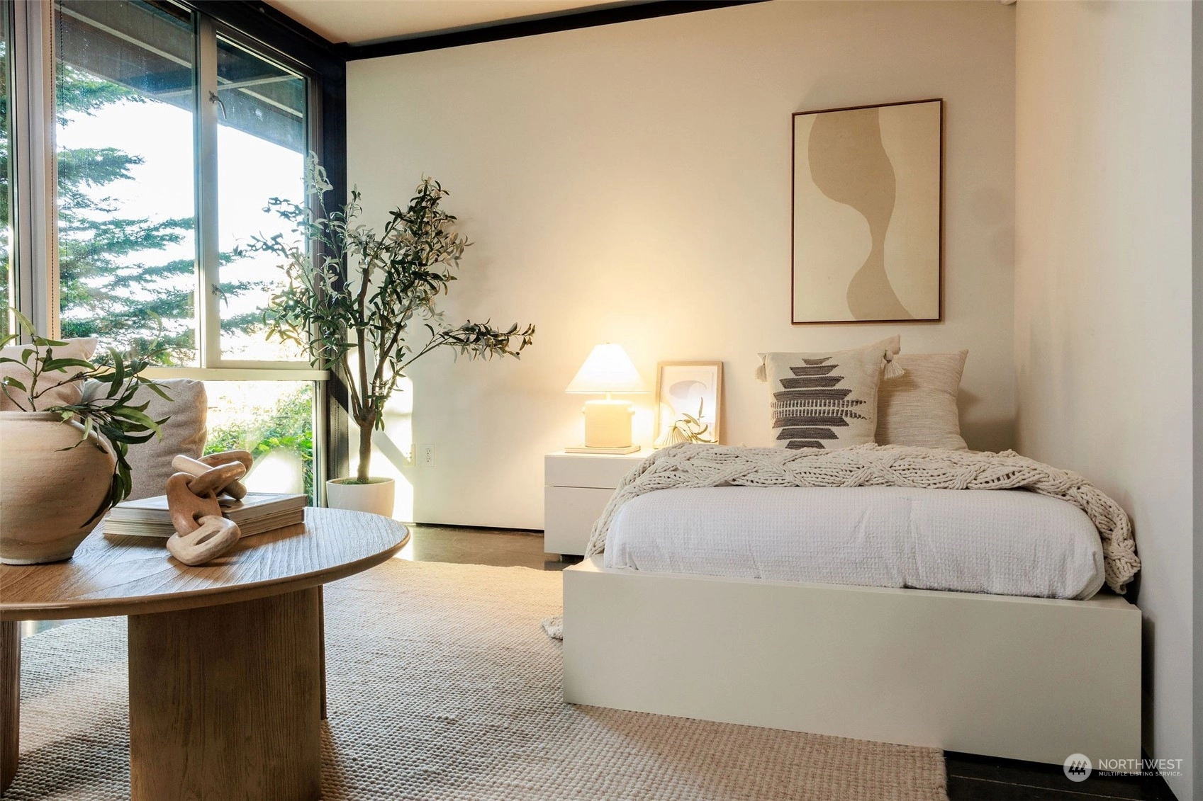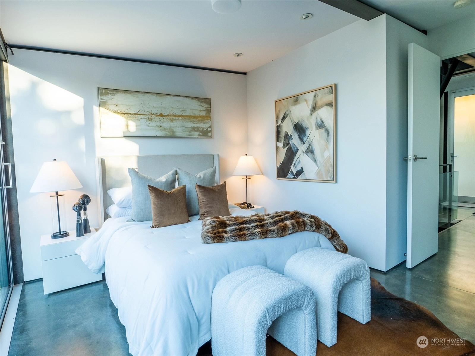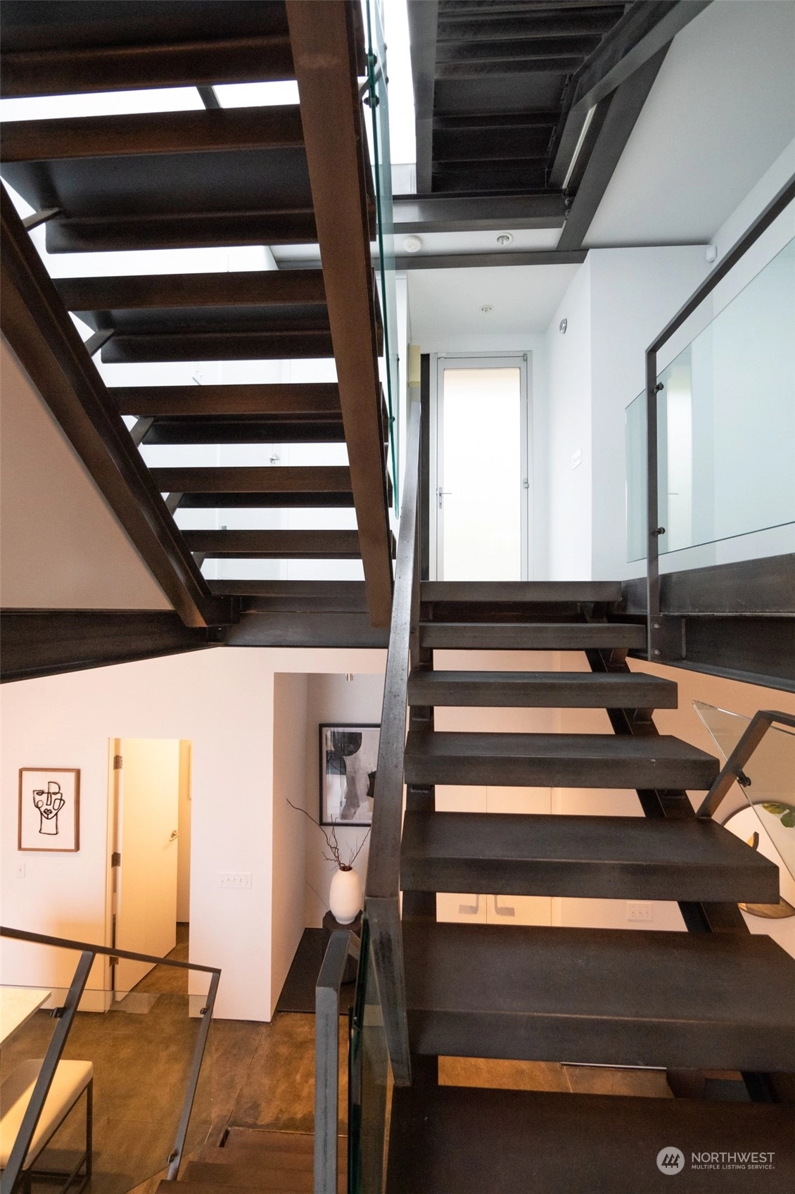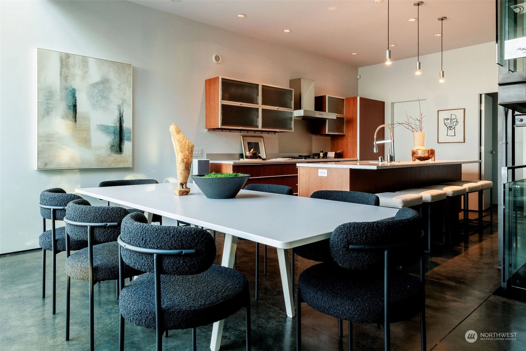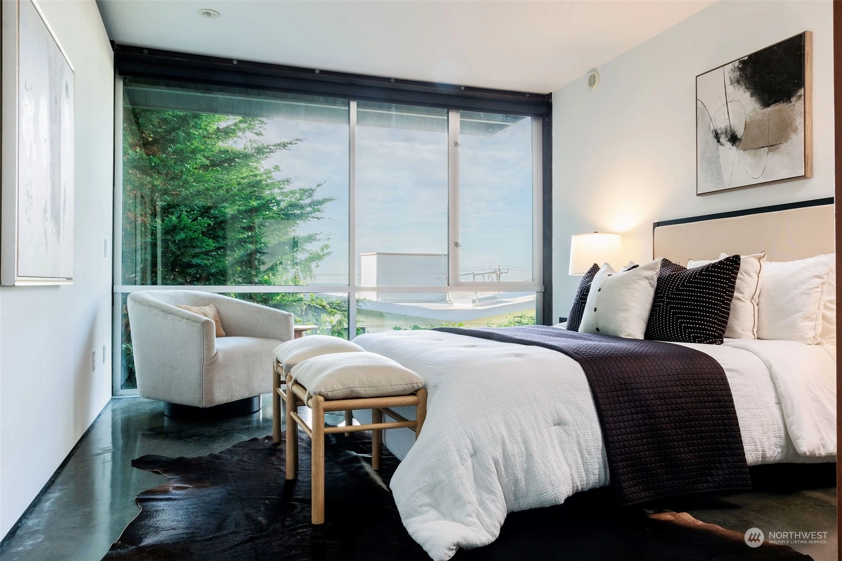 Minimalist and arresting, best describe this AIA award-winning Eric Cobb-designed residence. Timeless materials throughout, including, concrete, exposed steel and glass, complimented by rich cabinetry, fixtures & surfaces. Dramatic steel & glass double height staircase frames the show stopping view. Multiple terraces to take advantage of the Sunsets, Olympic Mountains and the magnificent views overlooking the Salish Sea. The rooftop terrace is truly sublime. Additionally, this home lives on three levels plus the rooftop terrace along with a drive-in view garage. This space is finished and could be considered flex space. This is loft living at its best!