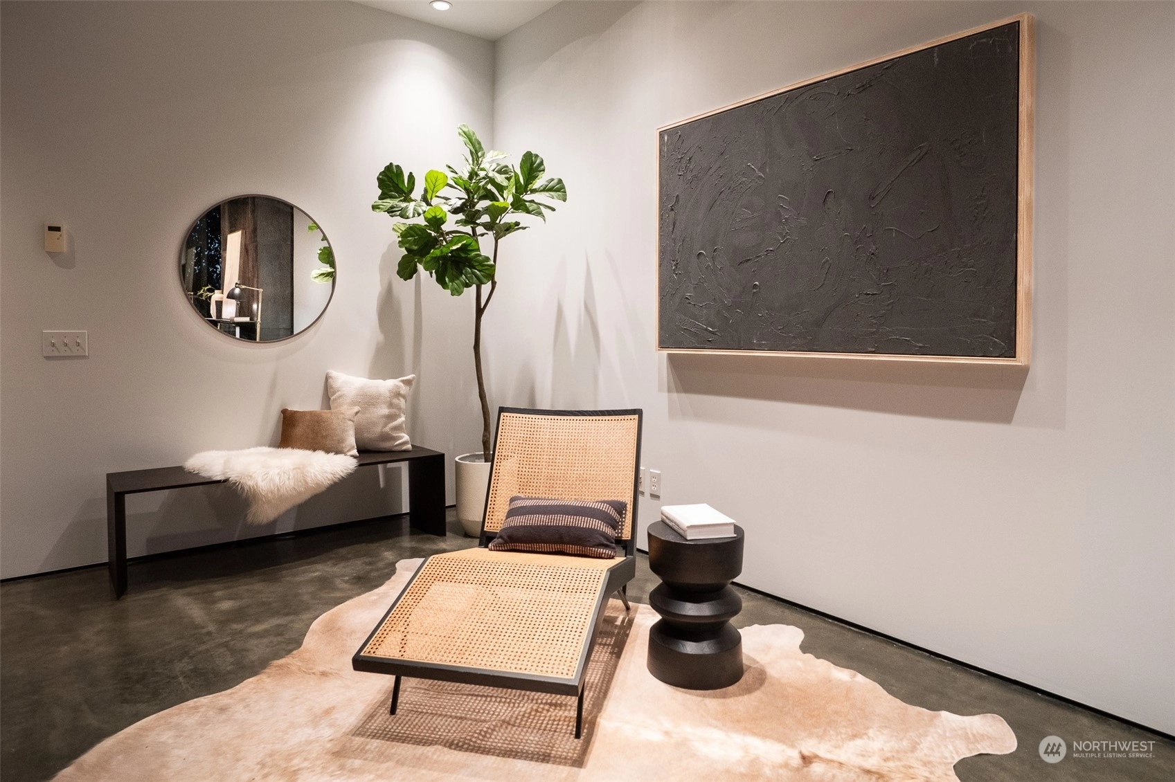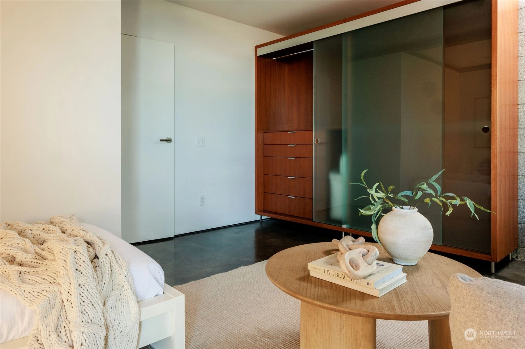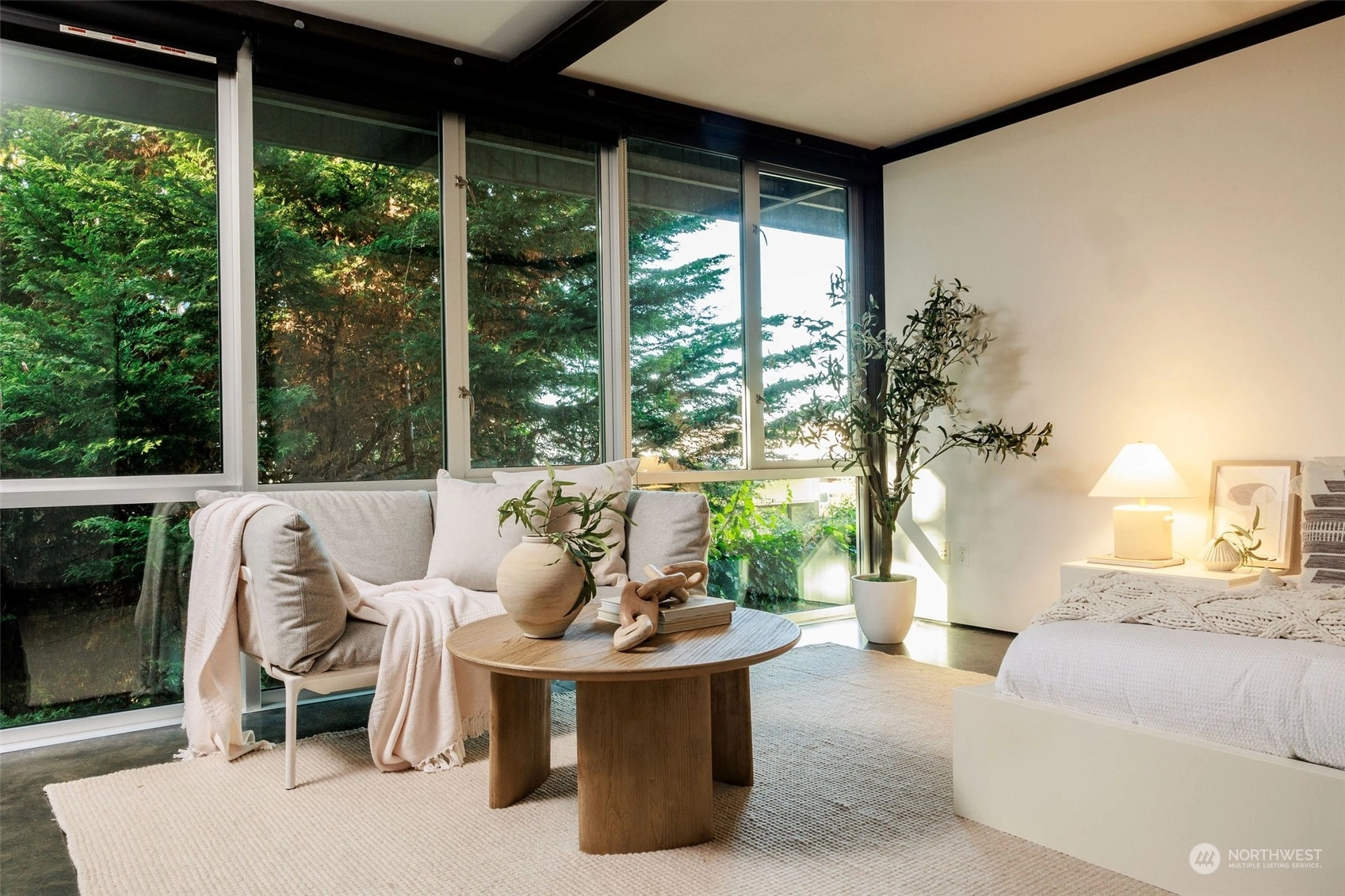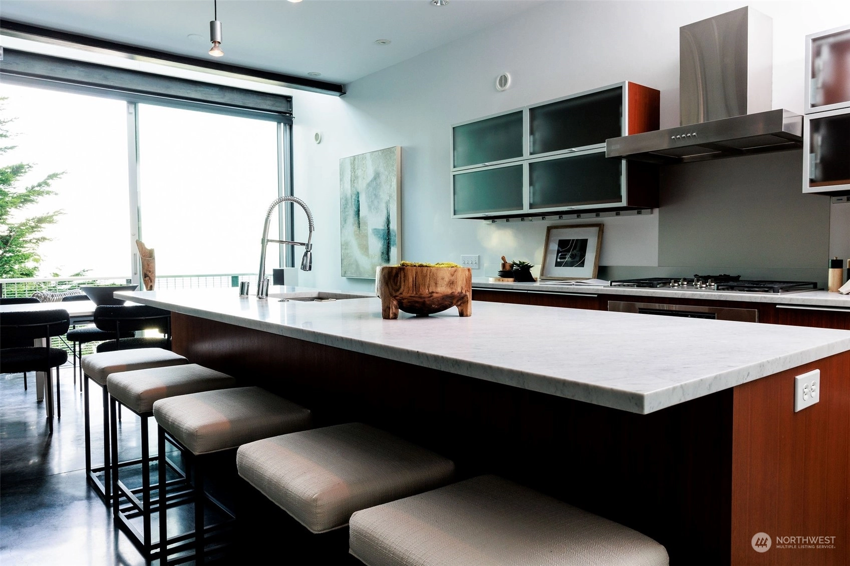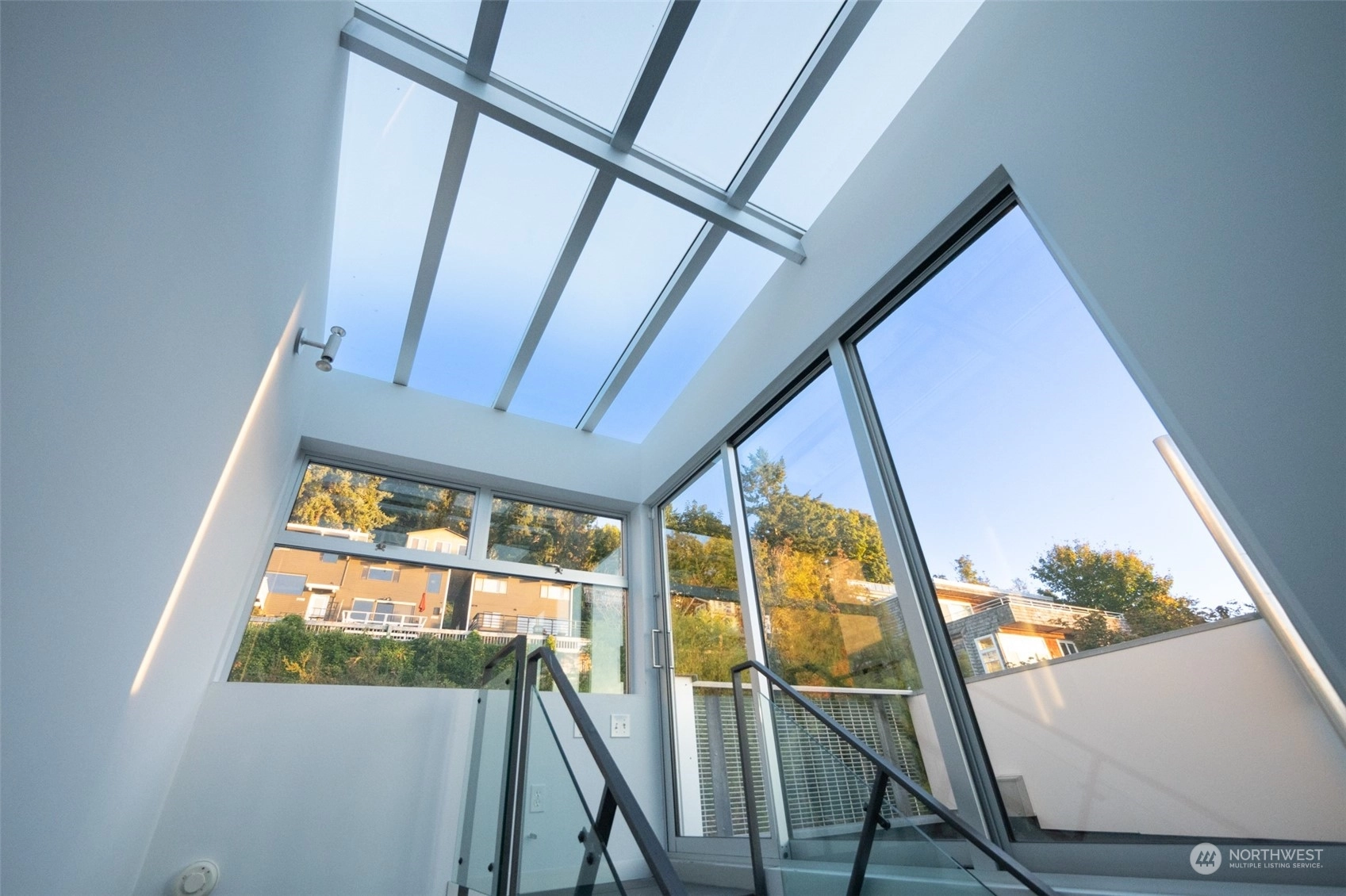 Minimalist and arresting, best describe this AIA award-winning Eric Cobb-designed residence. Timeless materials throughout, including, concrete, exposed steel and glass, complimented by rich cabinetry, fixtures & surfaces. Dramatic steel & glass double height staircase frames the show stopping view. Multiple terraces to take advantage of the Sunsets, Olympic Mountains and the magnificent views overlooking the Salish Sea. The rooftop terrace is truly sublime. Additionally, this home lives on three levels plus the rooftop terrace along with a drive-in view garage. This space is finished and could be considered flex space. This is loft living at its best!