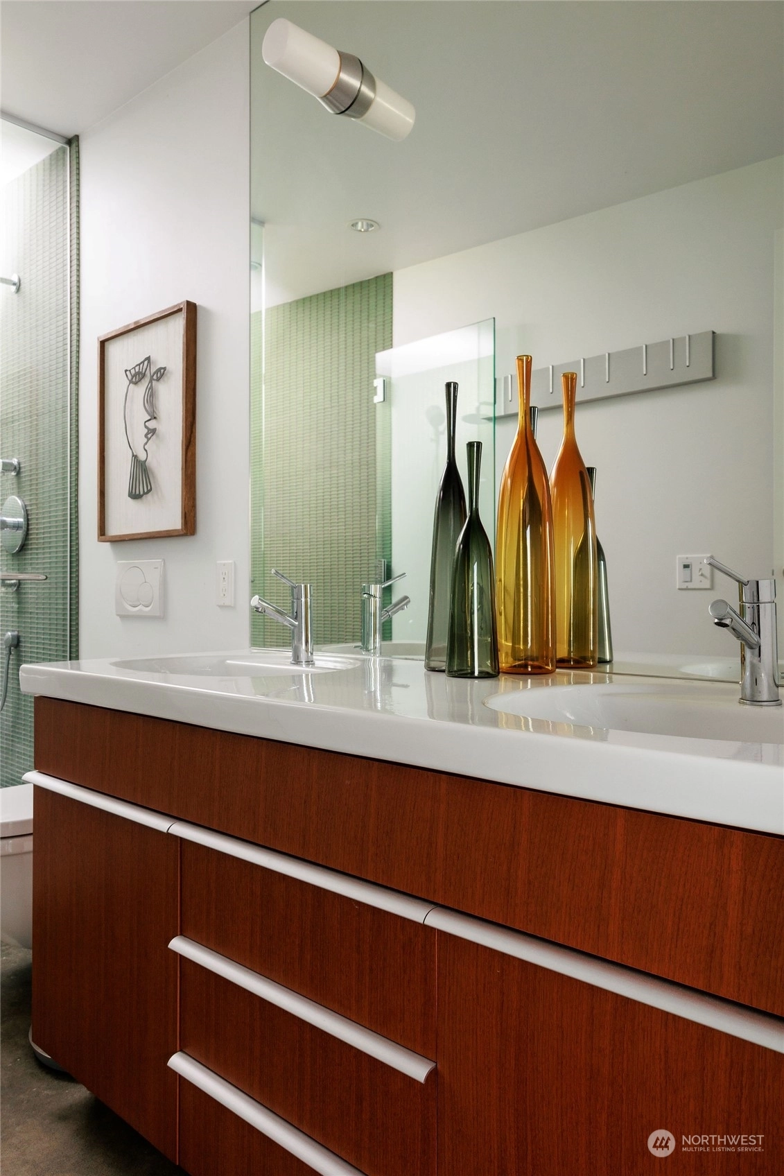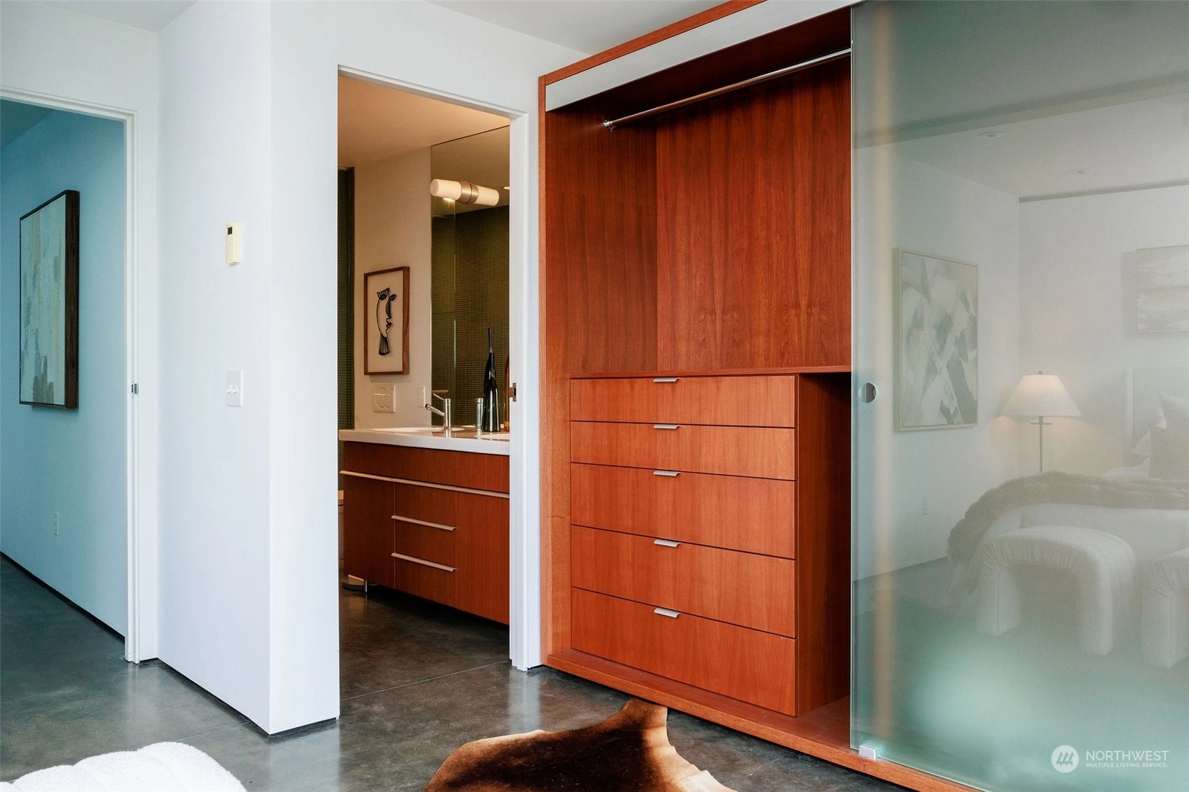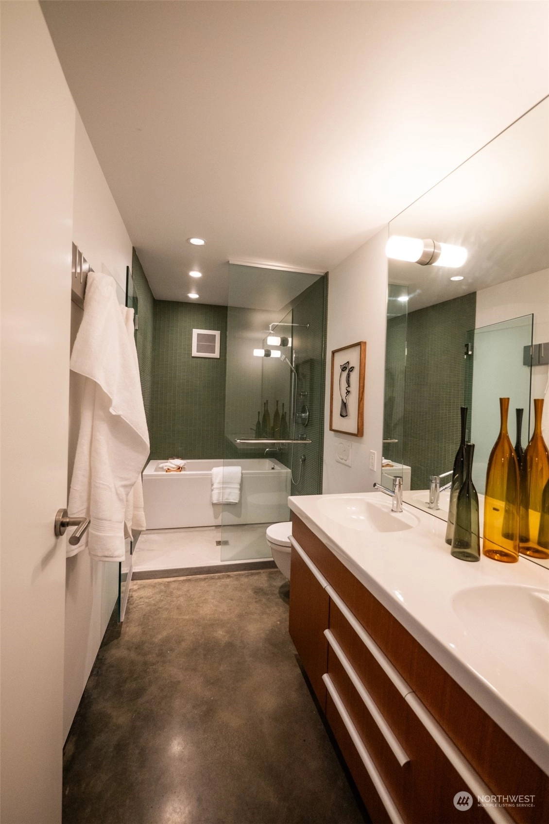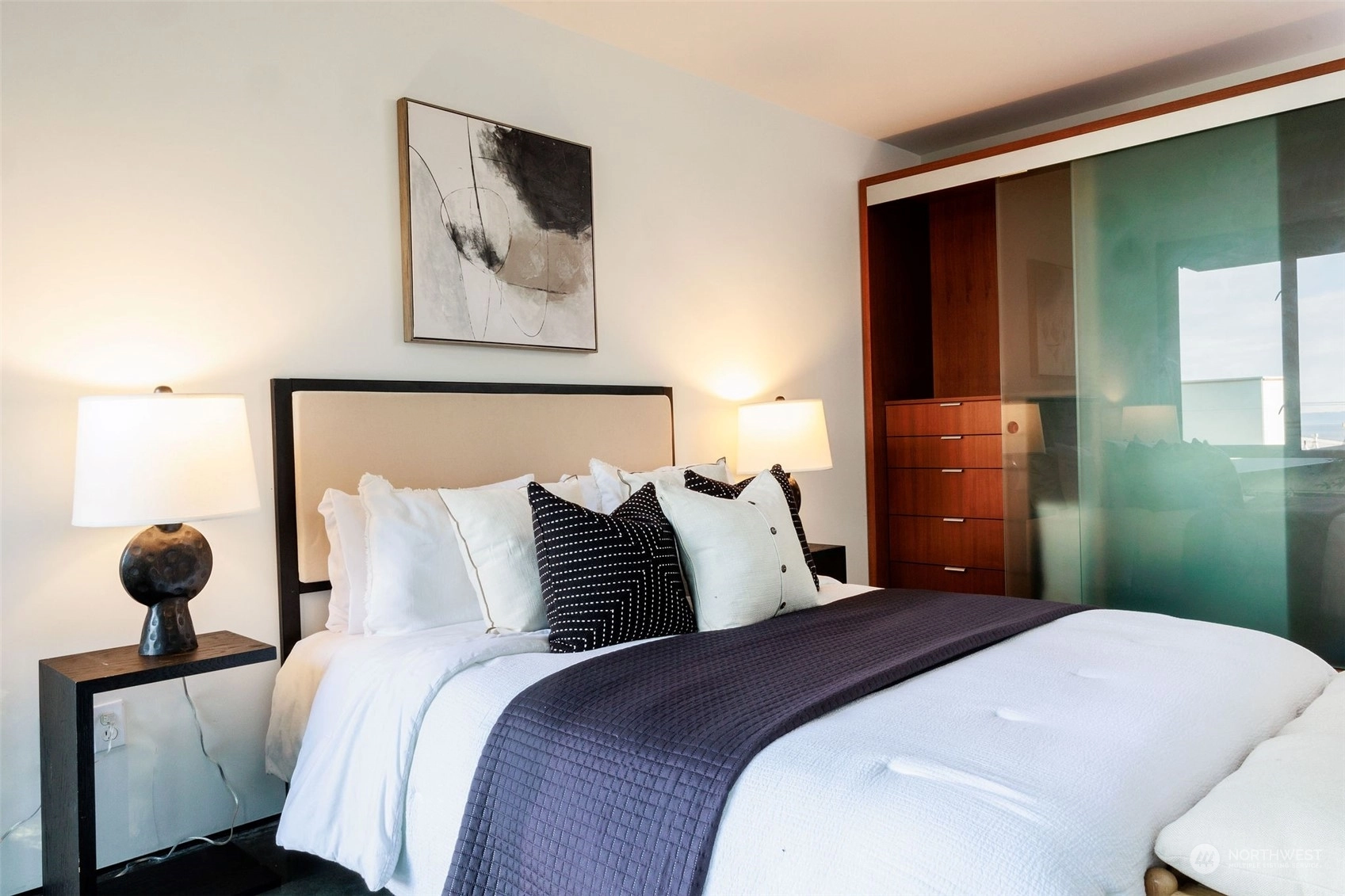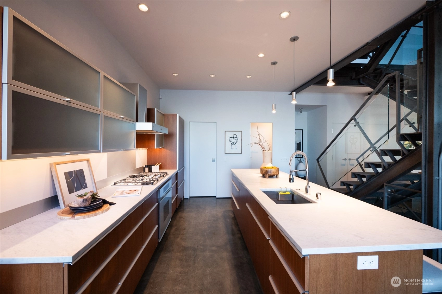Minimalist and arresting, best describe this AIA award-winning Eric Cobb-designed residence. Timeless materials throughout, including, concrete, exposed steel and glass, complimented by rich cabinetry, fixtures & surfaces. Dramatic steel & glass double height staircase frames the show stopping view. Multiple terraces to take advantage of the Sunsets, Olympic Mountains and the magnificent views overlooking the Salish Sea. The rooftop terrace is truly sublime. Additionally, this home lives on three levels plus the rooftop terrace along with a drive-in view garage. This space is finished and could be considered flex space. This is loft living at its best!
