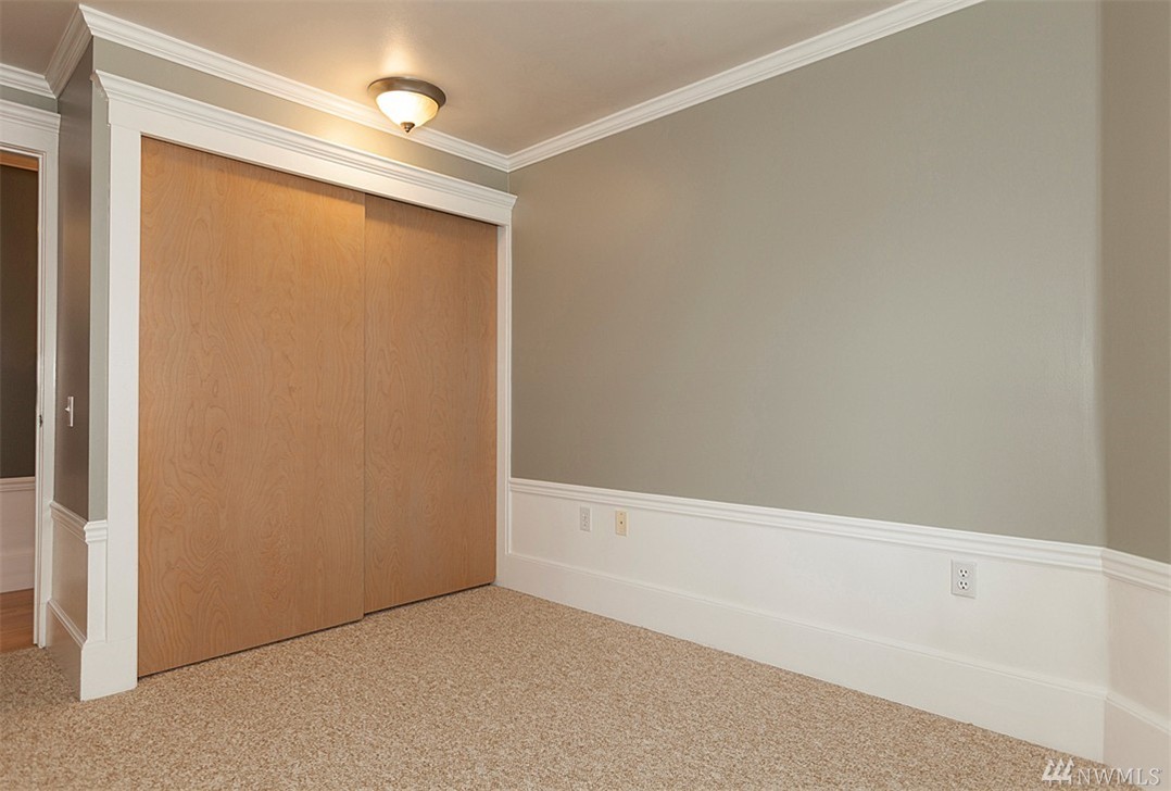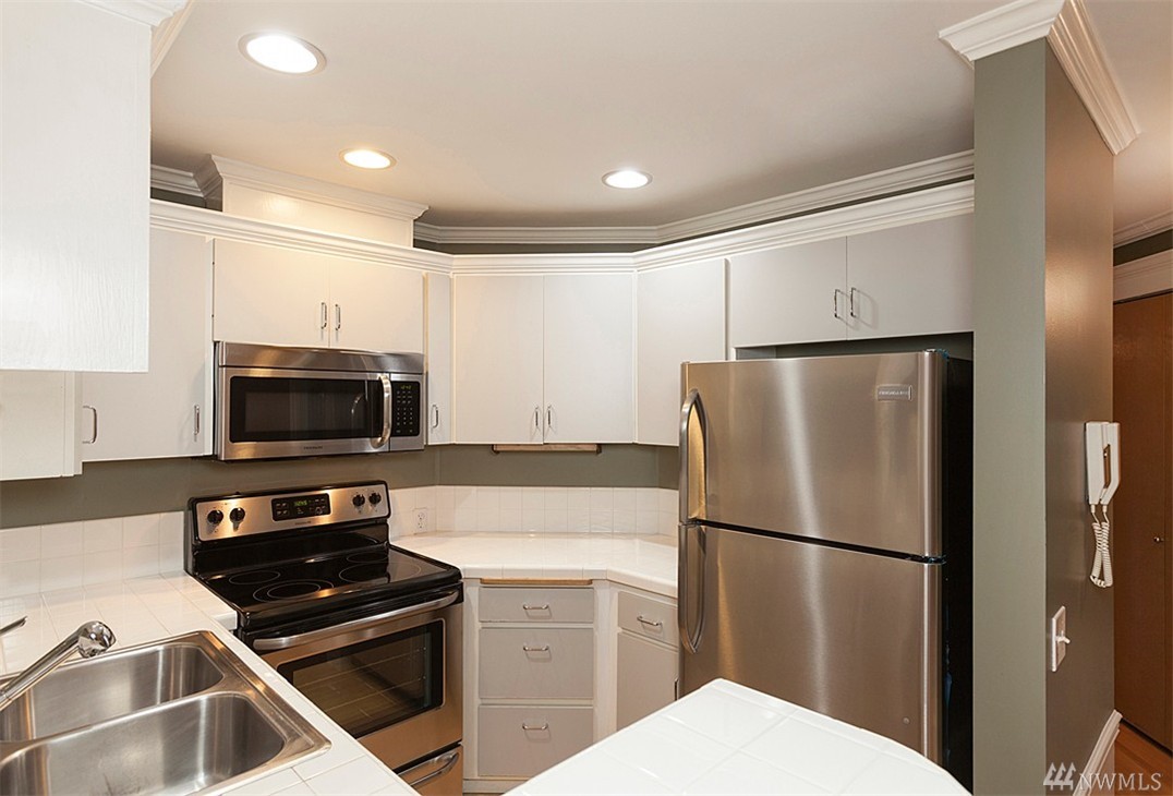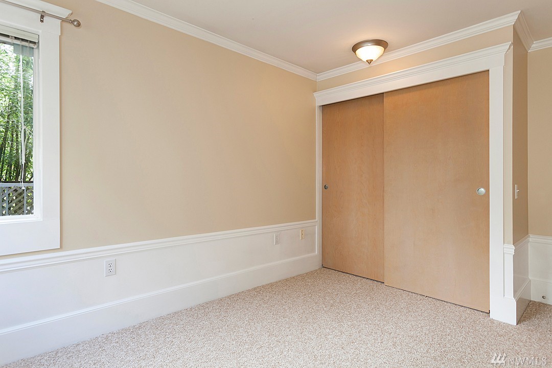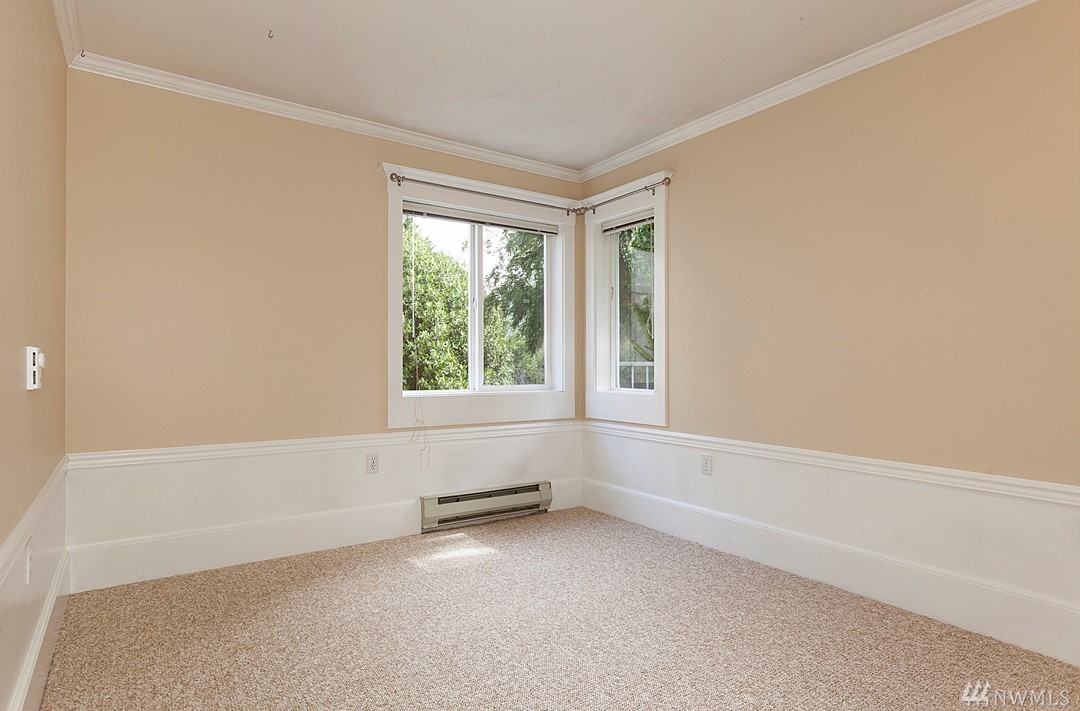 Boutique condo w. only 9 units in complex! Sunny, spacious, quiet end unit w. wainscoting & crown molding wrapped around every inch. 2bd/2bth, includes master suite w. bth & second bed with ensuite bth. In unit W/D, private deck off living rm & cozy fireplace. This home has been re-painted, new carpet & SS appl. TWO secure parking spots & storage unit included! Close to shops, pubs, coffee shops, restaurants, GL, bus lines, in one of Seattle's 10 best neighborhoods (Seattle Met). Walk score 90!
