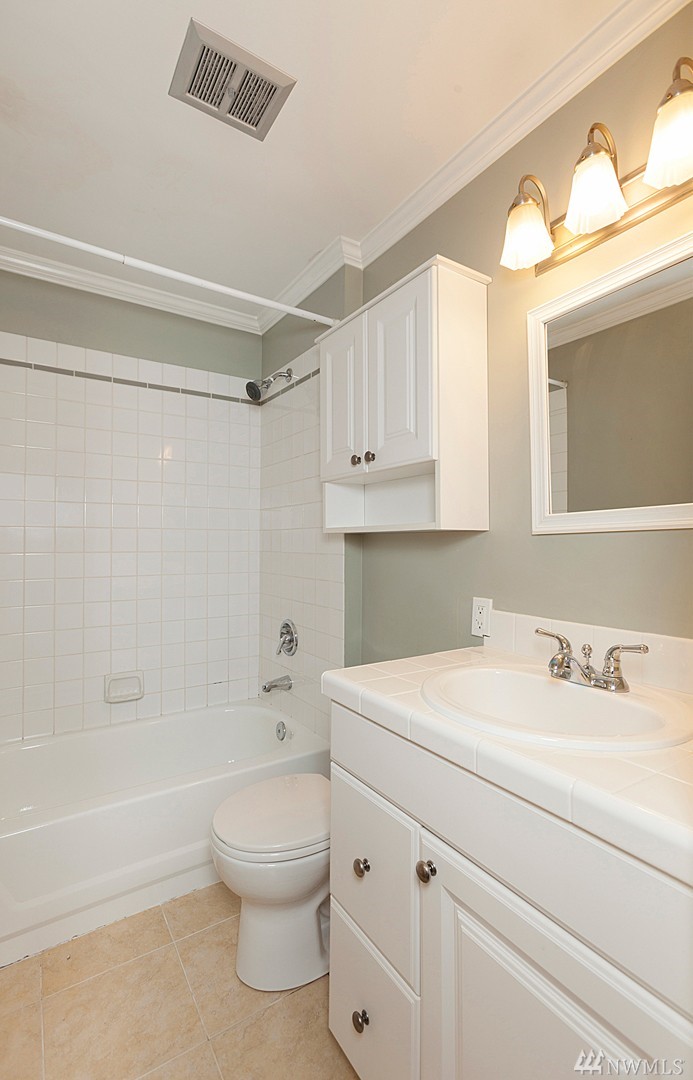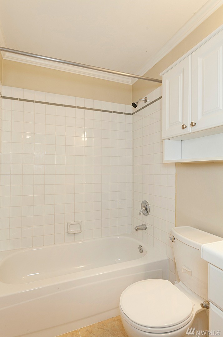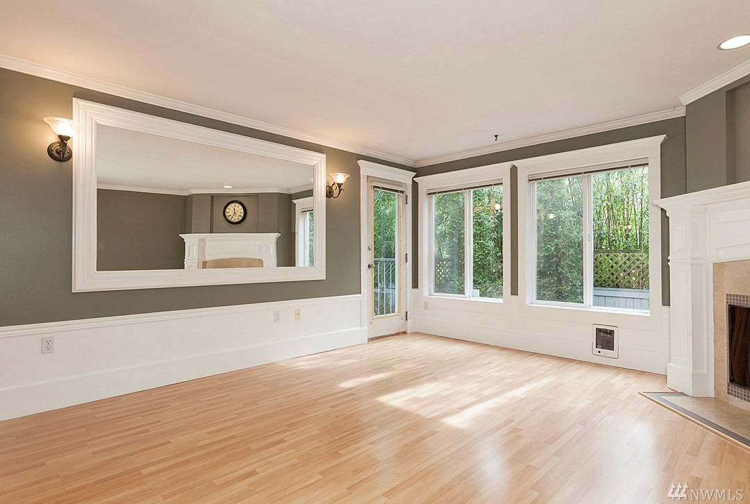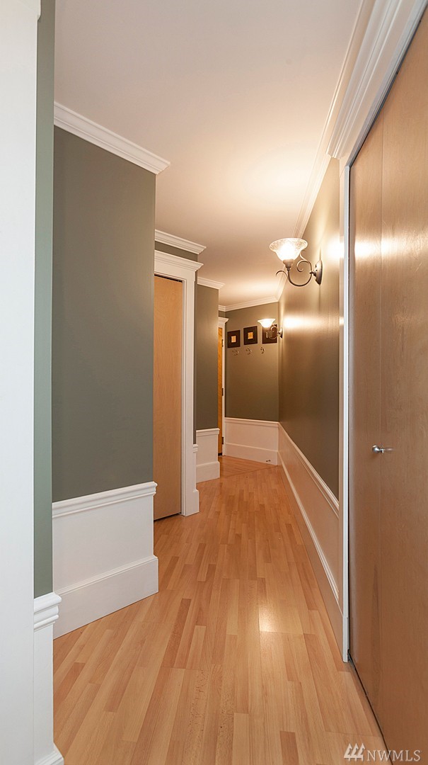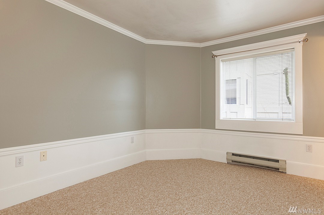 Boutique condo w. only 9 units in complex! Sunny, spacious, quiet end unit w. wainscoting & crown molding wrapped around every inch. 2bd/2bth, includes master suite w. bth & second bed with ensuite bth. In unit W/D, private deck off living rm & cozy fireplace. This home has been re-painted, new carpet & SS appl. TWO secure parking spots & storage unit included! Close to shops, pubs, coffee shops, restaurants, GL, bus lines, in one of Seattle's 10 best neighborhoods (Seattle Met). Walk score 90!