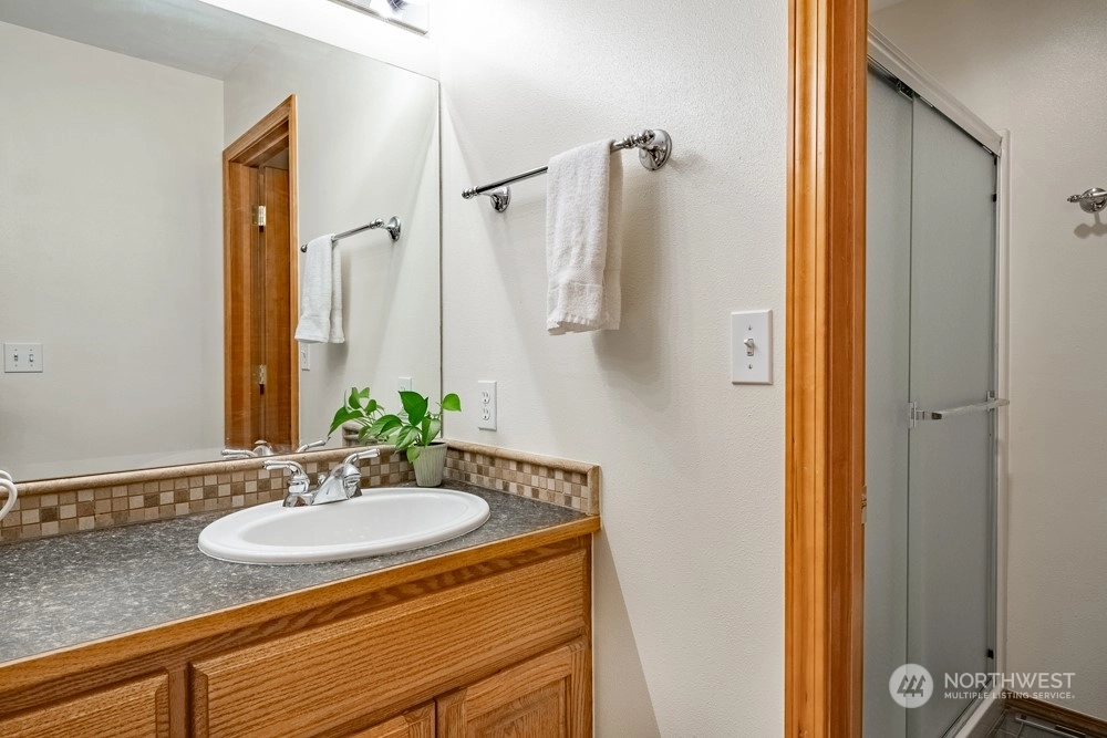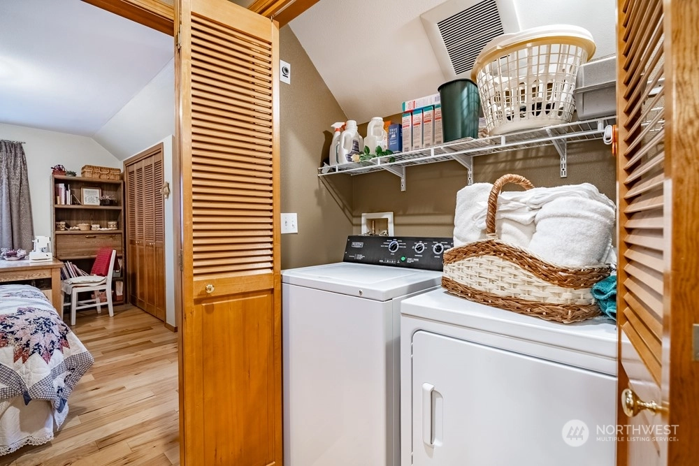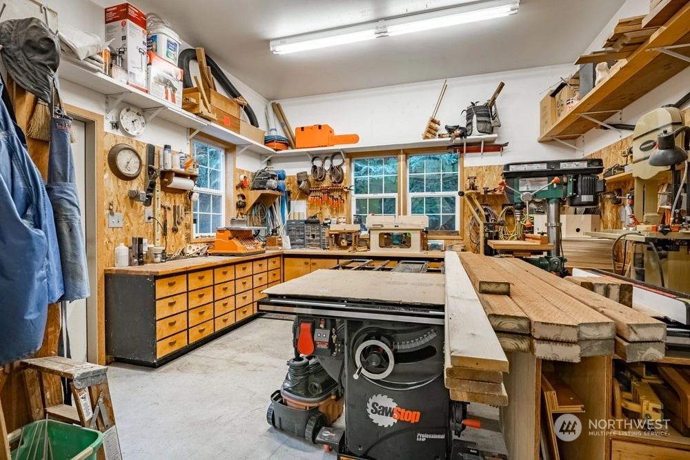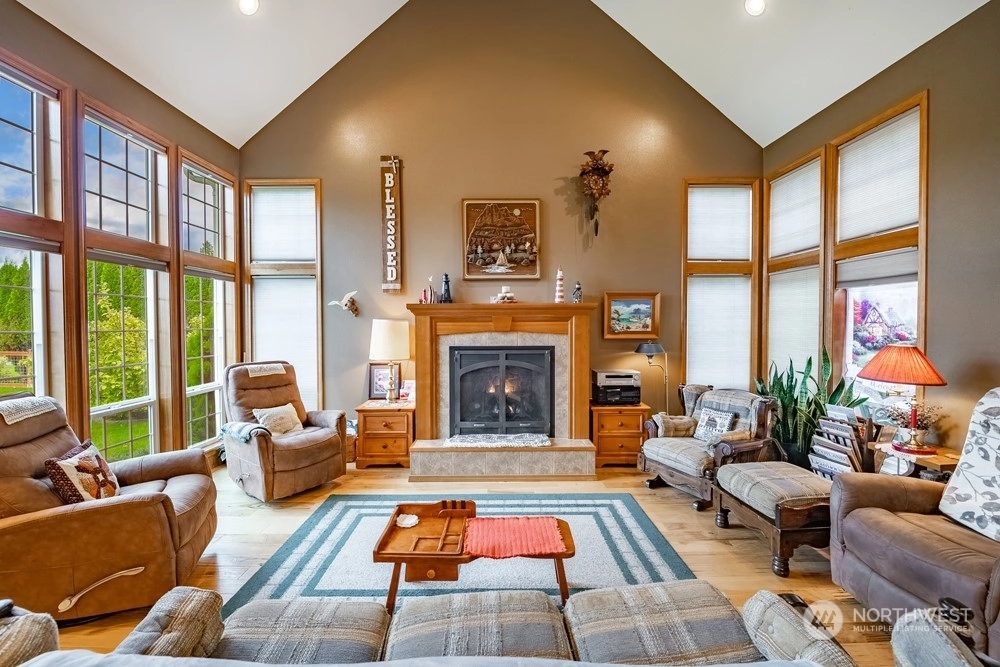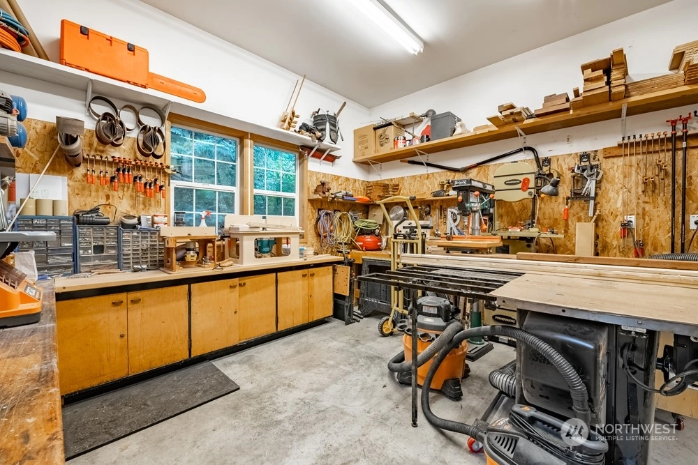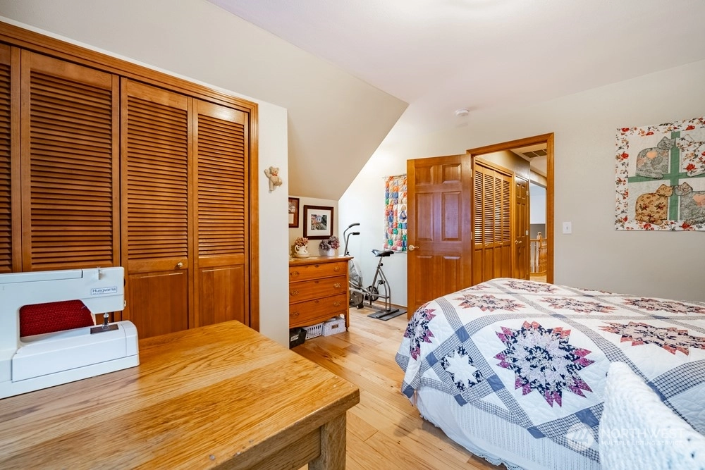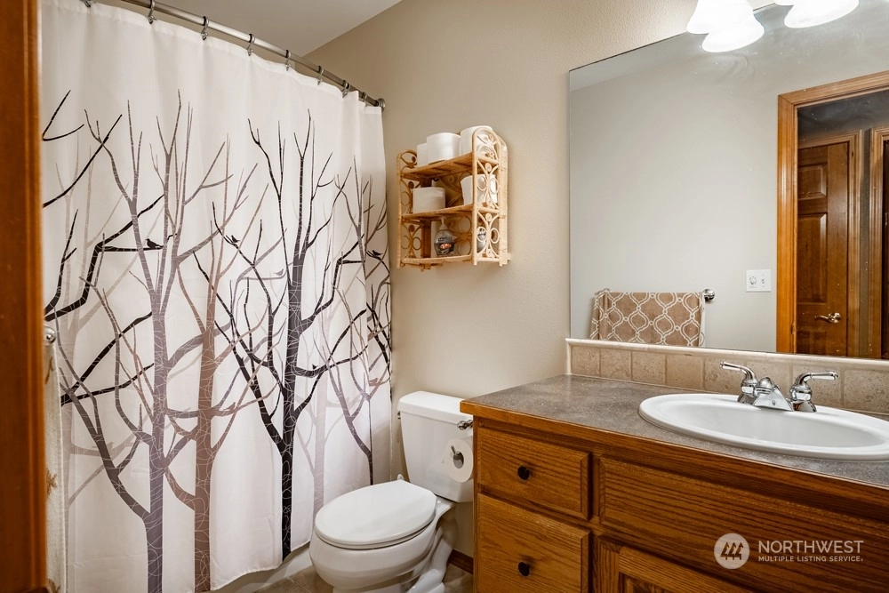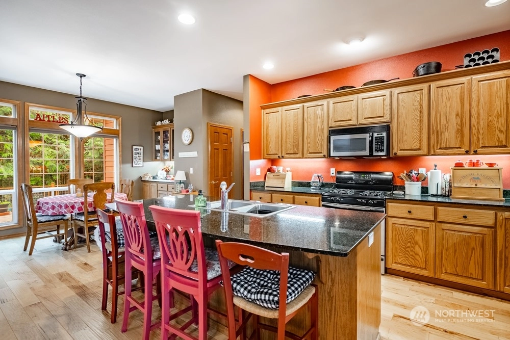 This meticulously maintained 4-bedroom home offers low maintenance and is move-in ready. The warm and inviting open living room seamlessly connects to the kitchen and dining area, providing easy access to the expansive deck and patio. Main level bedroom and 3 more upstairs. The hickory wood floors add a touch of elegance throughout. Features include vaulted ceilings, a sprinkler system, walk-in closet, generator wiring, and large windows with transoms that flood the home with natural light. The 4th bedroom is large enough to be a bonus room. 3-car garage along with an attached 15 x 15 insulated and heated shop. There is also a detached garden shed. The backyard is adorned with trees and pathways leading down to a seasonal creek and fire pit
