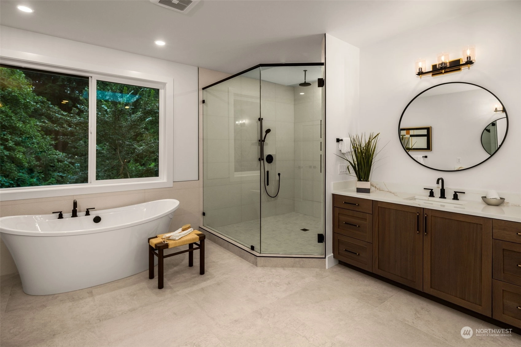 Welcome to your new home in the quiet neighborhood of Newcastle. At just over 4000 sqft 4 beds and 4.25 baths there were no details that went unnoticed. As you enter in on the main level you're greeted with the formal living/dining room on the left hand side. Just through the butlers pantry this is where the house opens up to an oversized chefs kitchen stocked with high end appliances and wine cooler. Continuing on past the kitchen and through the great room you'll find the main level guest suite with its own 3/4 bathroom and living room. On the upper level, you have the luxurious primary suite with gas fire place, massive bathroom with dual vanities, and large soaking tub. Just around the corner you'll find 2 more spacious ensuite beds.