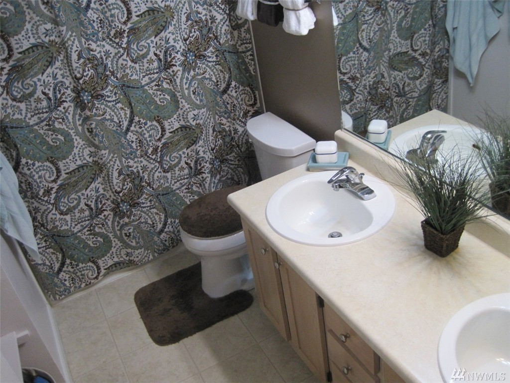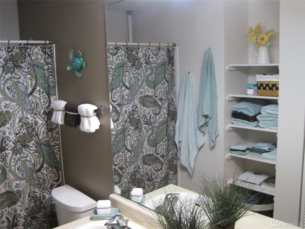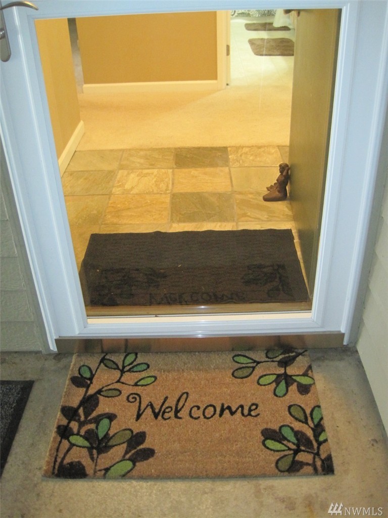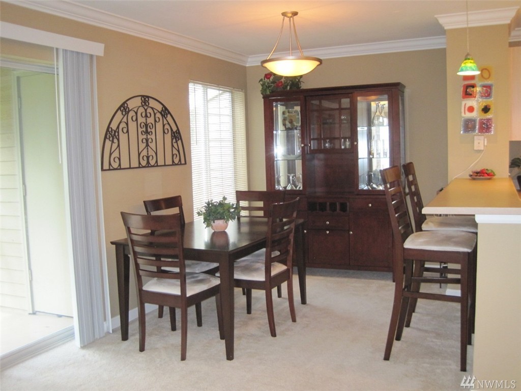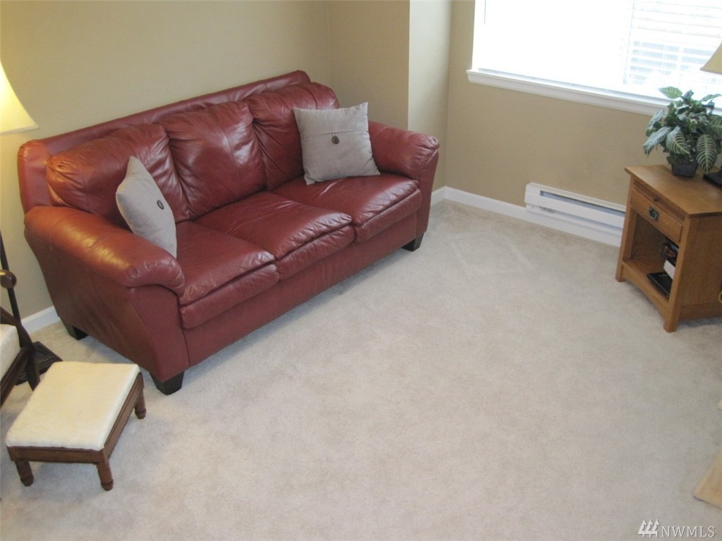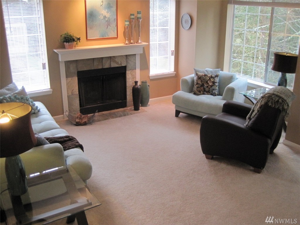 Top floor end unit with no stairs and backs to greenbelt for privacy. Slate entry opens to spacious living room with wood burning fireplace. Kitchen has stainless steel appliances and bamboo floor. Lots of windows brings in plenty of natural light. Bath has been updated with tile and accent paint. Both bedrooms have walk-in closets. All appliances included. Two covered parking spaces (41 & 42). HOA dues include water, sewer and garbage.