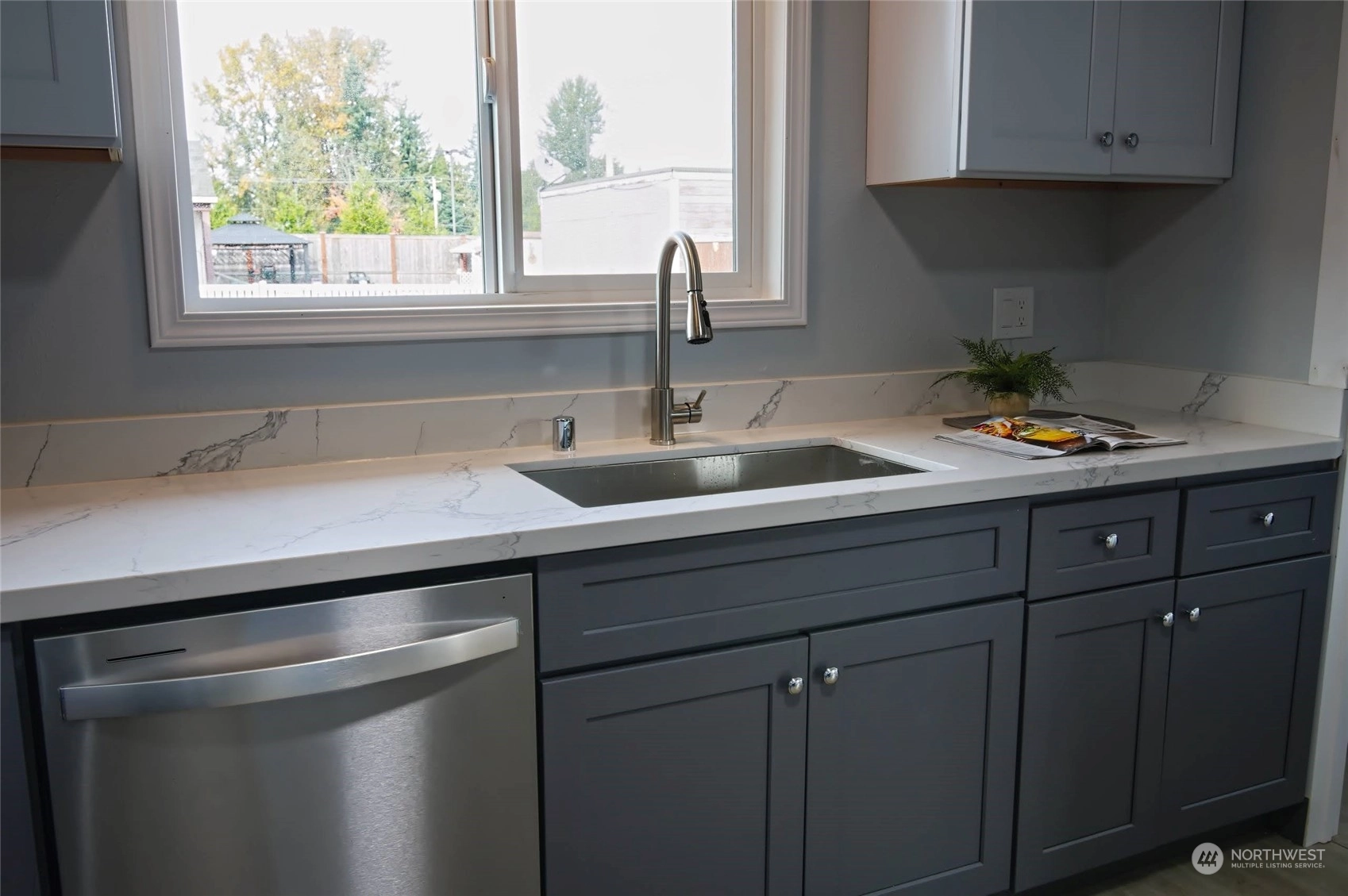 Fully remodeled and turnkey! Two bedroom home nestled in the heart of Sumner with full bath and detached garage. This delighted house comes with almost all new windows & trim, new roof and gutters, electrical panel and electrical heaters, tiled tub, new W/D, and LVP flooring throughout. Kitchen boasts new soft close shaker cabinetry, SS appliances, and quartz countertops with backsplash. Tons of natural light, freshly painted inside and out. Front & back yards are a perfect size for BBQs, gardening and more. Prime location! Minutes from freeways and a quick walk to the Sounder train for easy commuting. Only blocks from downtown Sumner with restaurants, shopping, parks, and schools. Enjoy a sustainable lifestyle.