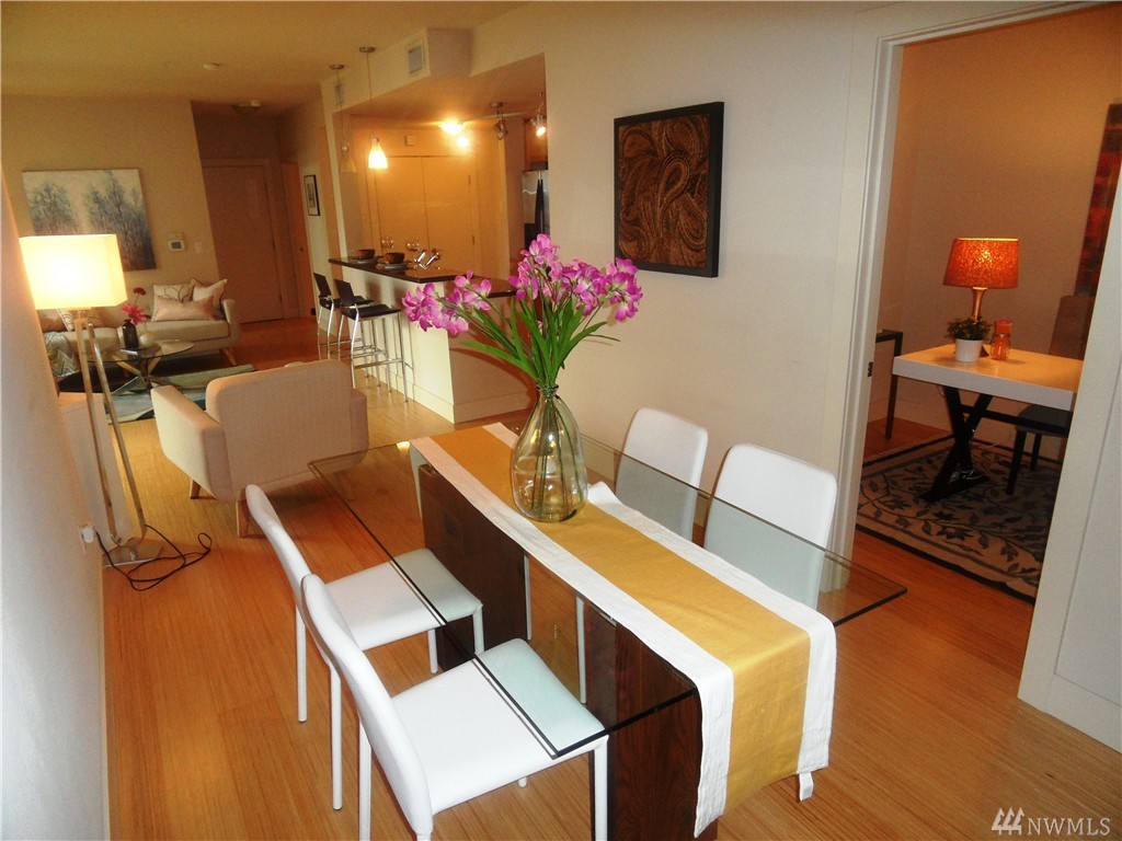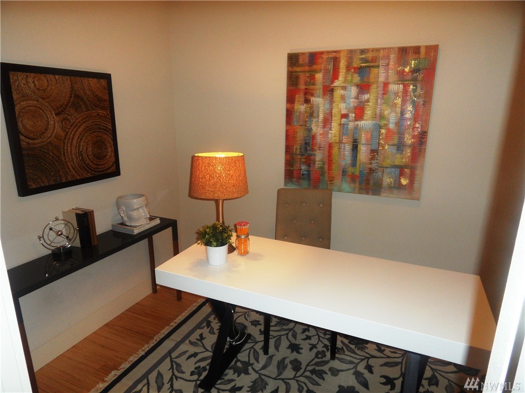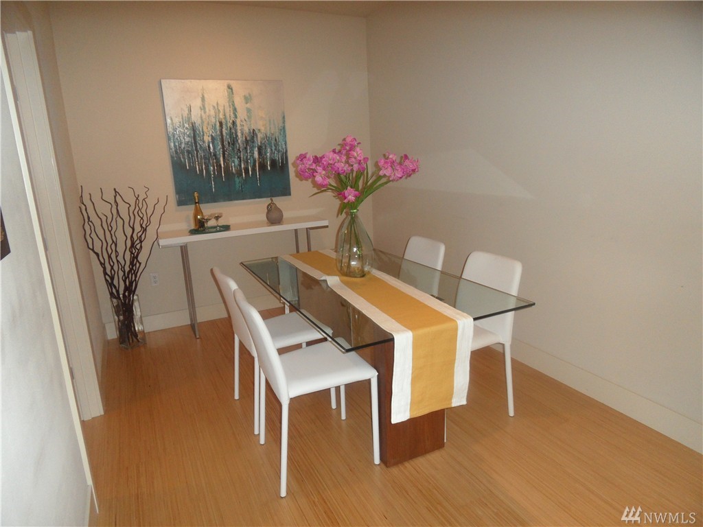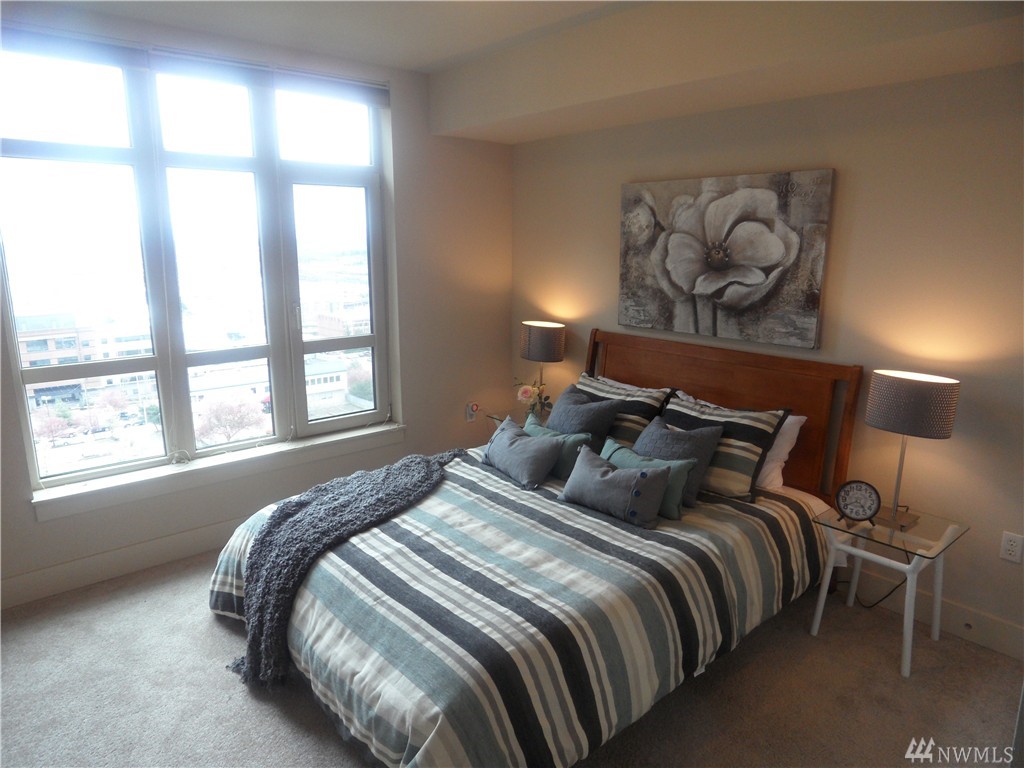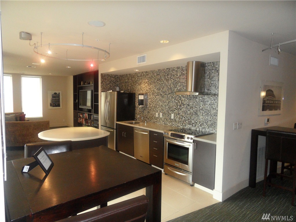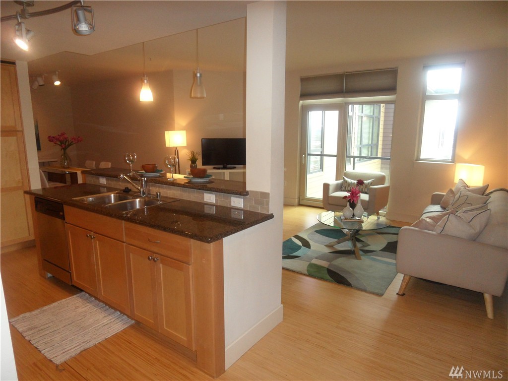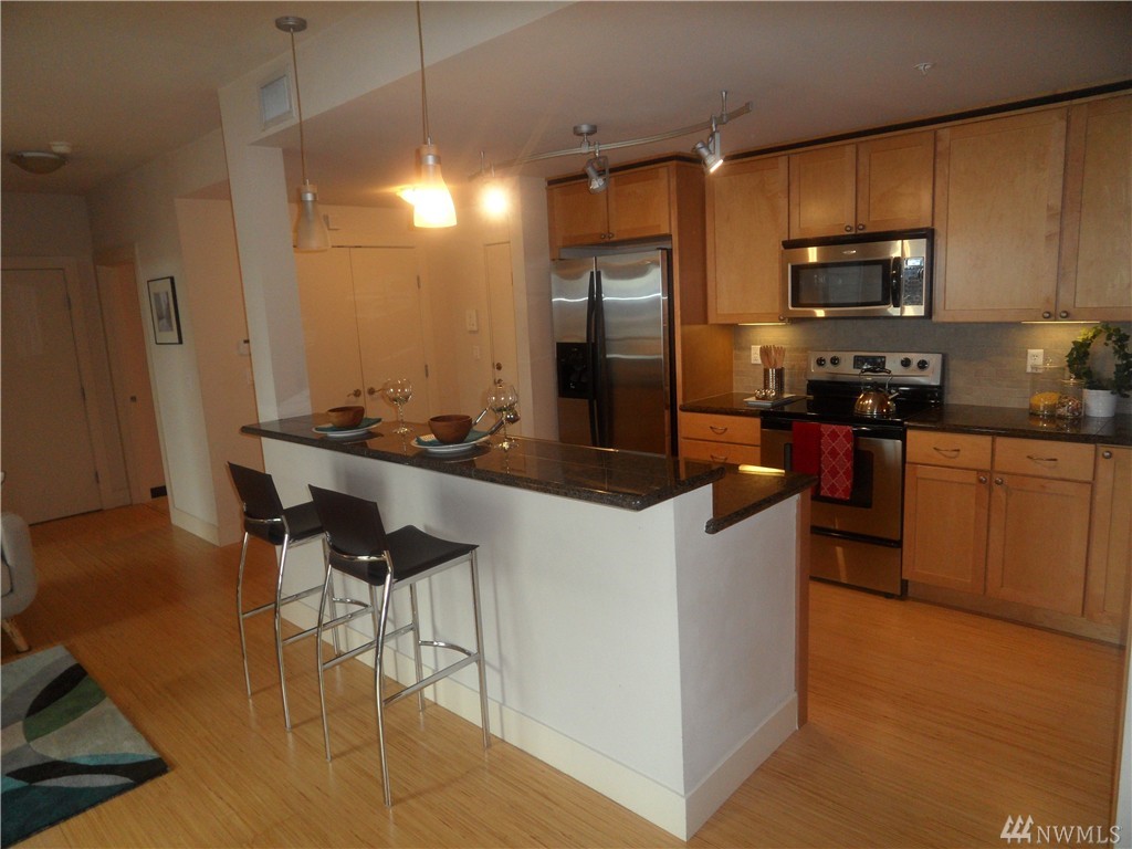 Live the carefree city urban life in your own modern oasis condo. Easy walking distance to hip restaurants, theatres, museums, shopping, UofW & even the Sounder for easy commuting. Spectacular 1 Bd w/Den or possible 2nd Bd? Gourmet Kit w/Breakfast Bar, S/S appl's, Granite Counters. Mstr Ste w/panoramic views. Amenities galore: Theatre Rm, Lg clubhouse w/Kit, game rm w/pool table, lounge, Lg gym,Courtyard w/BBQ's. Secure gated Gar w/dedicated parking space. Lg Priv Stor Locker.1yr hm warr offered
